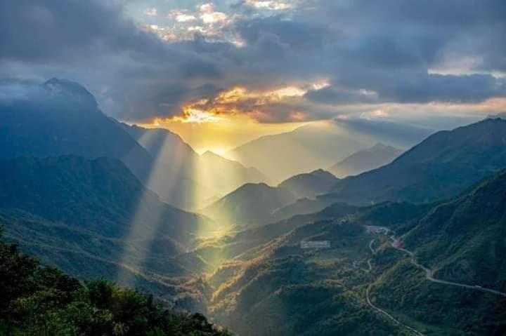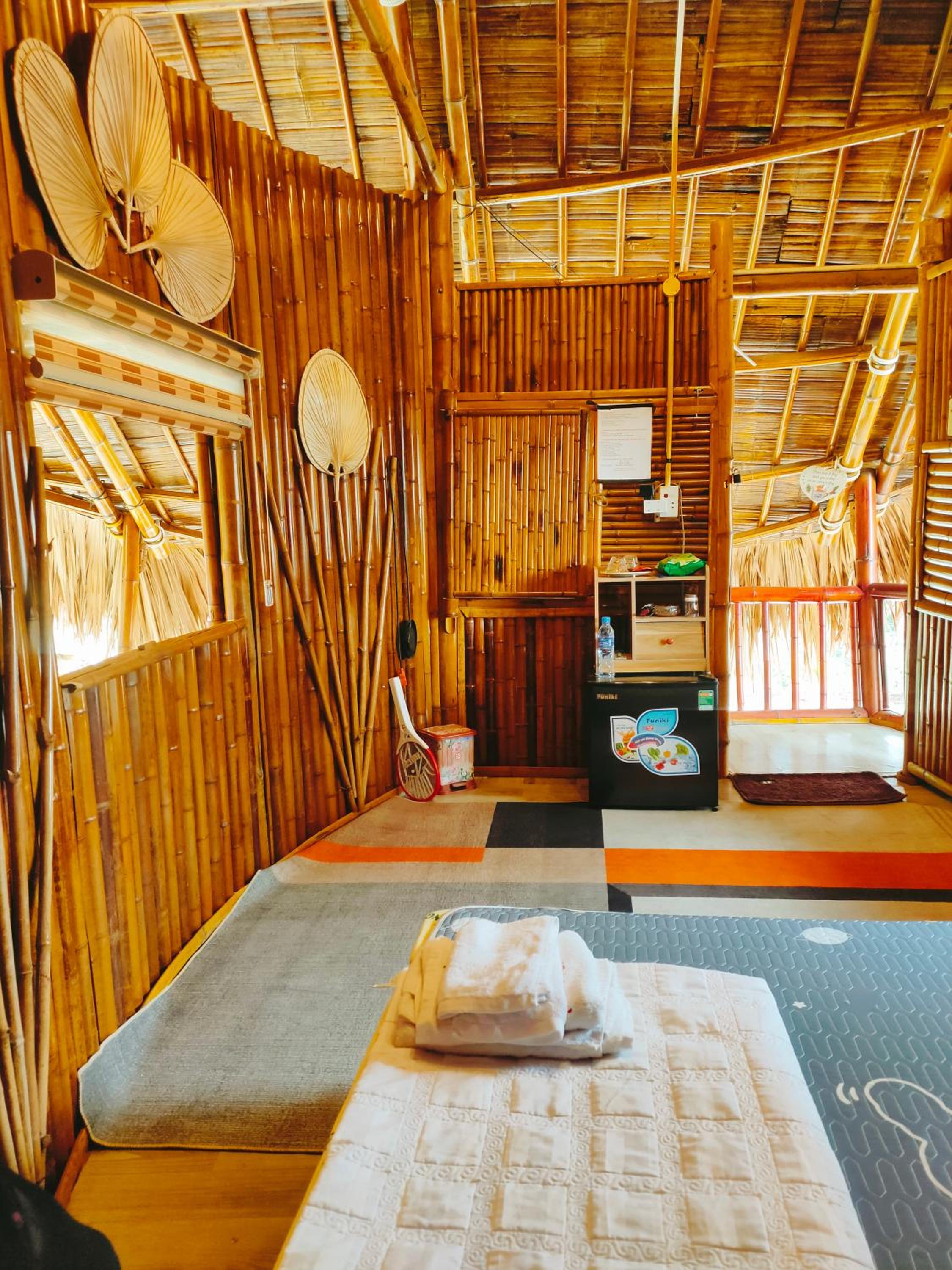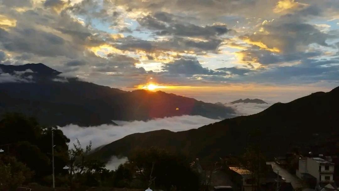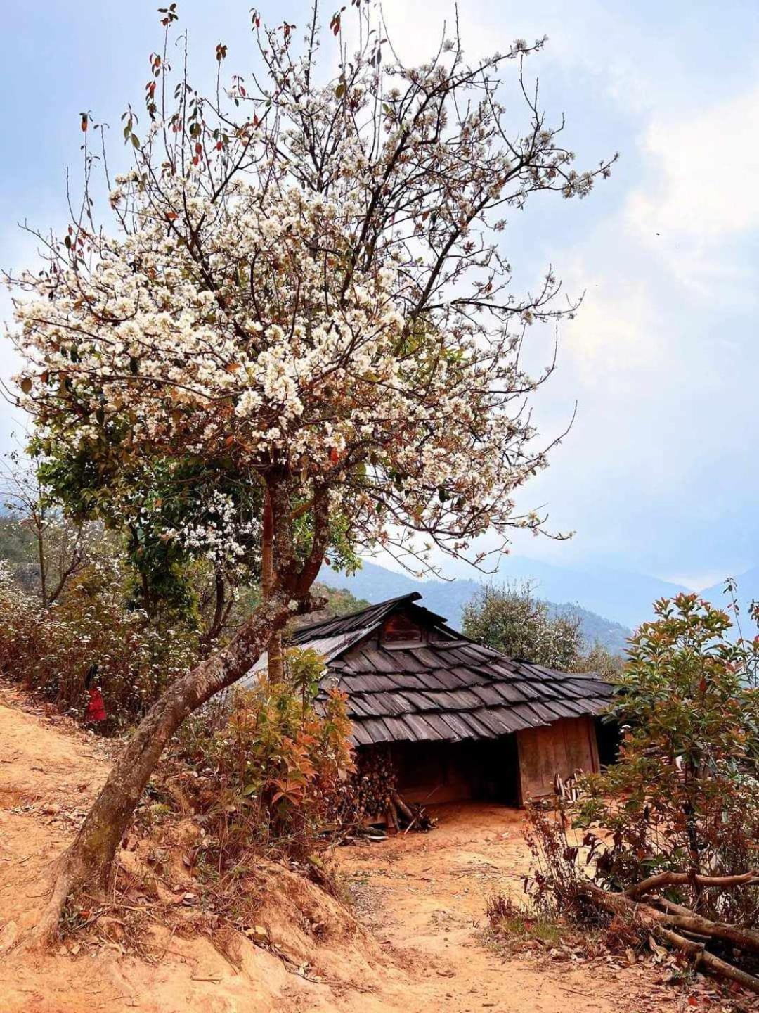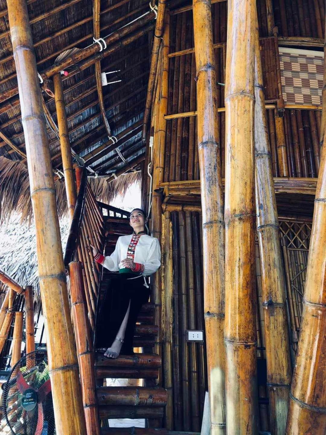Experience breathtaking mountain views from your private terrace at Bamboo Homestay.