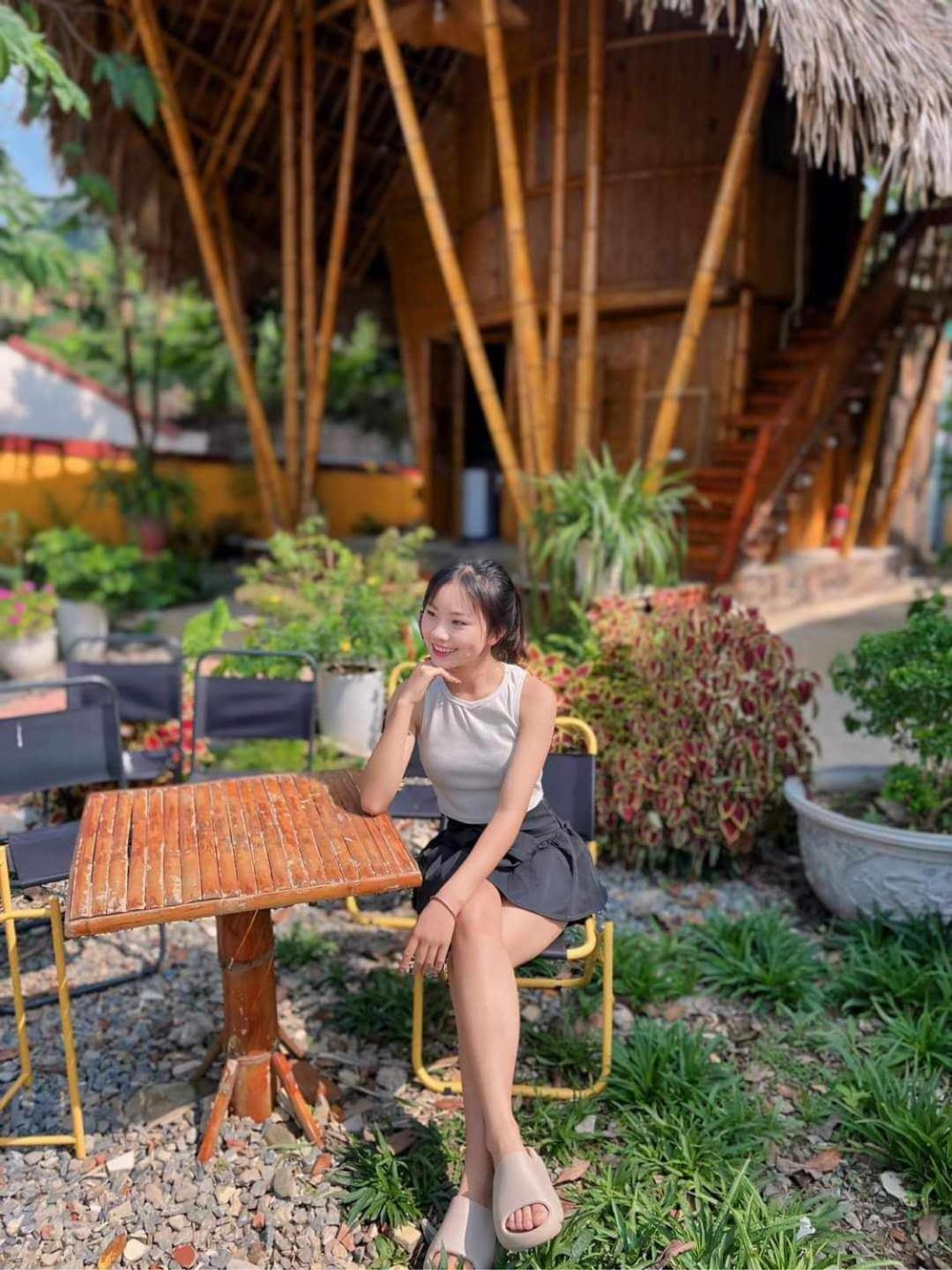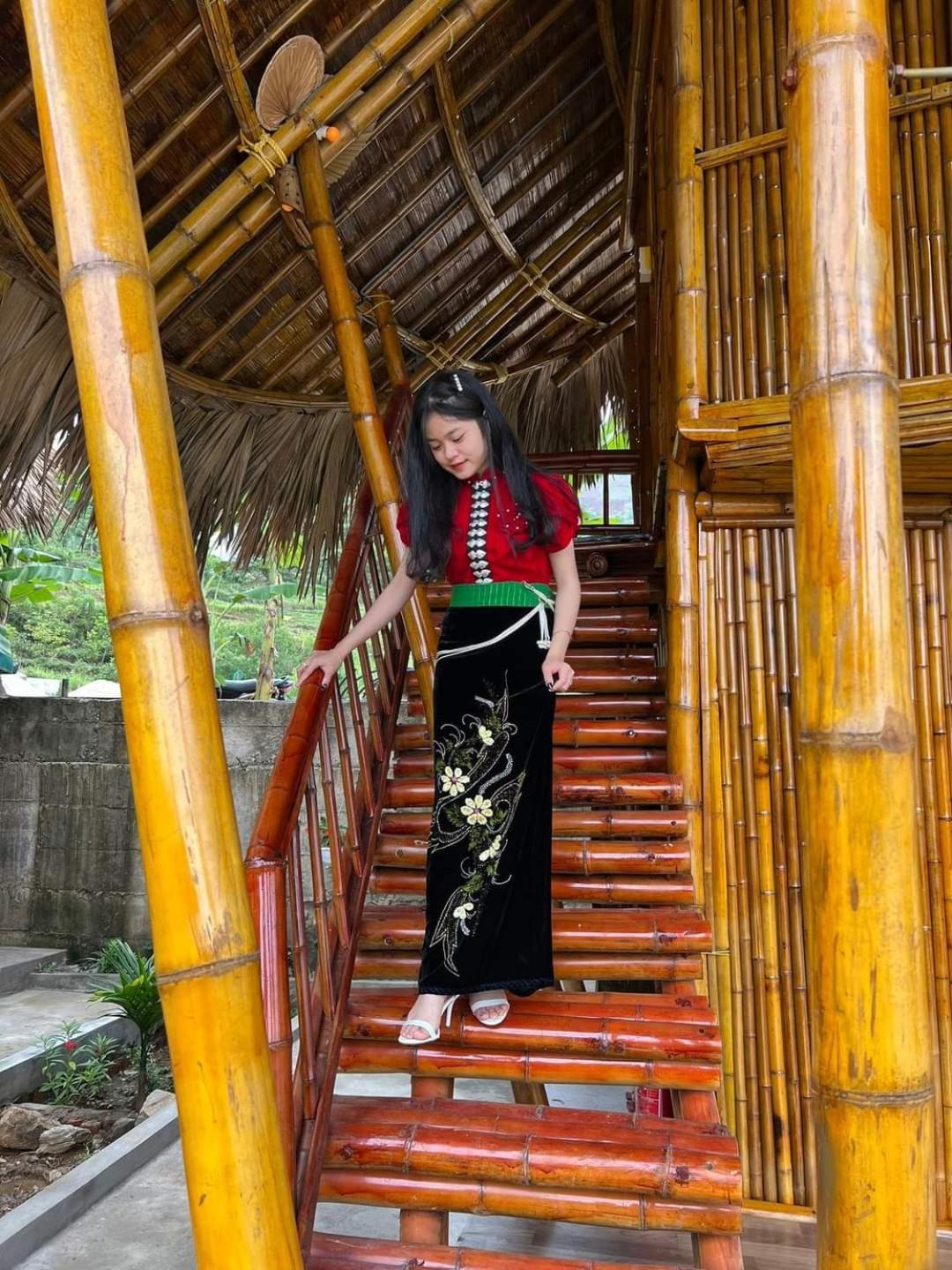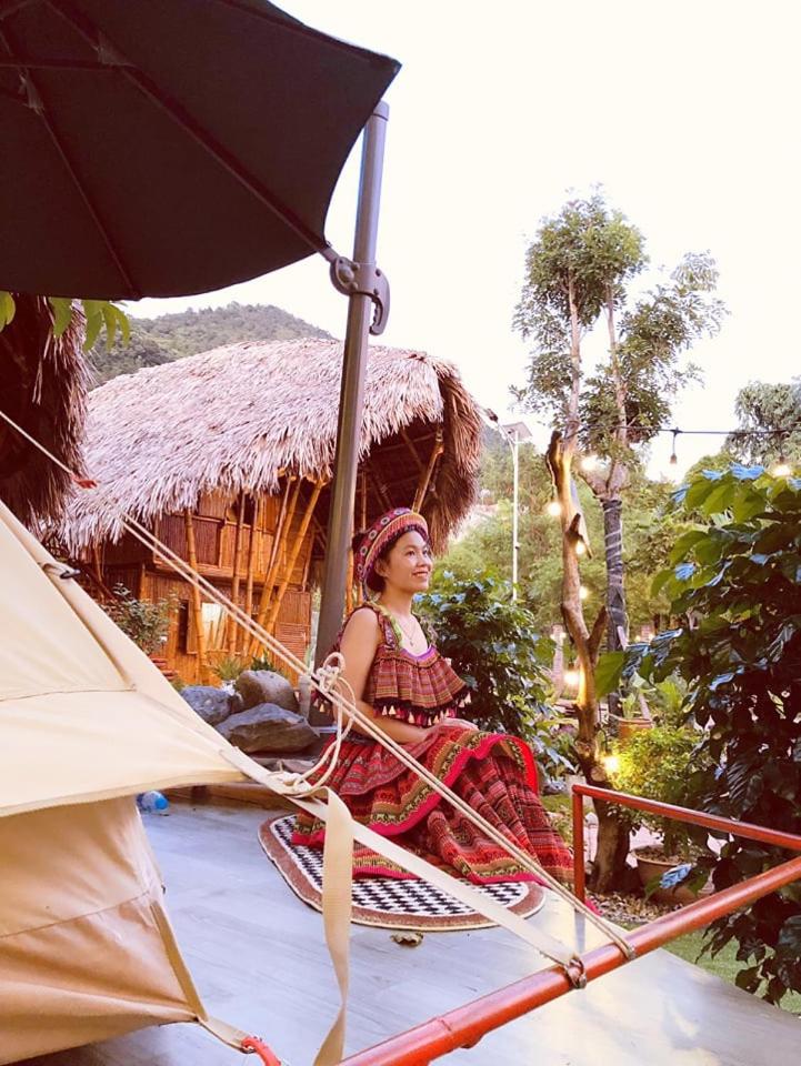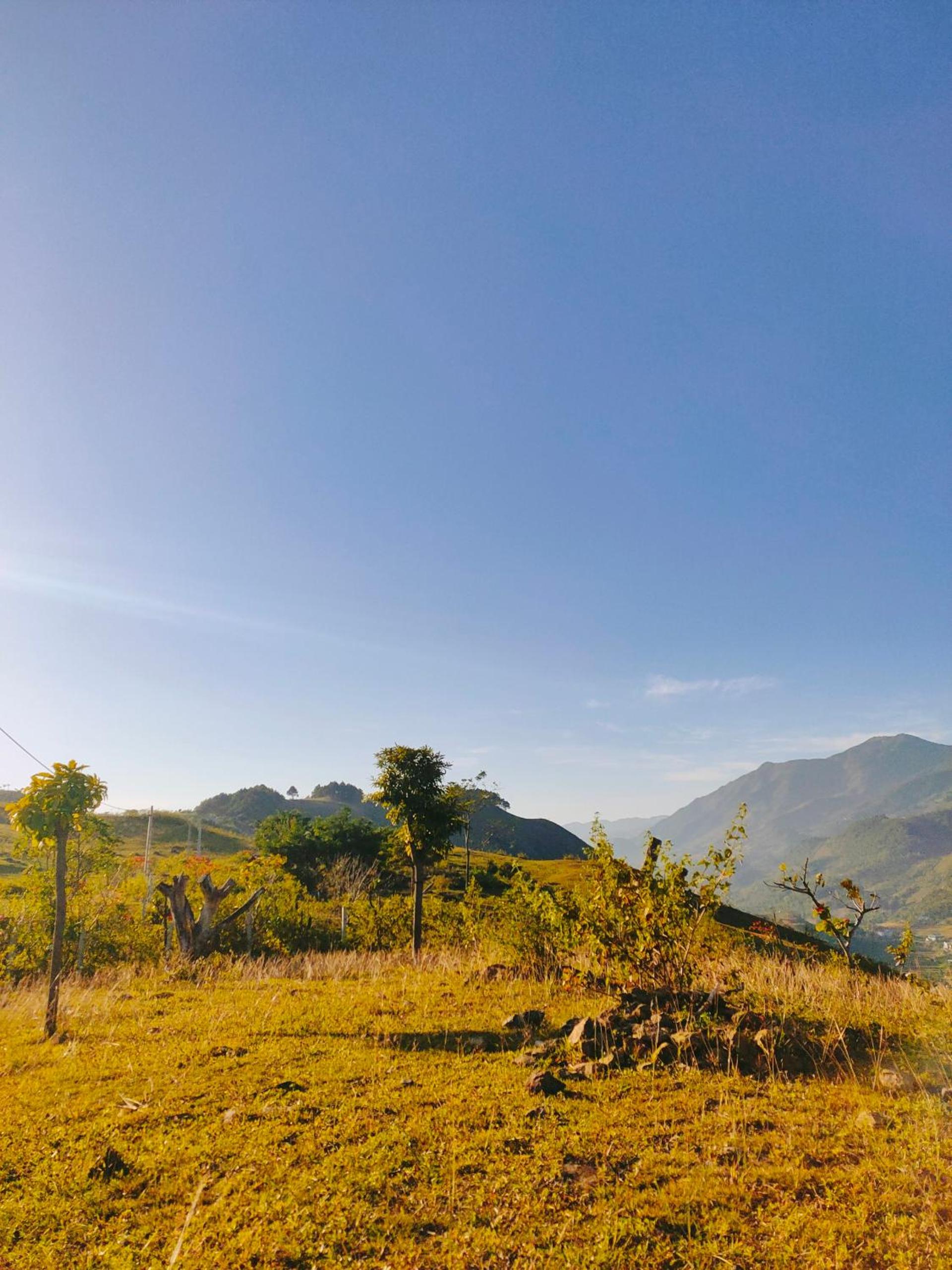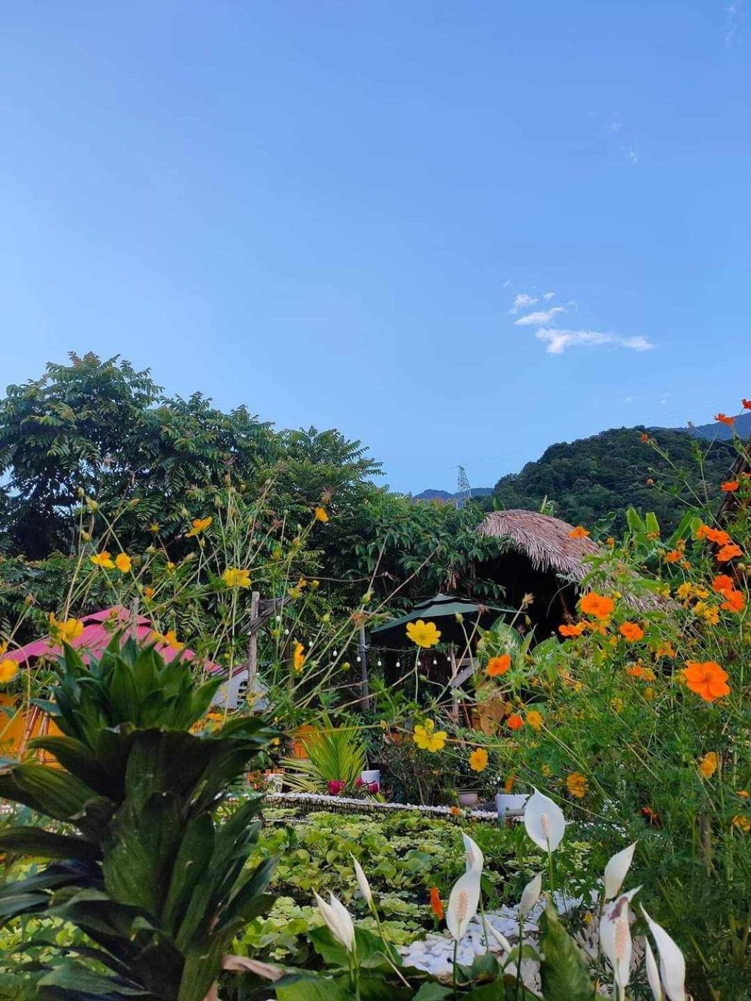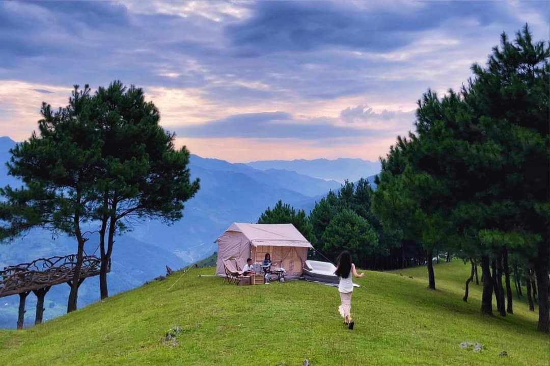Experience breathtaking mountain views from your private terrace at Bamboo Homestay.
