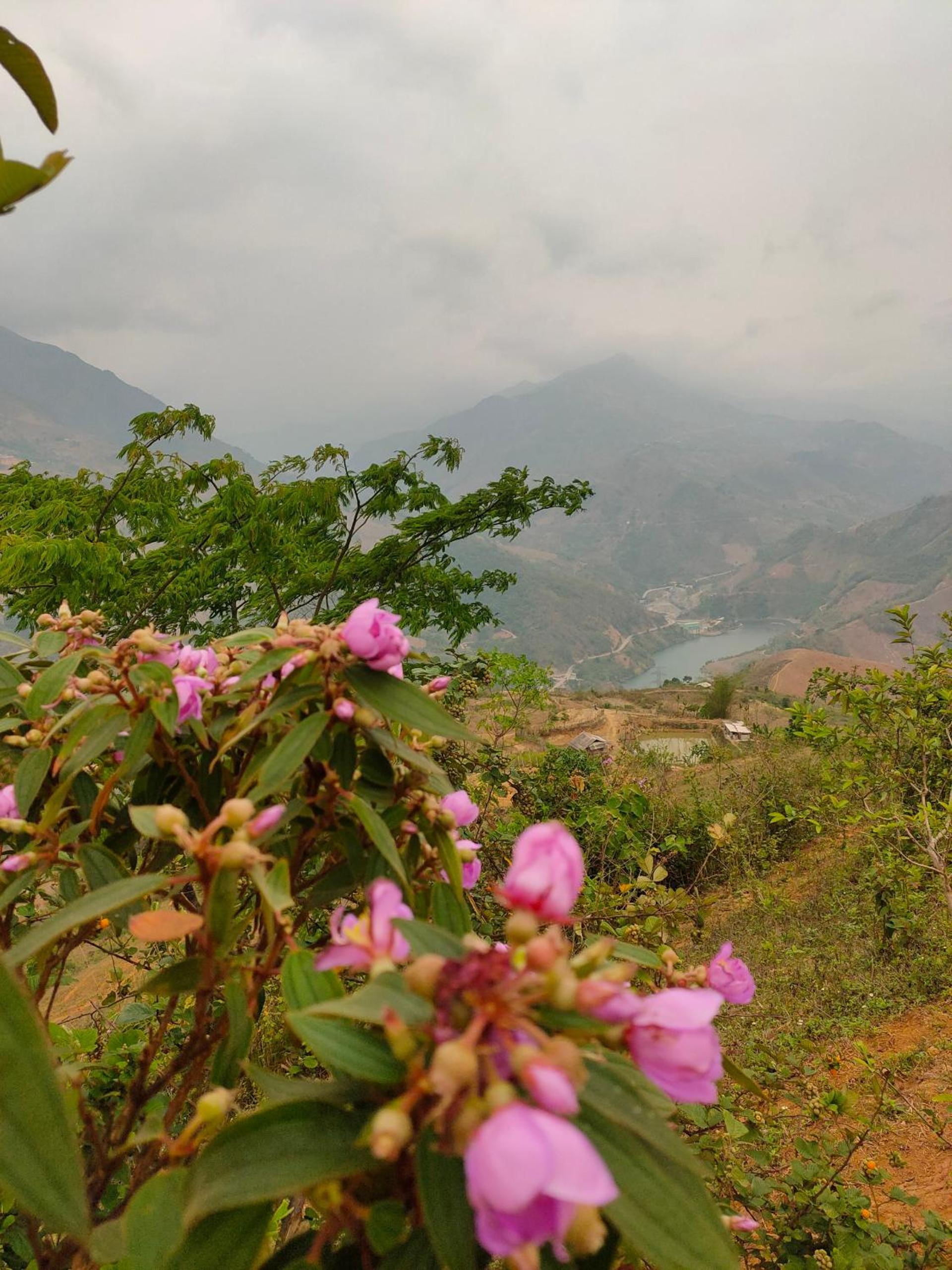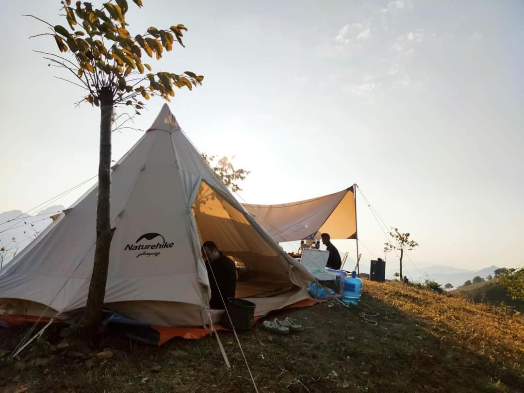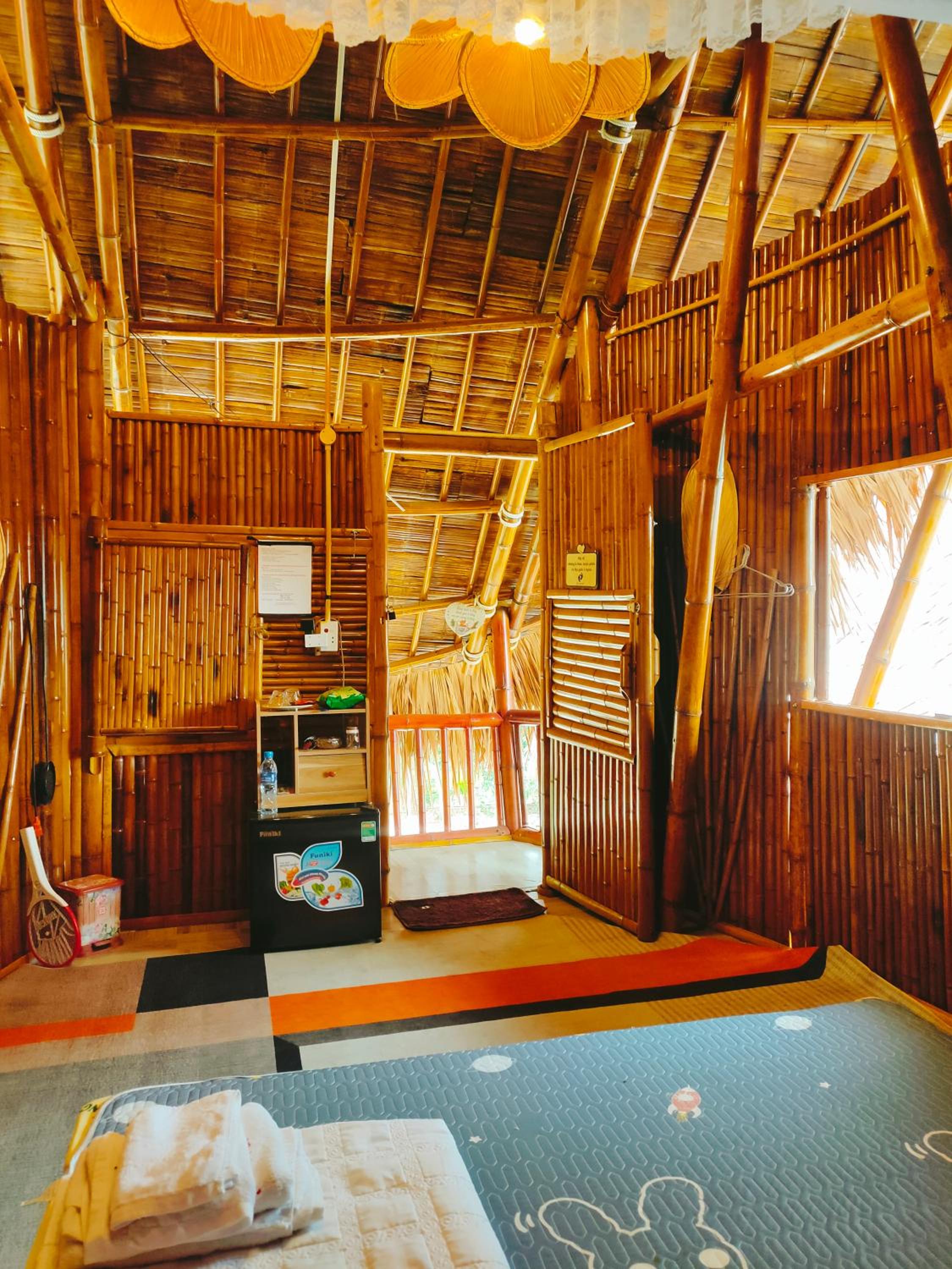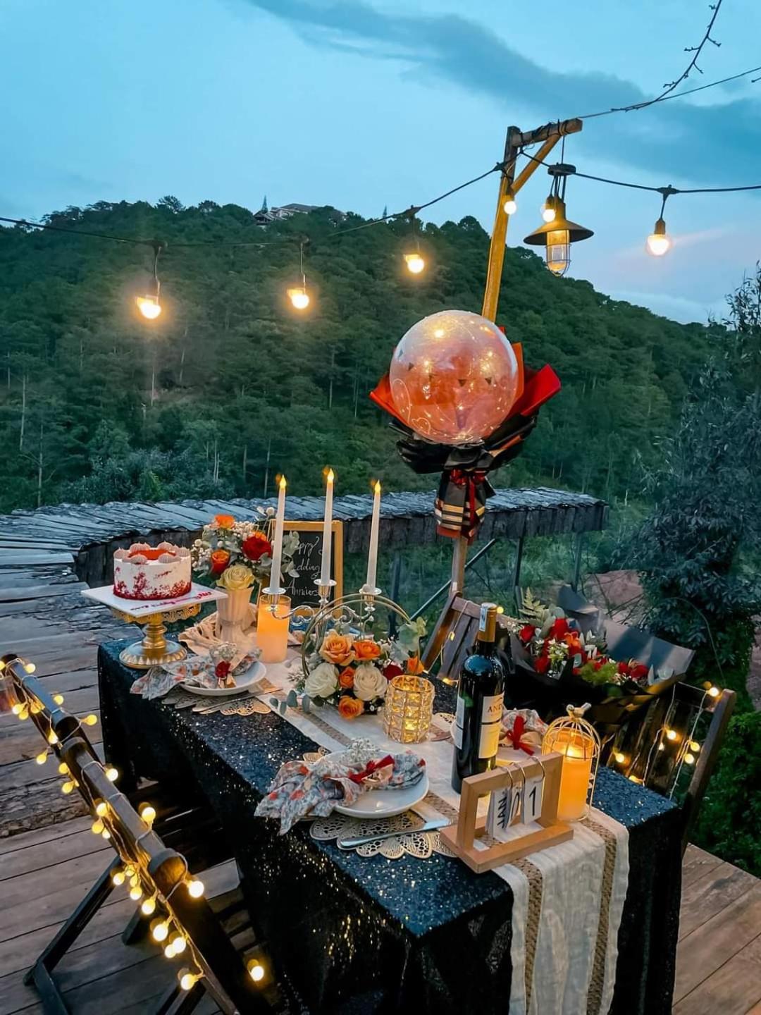 Experience breathtaking mountain views from your private terrace at Bamboo Homestay.