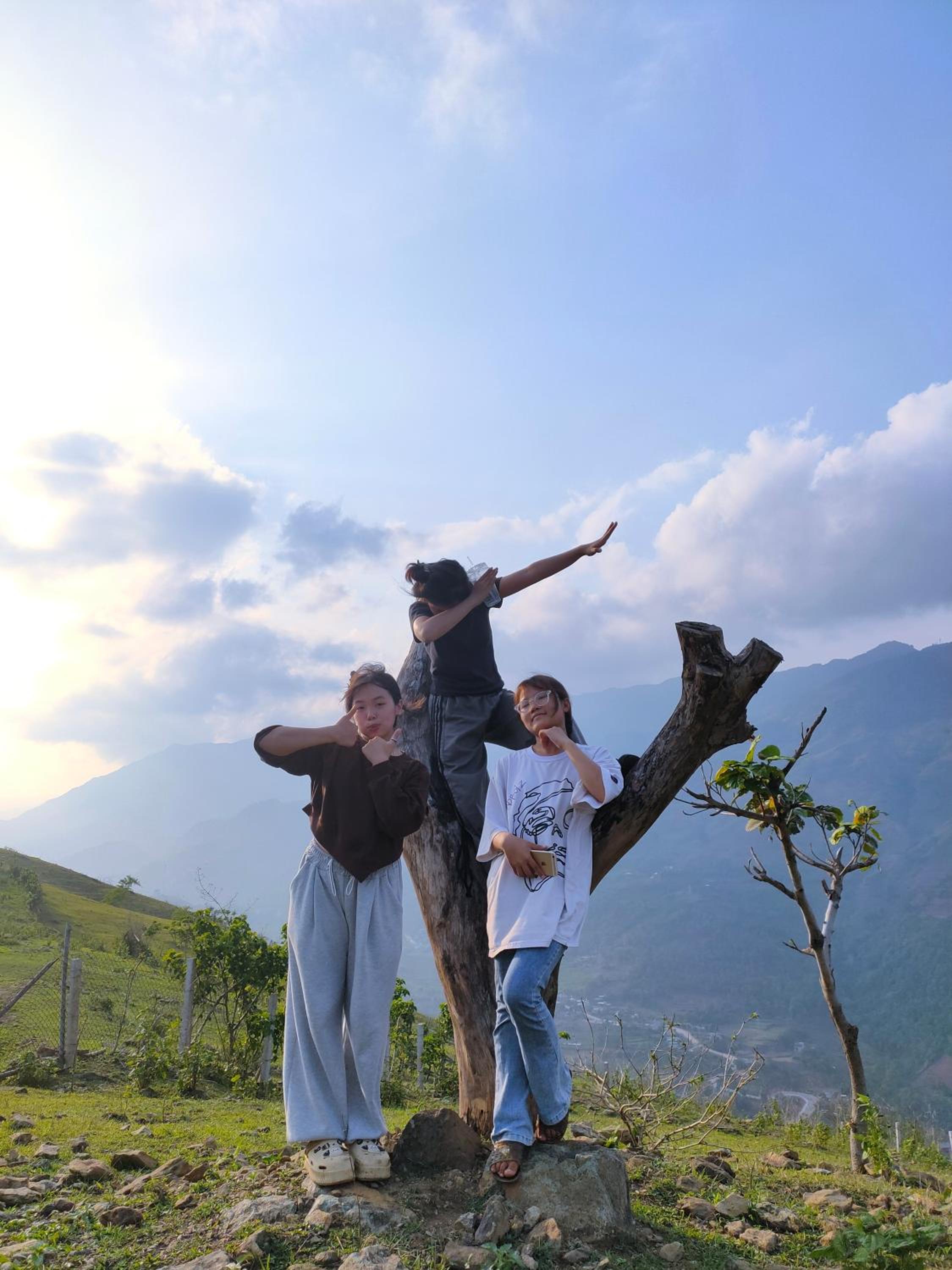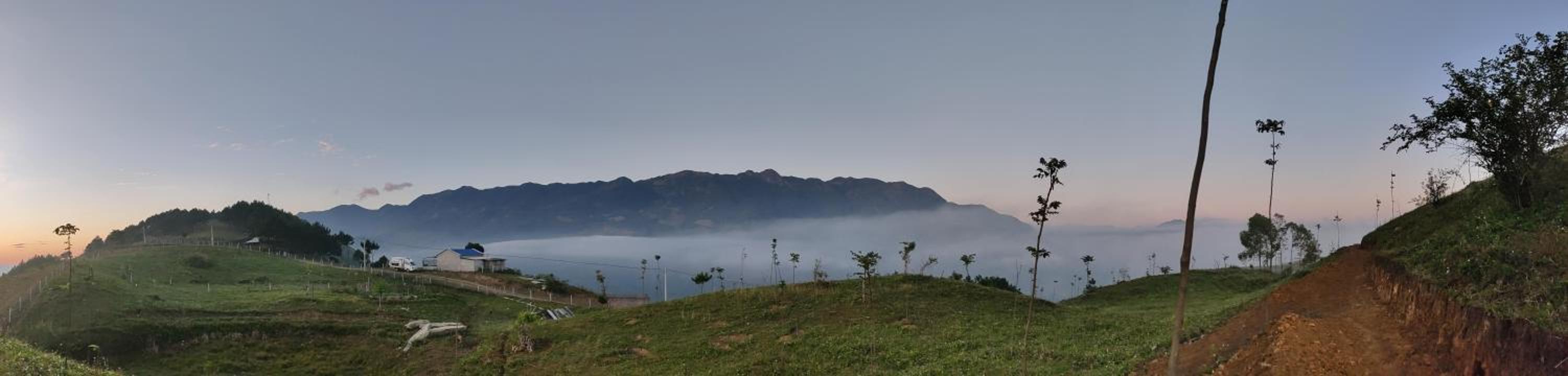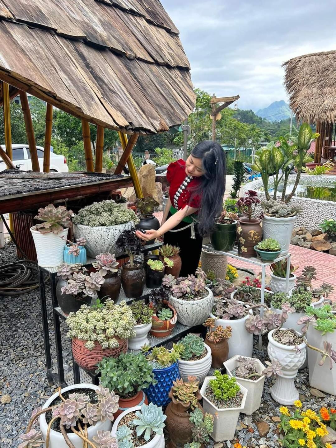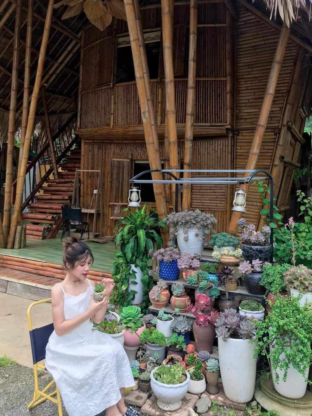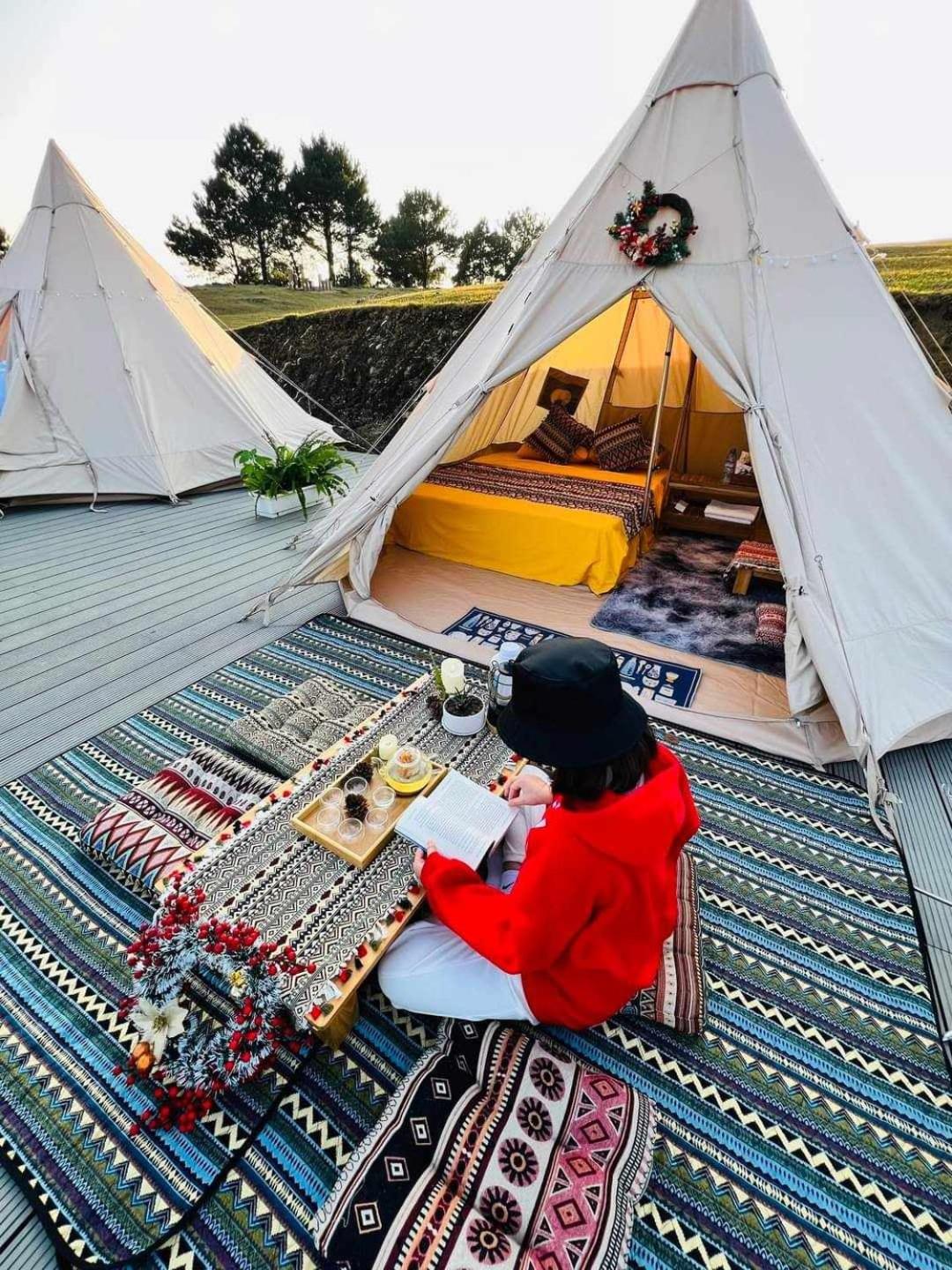 Experience breathtaking mountain views from your private terrace at Bamboo Homestay.