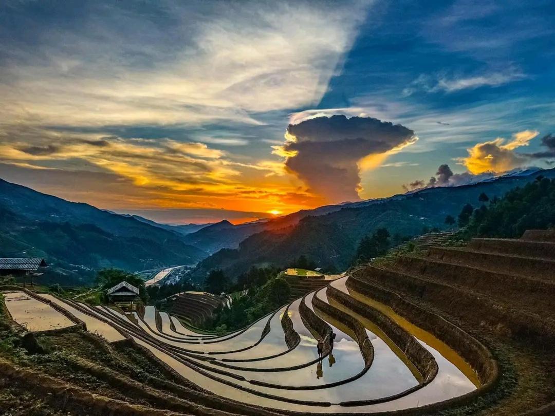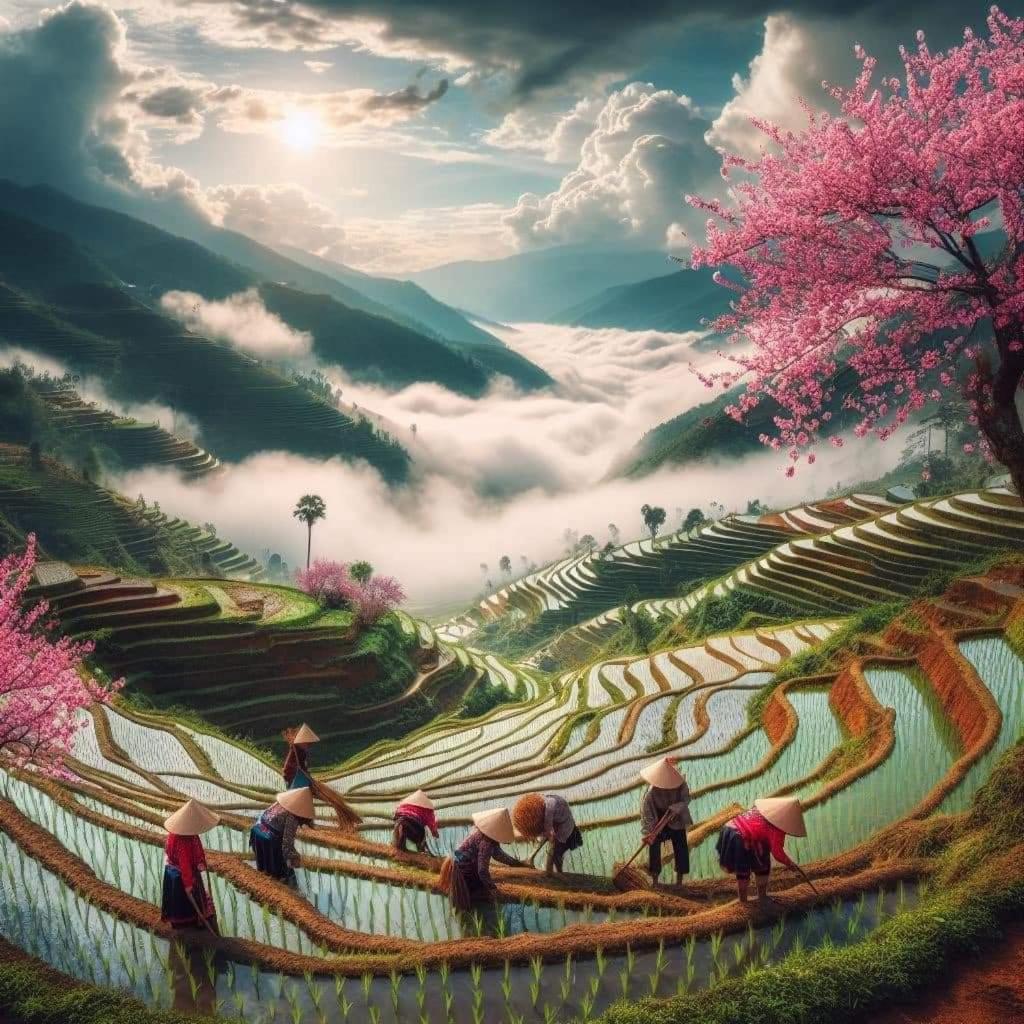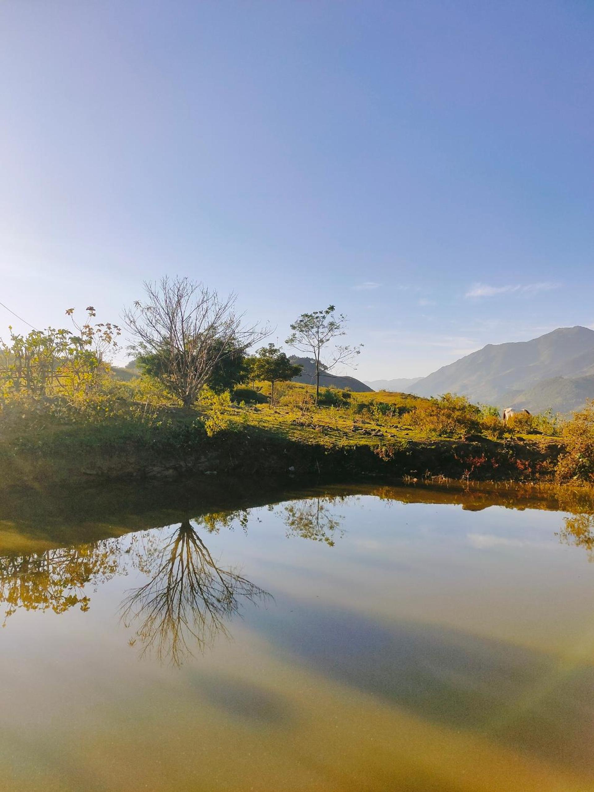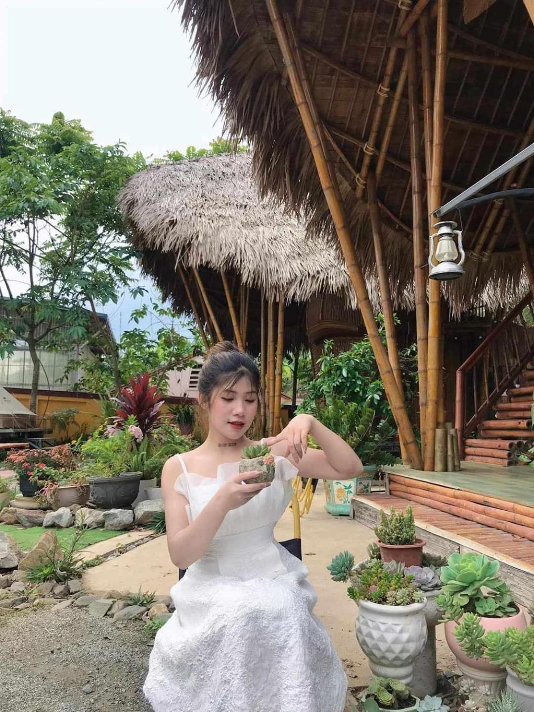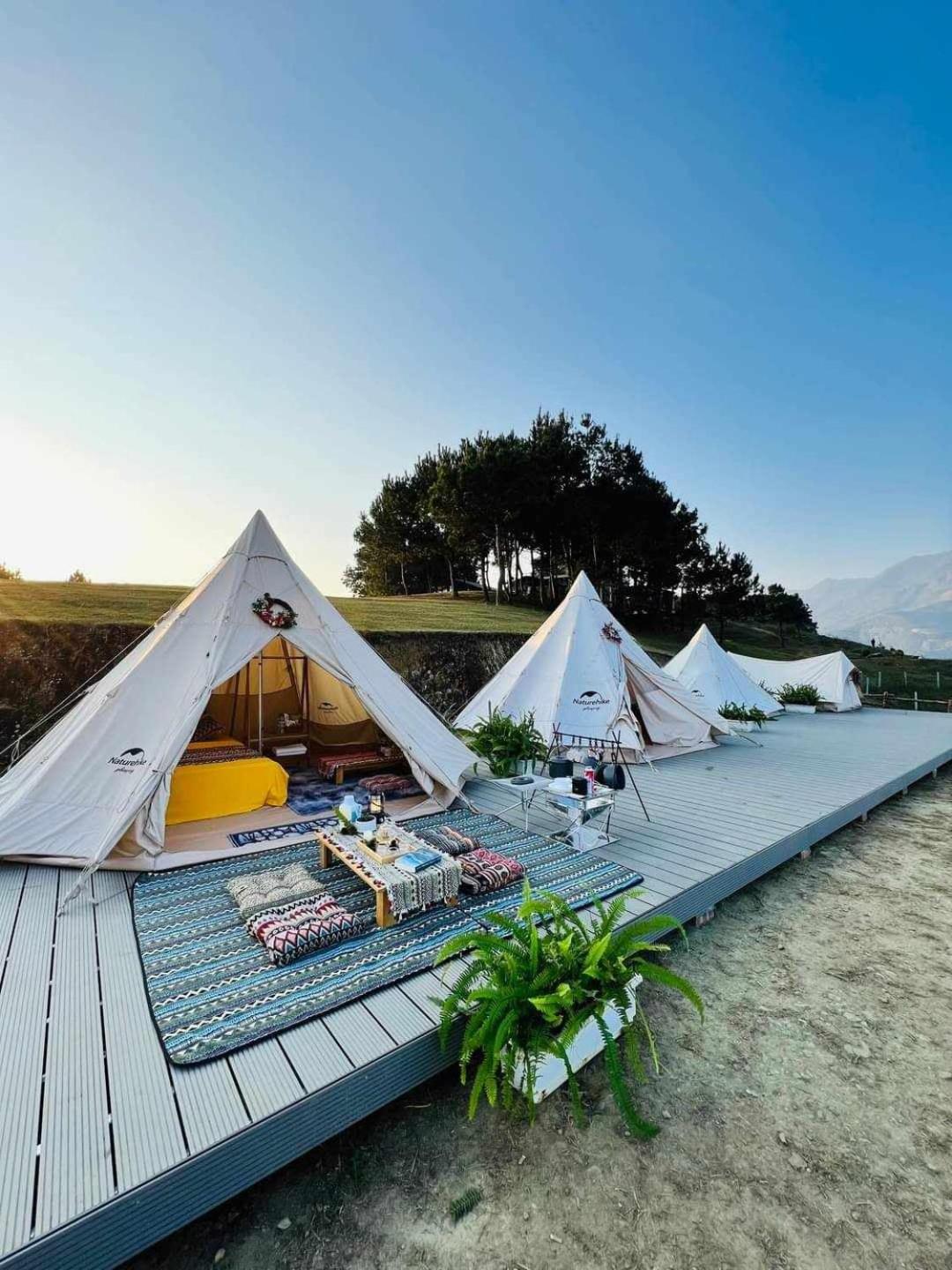 Experience breathtaking mountain views from your private terrace at Bamboo Homestay.