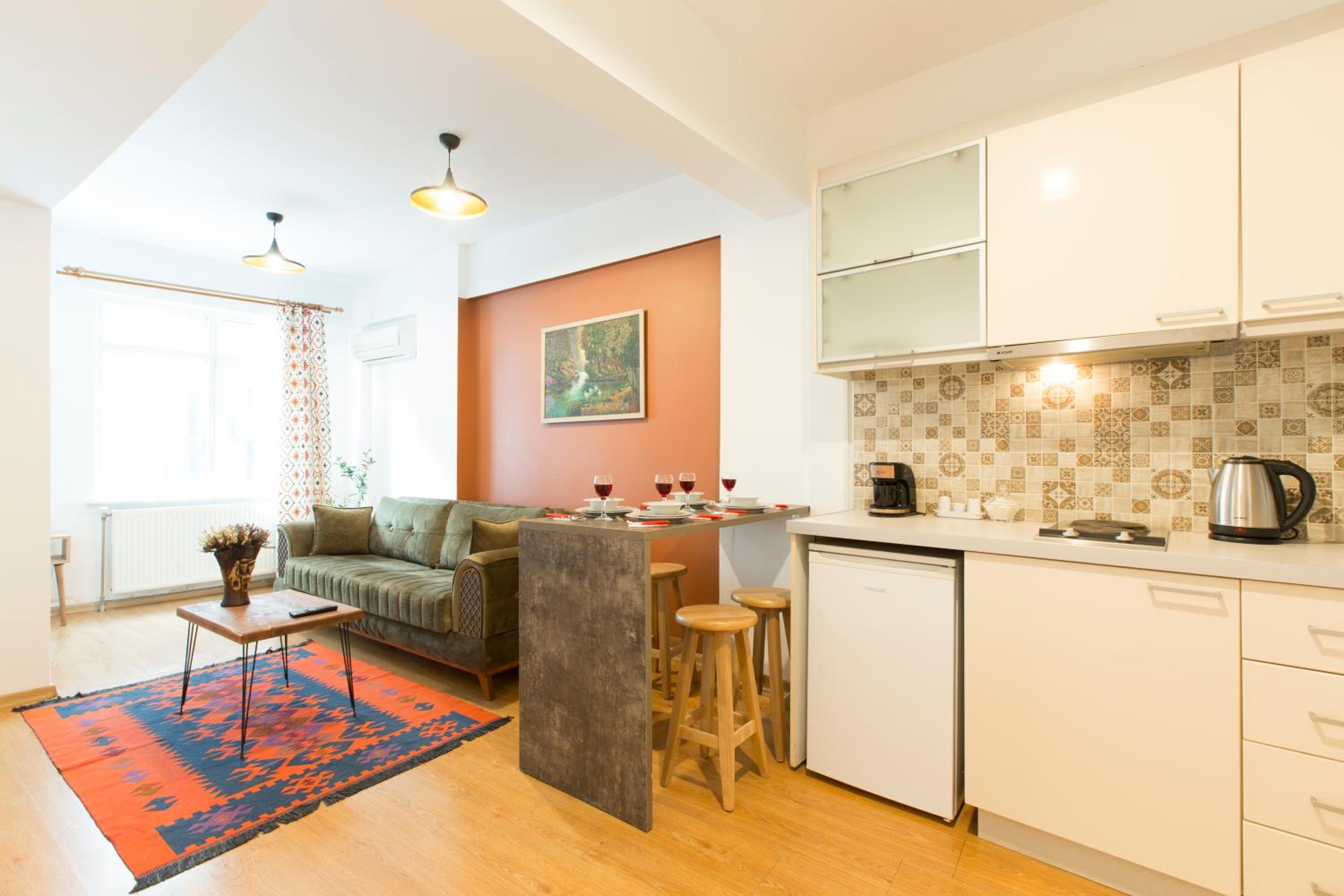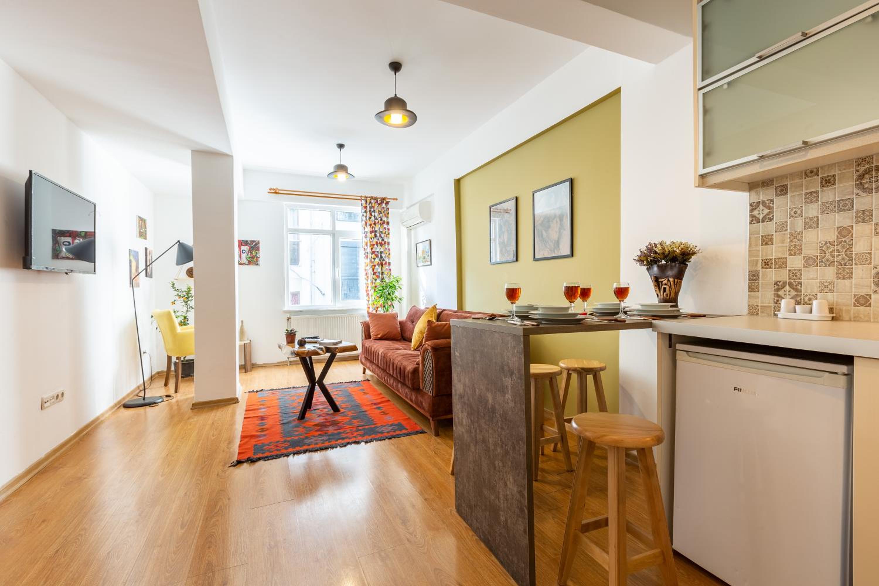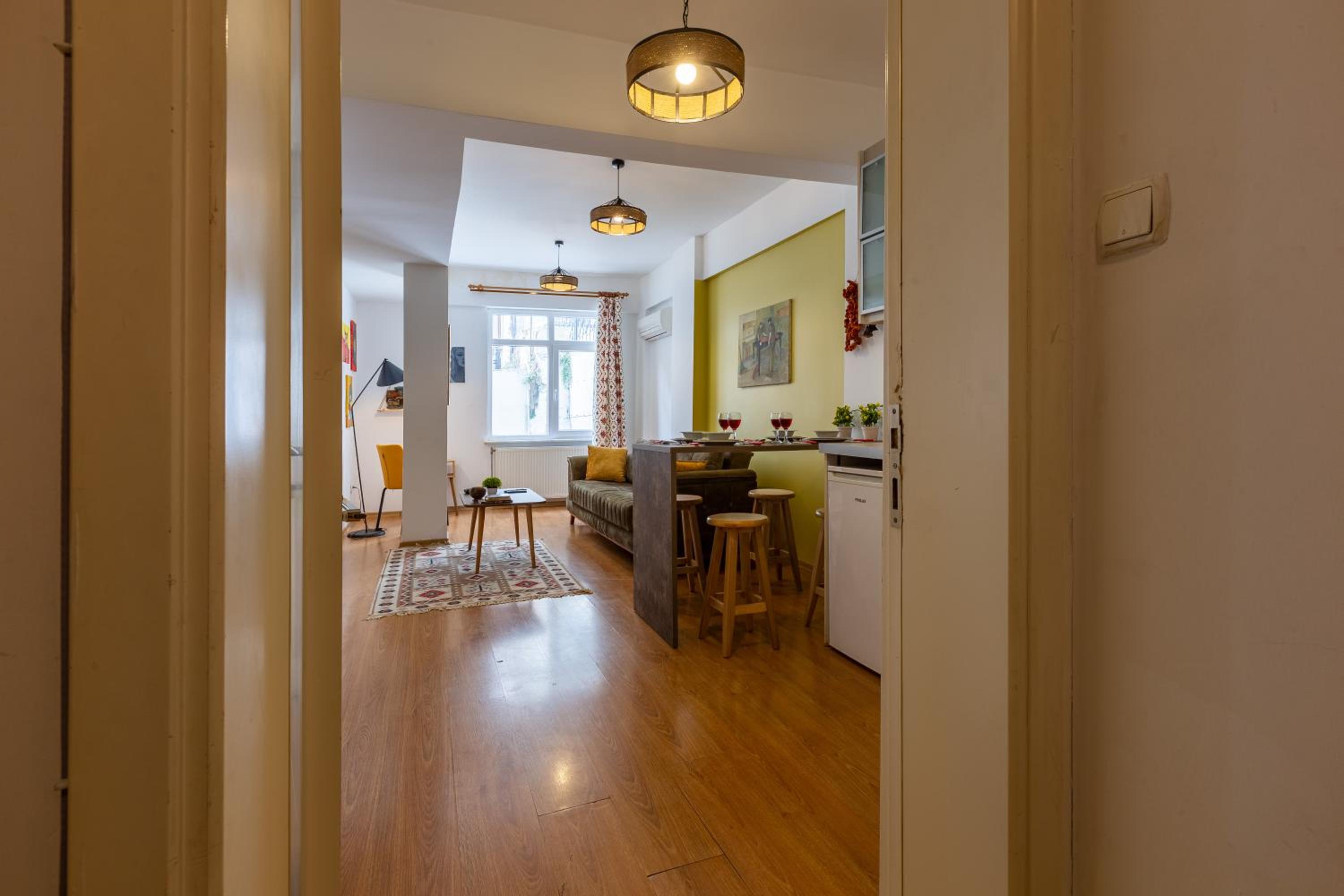 Great apartment. Highly recommend staying here, great location. Owner has a shop just below so is around if there are any issues. Spacious for a couple. Loved it. Made Istanbul great.