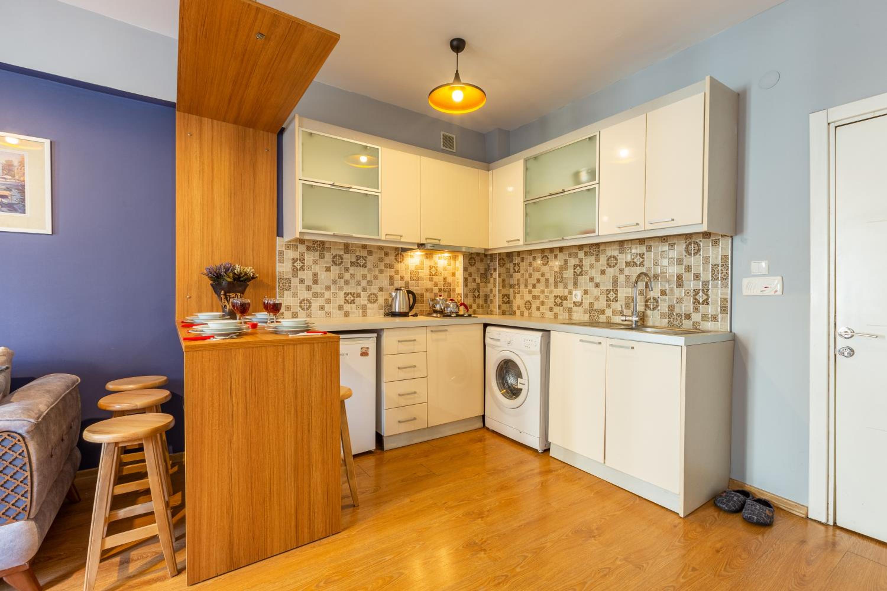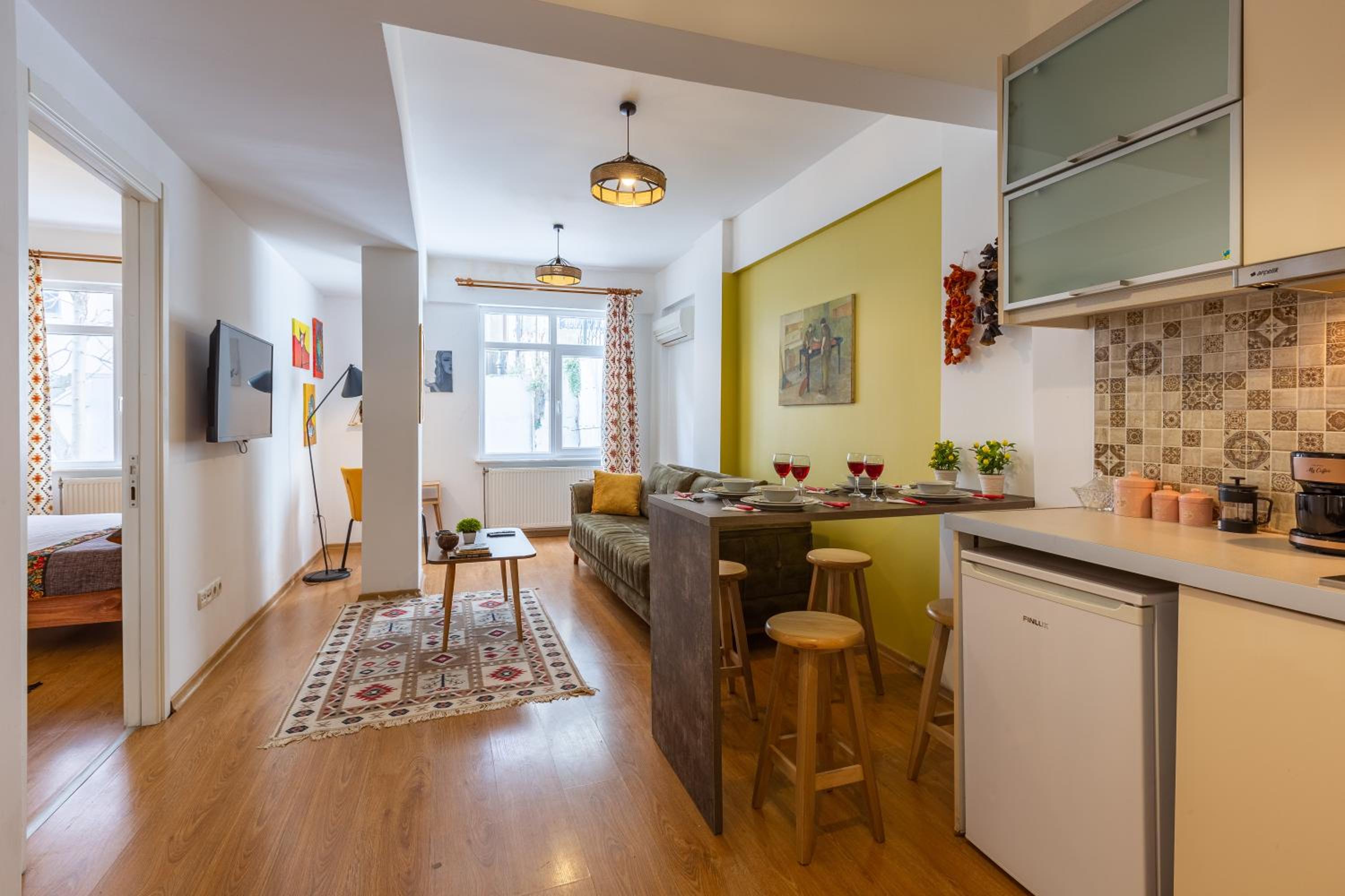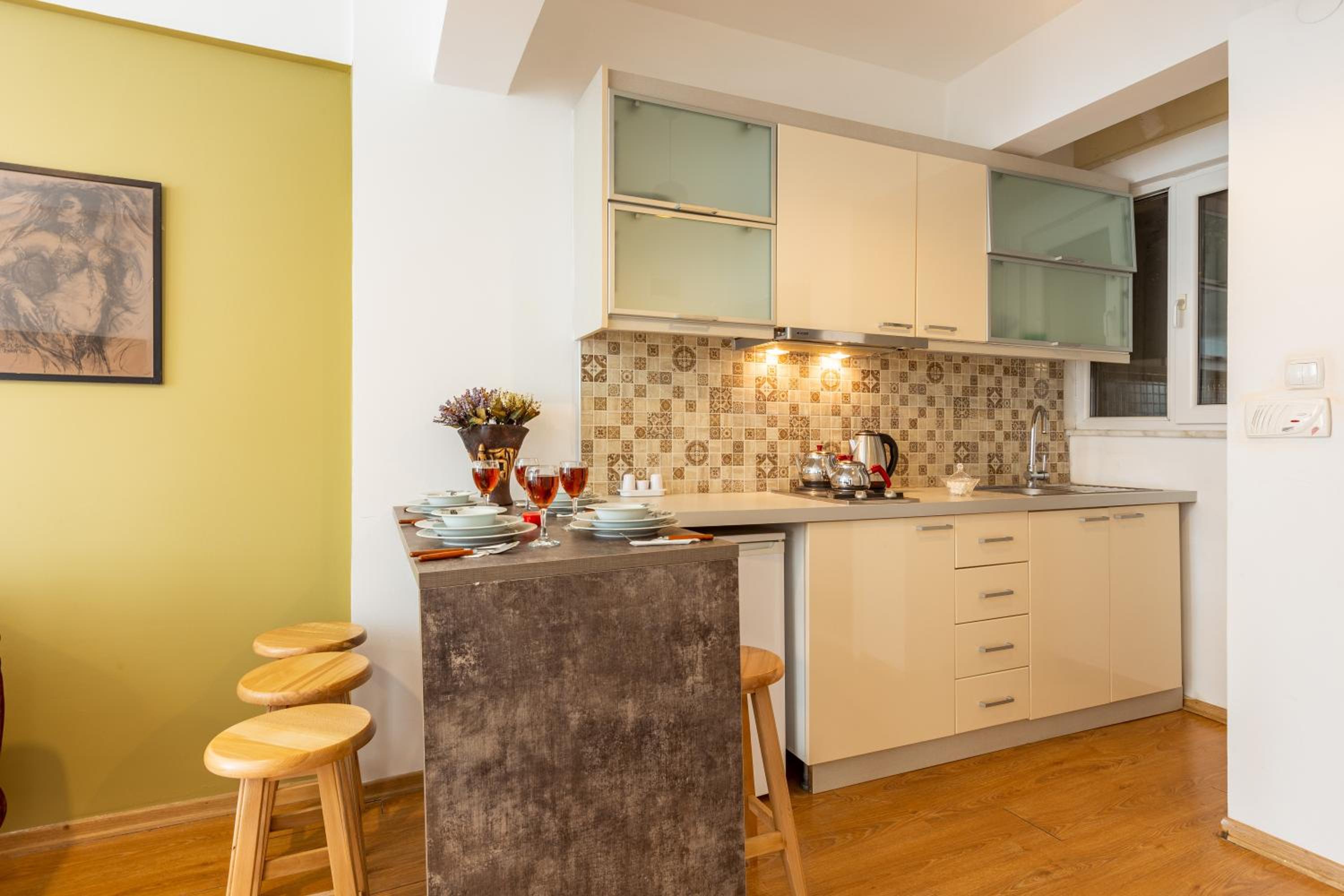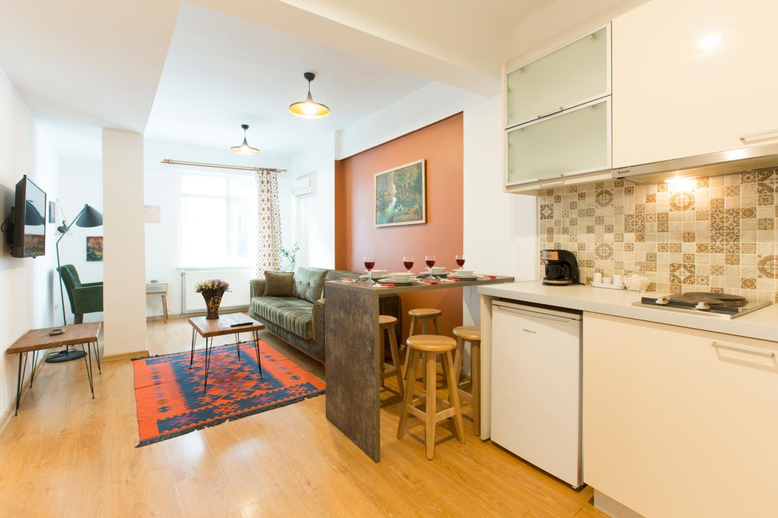 Great apartment. Highly recommend staying here, great location. Owner has a shop just below so is around if there are any issues. Spacious for a couple. Loved it. Made Istanbul great.
