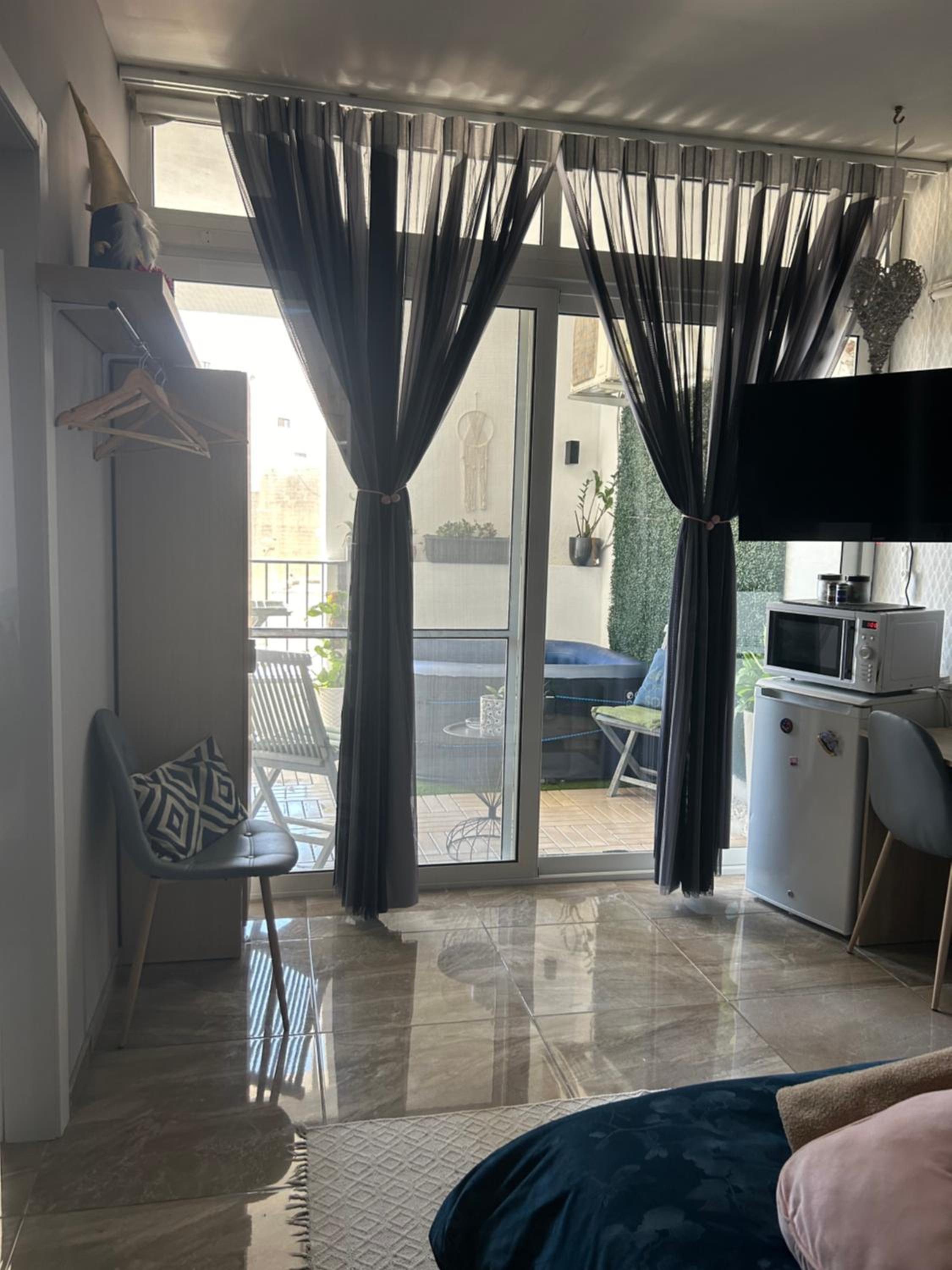 Disappointed as no jacuzzi as was shown when I booked, building works in a sort of room next door, and the stairs full of furniture, so no access down them if a fire.