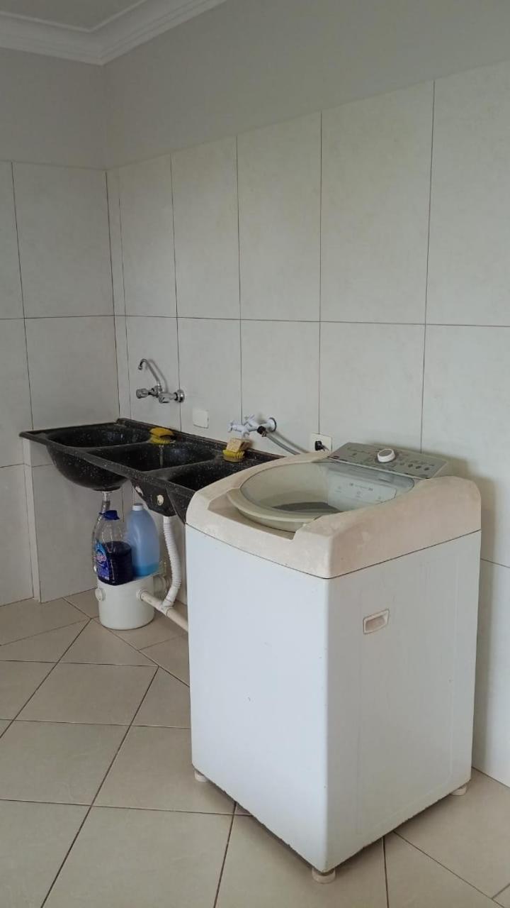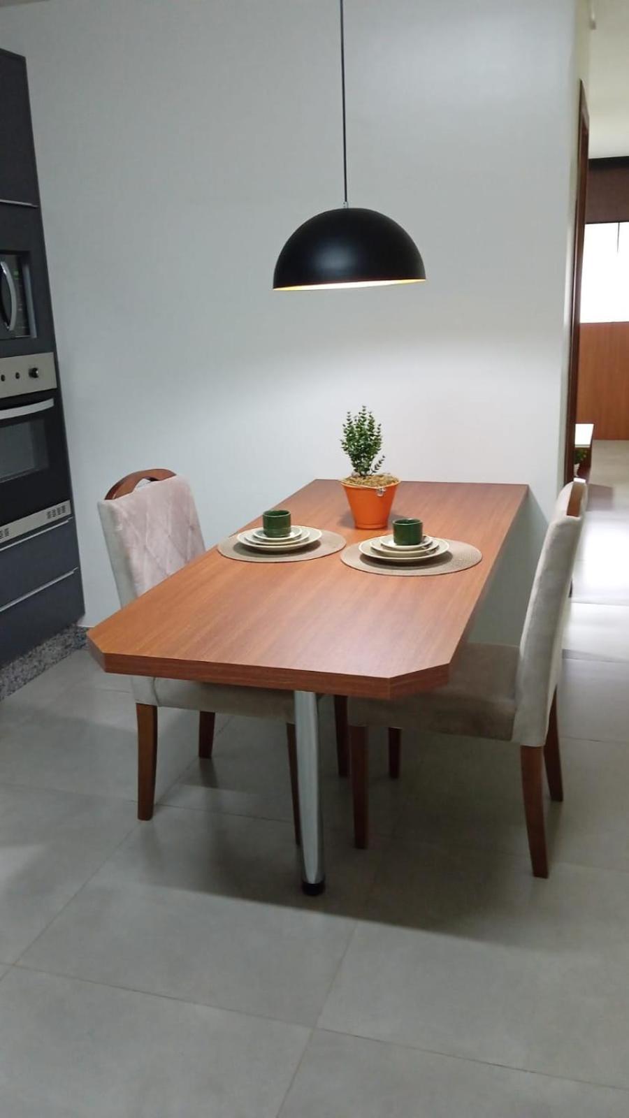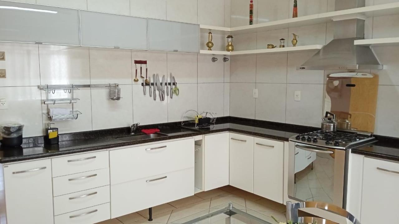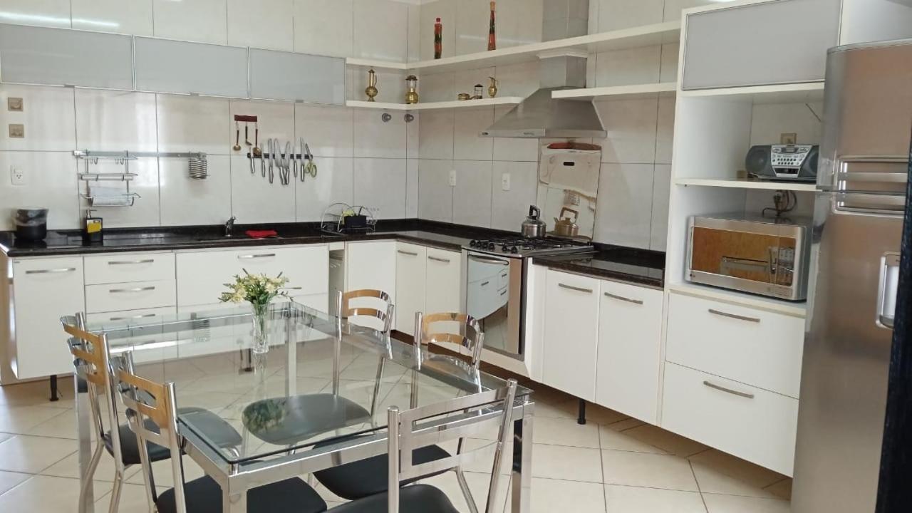 Kit de shampoo, sabonete e condicionador, quarto espaçoso, cozinha equipada. Roupas de cama, banho limpos e cheirosos. Cama confortável e bastante travesseiros, mesa grande para família. A vista é linda.