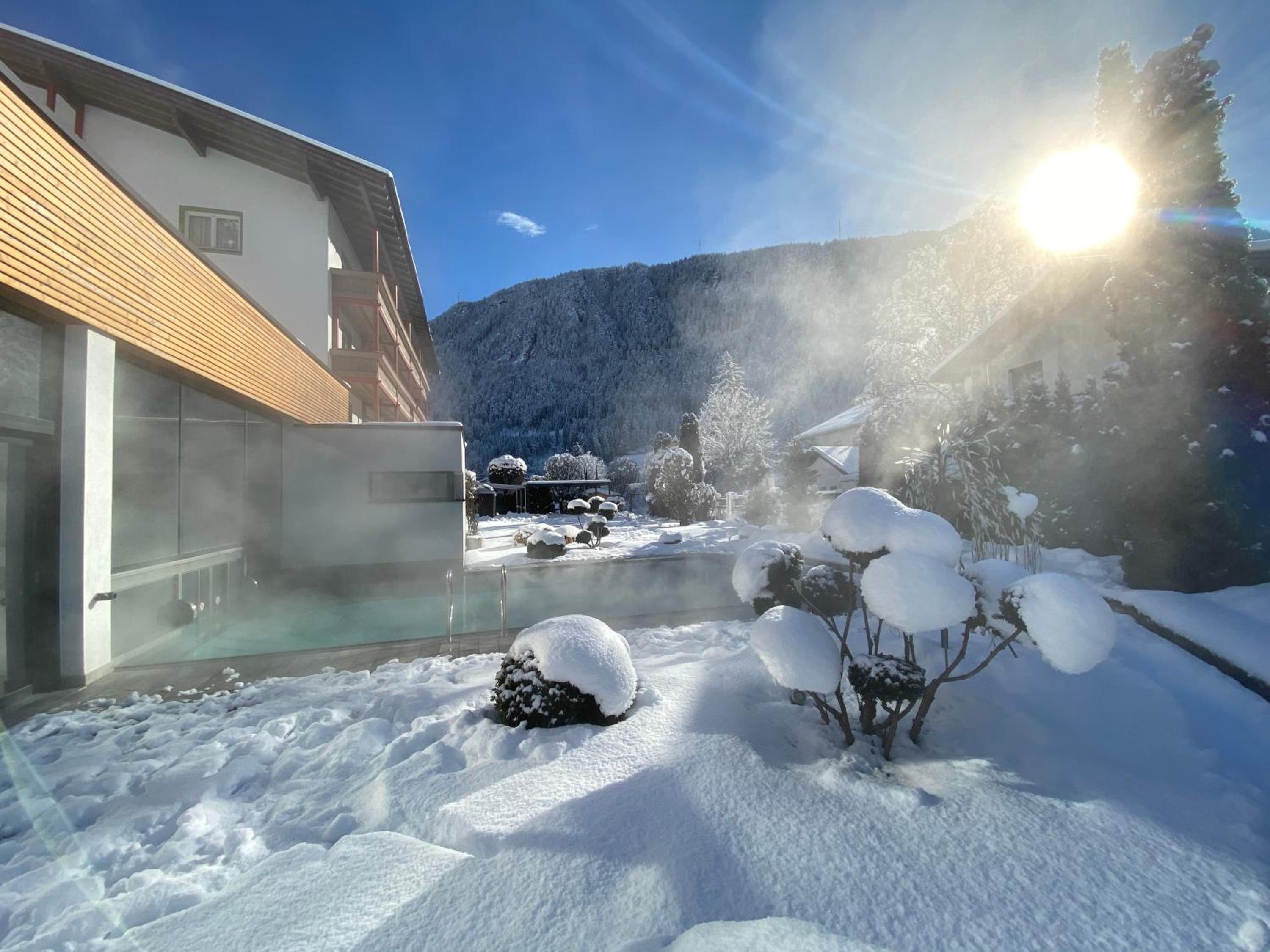 Sehr schöner Wellnessbereich inklusive beheiztem Außenbecken. Gutes Essen mit großer Menuauswahl. Freundlicher Service. Mit dem Skibus ist man in 15 Minuten im Skigebiet.