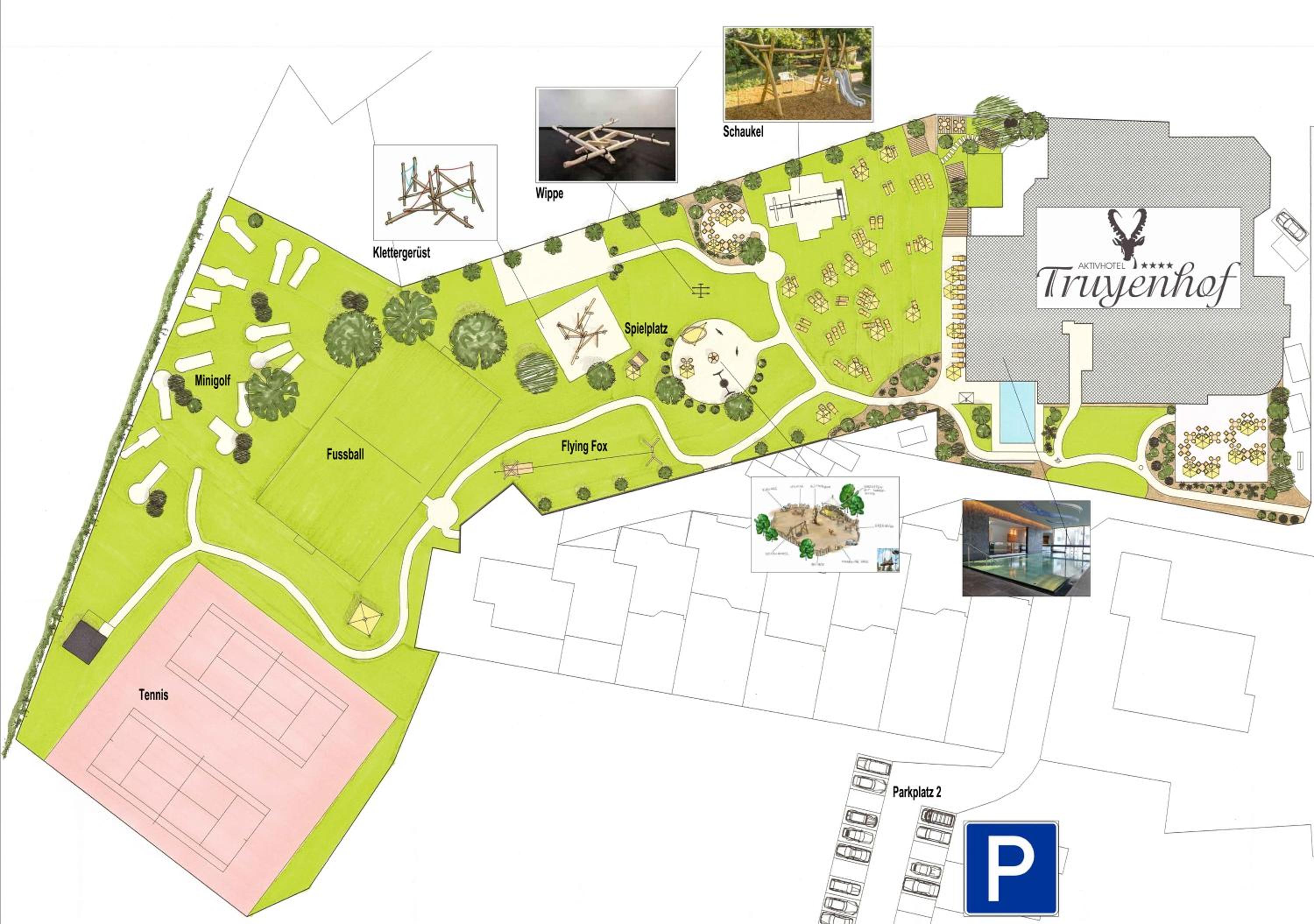 With a tennis court, miniature golf course, playground, games room, and a 7,500 m2 garden area, there's no shortage of entertainment for both adults and children at the hotel.