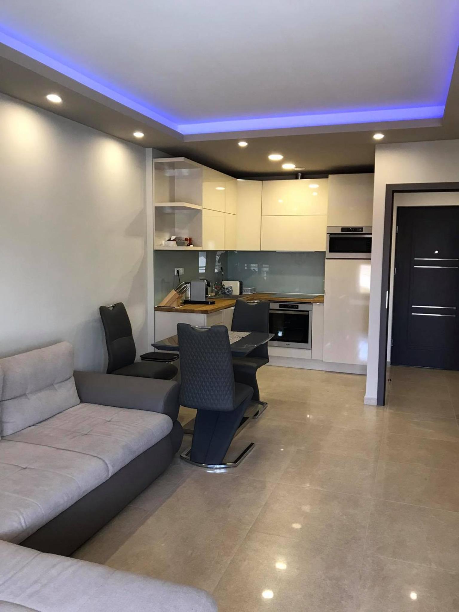 It was a very cosy apartment that gives you feeling like being at home. Apartment and whole residence was clean. Perfect position with only 5-10 minutes of walk to aquapark, about 10-15 minutes of walk to the nearest shop. Fully equipped with coffee machine, dishwasher and washing machine. Very possitive thing was parking space in underground garage. Also in complex u have access to small pool which is availible till 7 P.M. Communication with the owner was perfect.