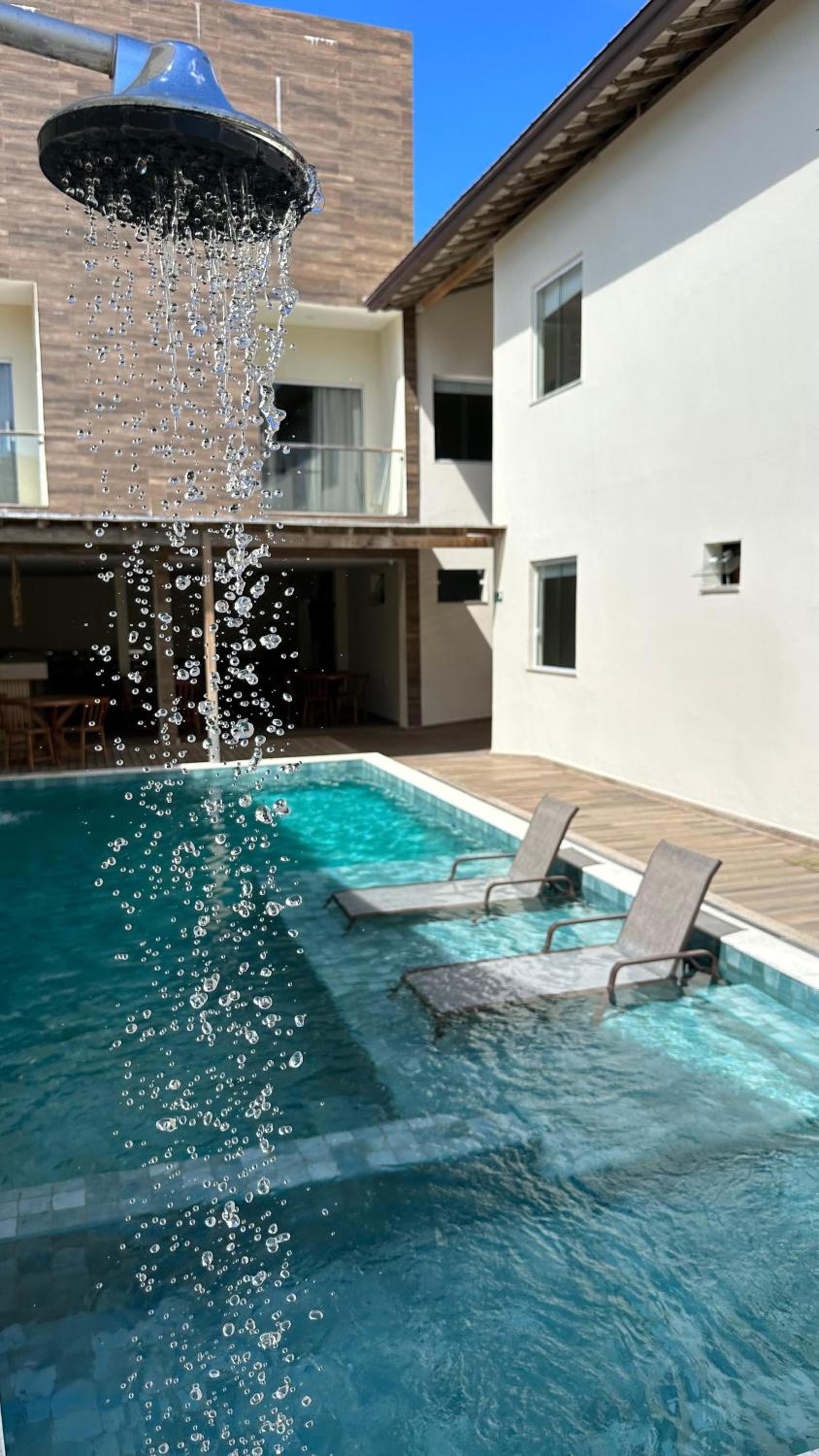 O quarto também tinha infiltração, o que acrescentou certa atmosfera úmida ao ambiente. Ao final de cada dia, a área da piscina evoluía para algo entre festa improvisada e encontro comunitário, com música alta e hóspedes chegando com coolers lotados, dando a sensação de que a pousada tinha decidido flertar com o conceito de “casa da mãe Joana”.
