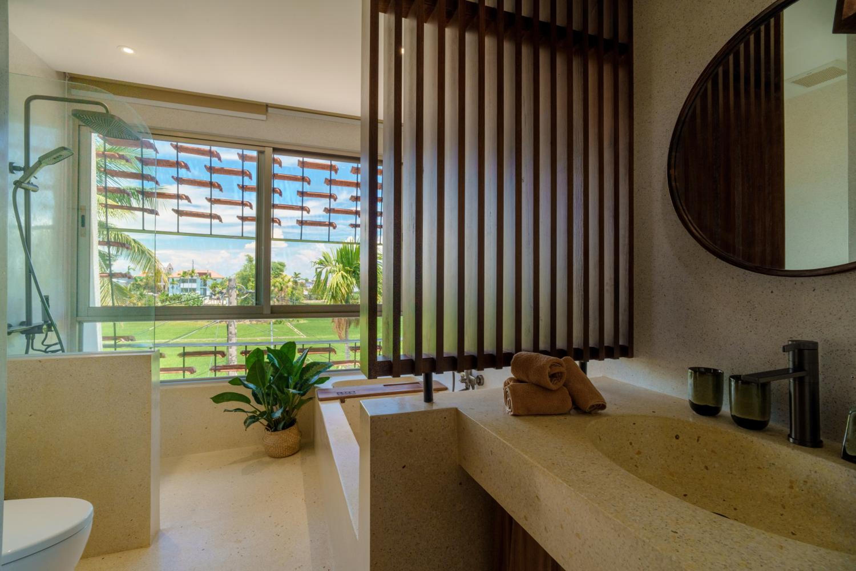 A super well designed stay in great surroundings. The view of the rice fields is stunning, and by bicycle it's still well close enough to all the buzz. The staff was fantastic, communicative and friendly. The apartment hat everything we needed and was the perfect base to just head out and do stuff - Although we admittedly snuck some off time in to just stay in and enjoy it. There are things to explore and do in every direction, and convenience stores close by. Would definitely stay here again without hesitation.