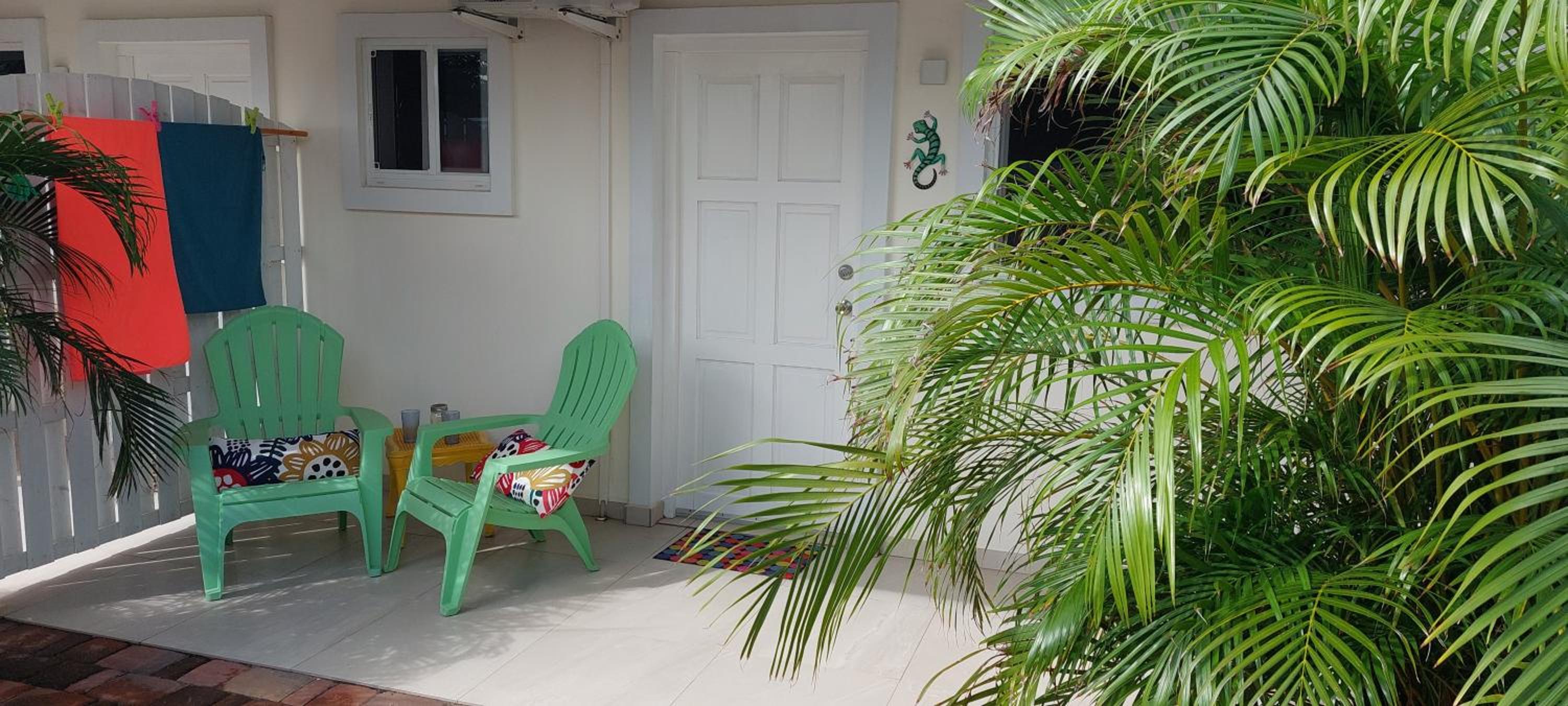 Dancing Iguanas is an amazing place. The room was very nice decorated and very clean. We shared a small kitchen , wich was outside and som nice! Danilo is an eceptionel host. Always there and helpful. Beach is only 10 min walk away and also some restaurants and shops are very close. If we will be back to Aruba, we will straight go to Dancing Iguanas.