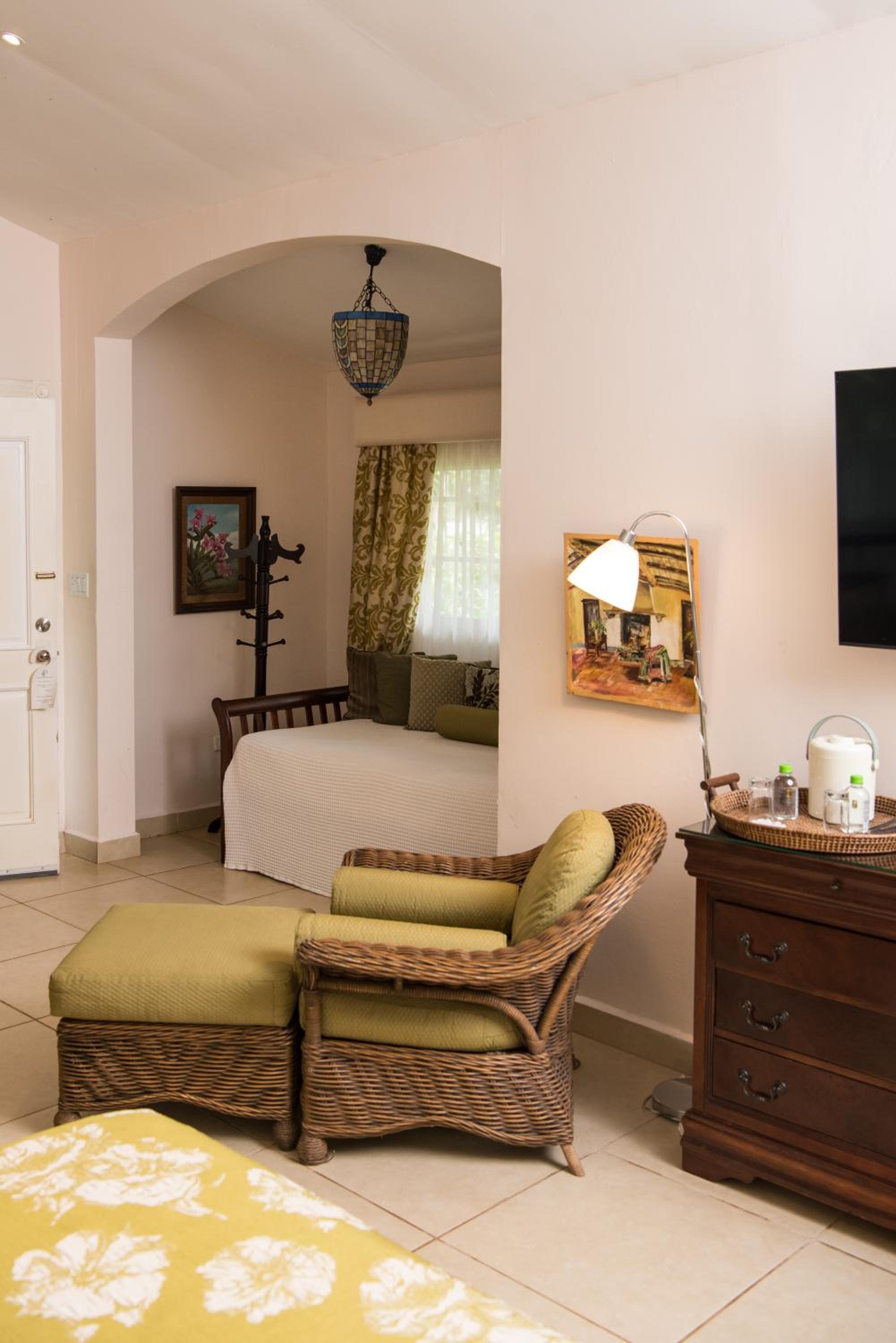 This room is located in the original structure of the house; it preserves the design and atmosphere of the early 20th century. With their timeless charm and authentic character, they are ideal for guests who appreciate history and tradition.The spacious room features a private bathroom, air conditioning, a private entrance, and a comfortable seating area with a flat-screen TV. It also includes cable channels and offers one bed.Please note: Access is through traditional stairways, so these rooms are not recommended for guests with limited mobility. For safety reasons, Superior rooms are not suitable for families with small children. Due to their dimensions, it is not possible to accommodate additional equipment such as cribs or rollaway beds.
