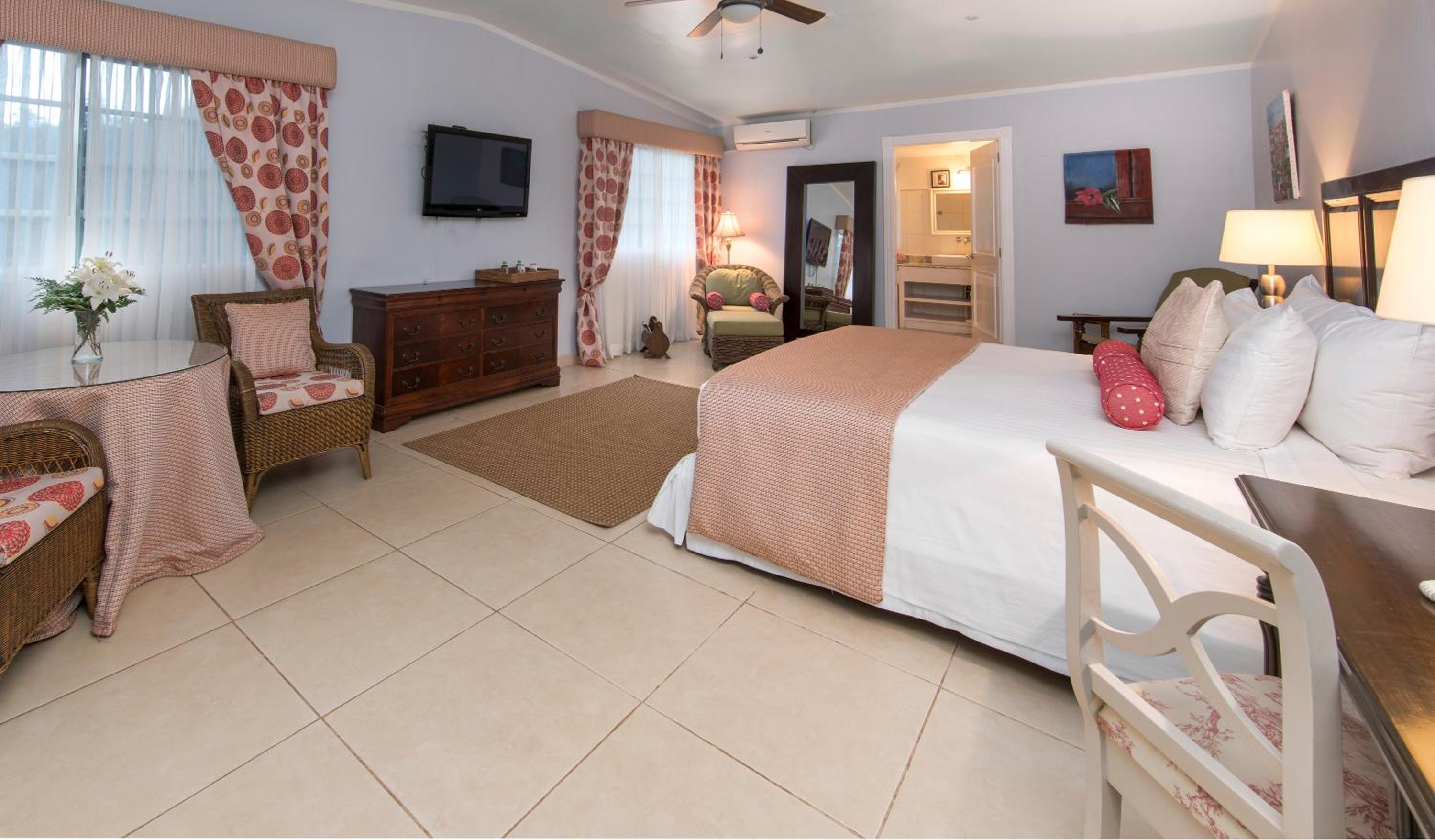 Indulge in stylish suites at Hotel Panamonte boasting free Wi-Fi, terraces, and captivating garden and mountain vistas. Each suite is adorned with teak furniture, local artwork, Egyptian cotton sheets, and modern amenities for your comfort.