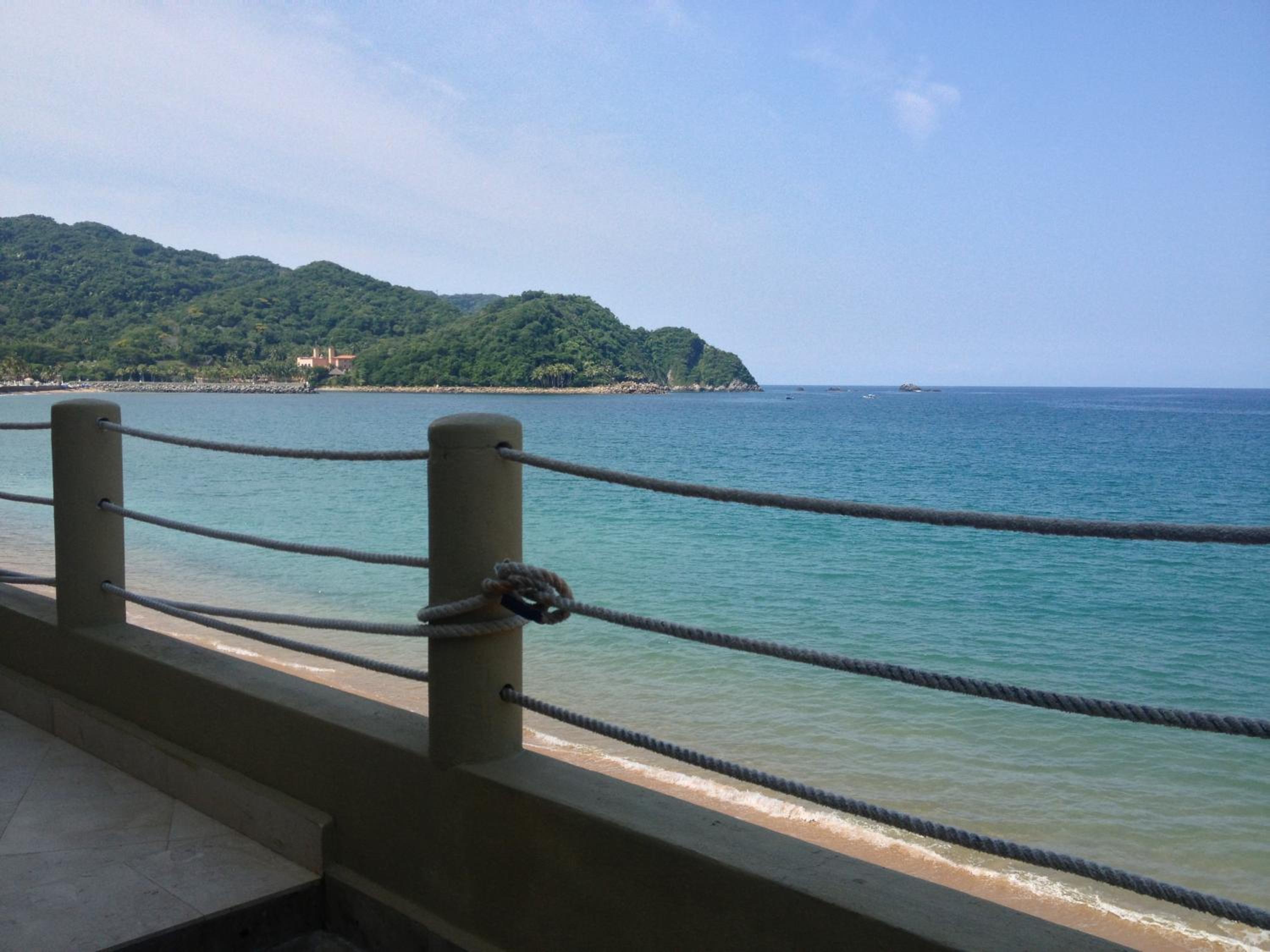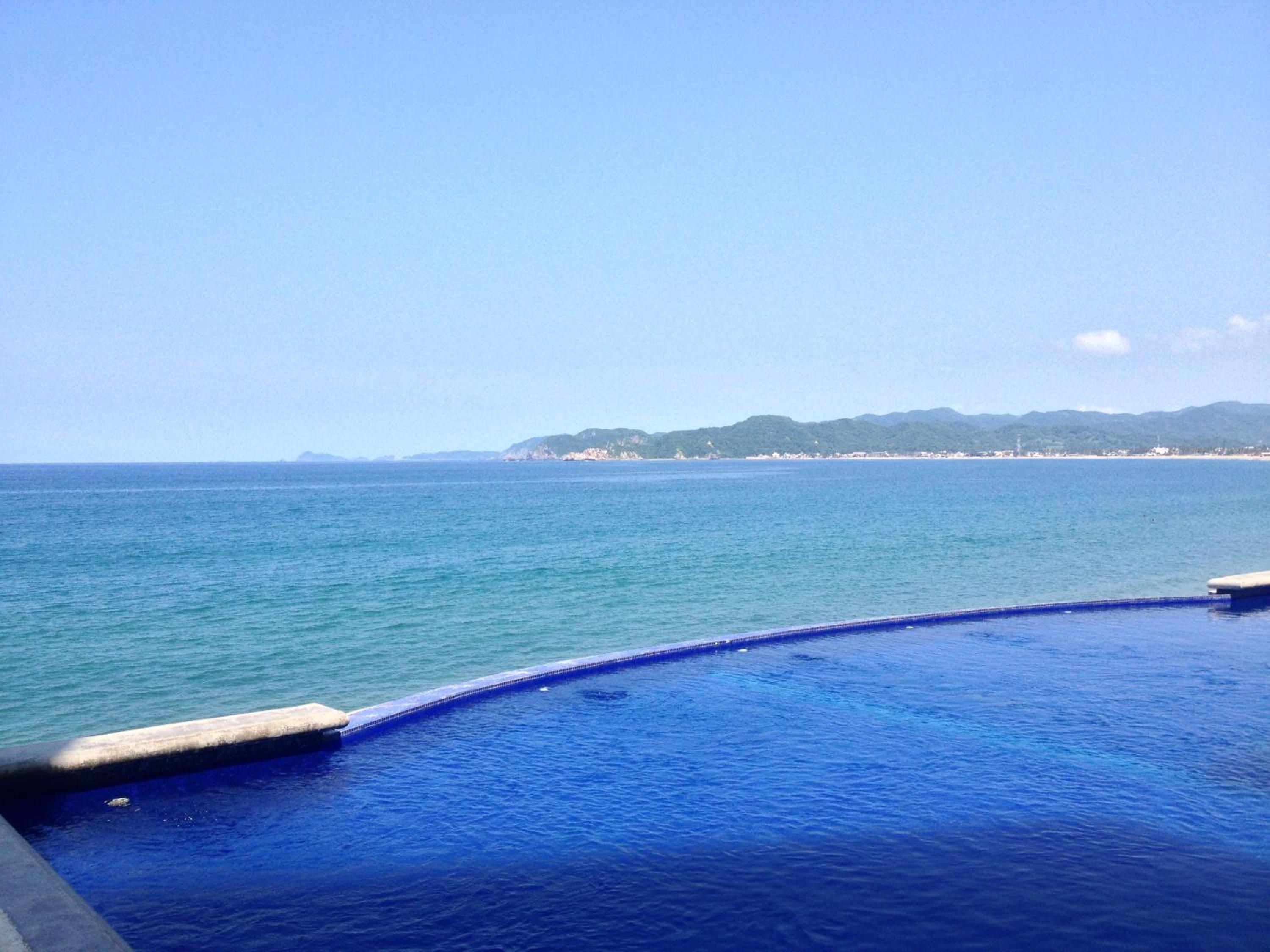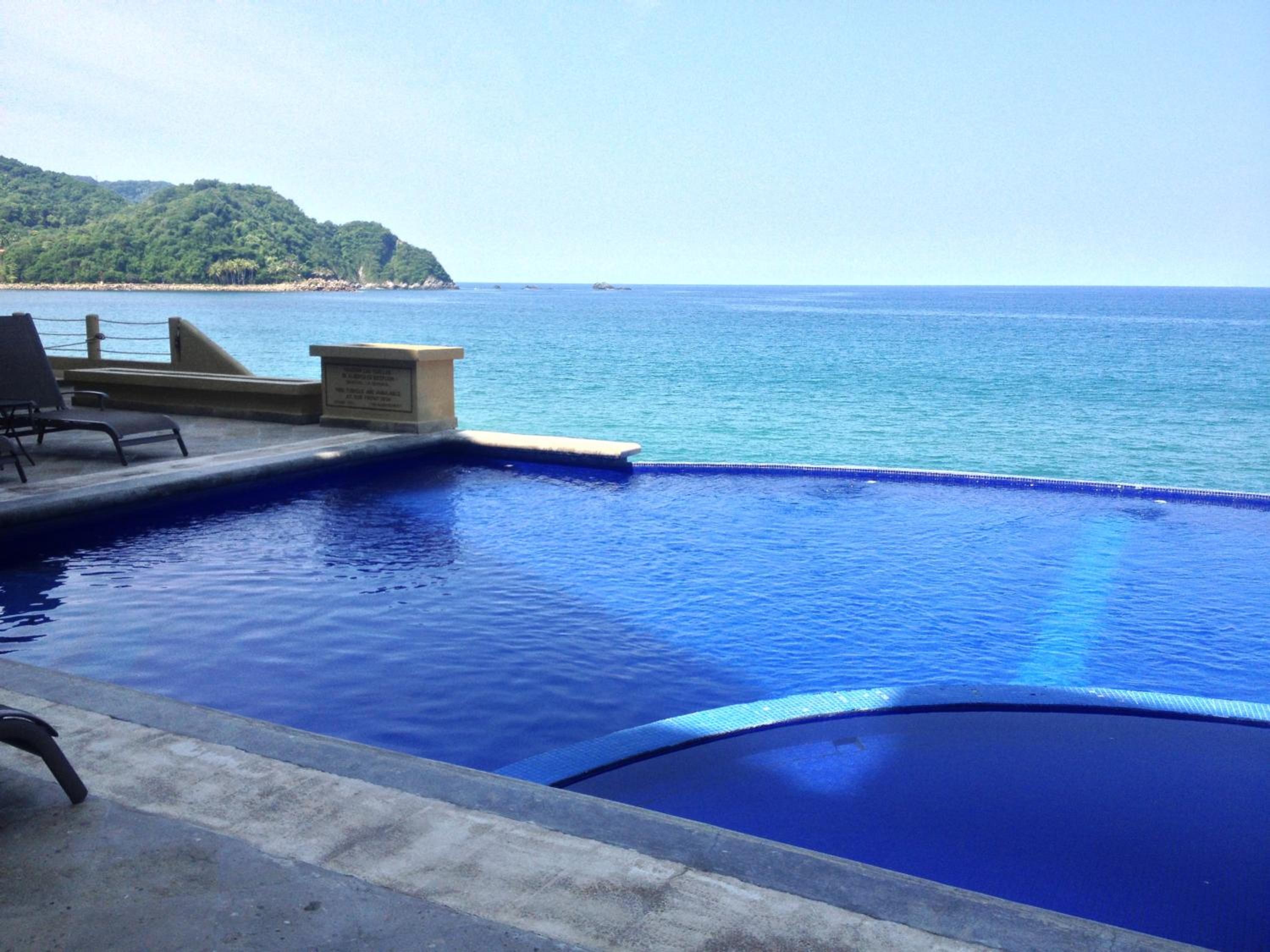 Overlooking the ocean, infinity pool. Steps down to the beach. Just on the edge of town, lots of restaurants and tourist shops. Yoga studio was a short walk with regular yoga classes. Restaurant next to pool.