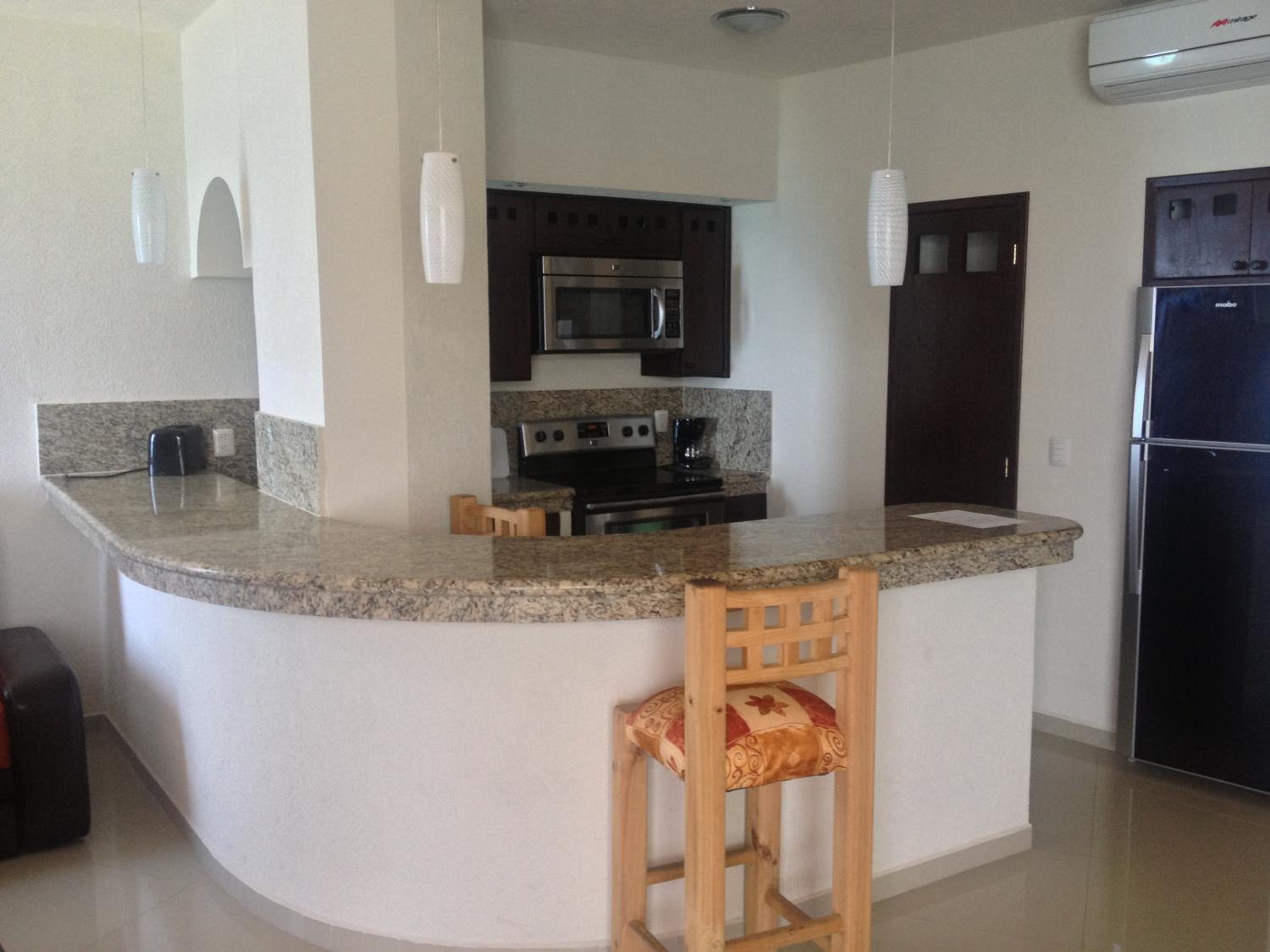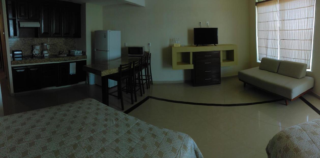 There were no junior suites available (with kitchenettes) so we booked a regular hotel room. The room did not include a refrigerator, coffee maker or a safe for valuables.... amenities that are standard in most other hotel rooms when I've travelled, but maybe Mexico is different. There weren't ANY hooks on the wall for hanging wet towels so had to drape them across chairs on the balcony and on doorknobs. We booked the room for 3 people (2 queen beds) but had to ask for enough bath towels and there was only 1 hand towel and no washcloths provided. There were only 2 chairs on the balcony but was small, so understandable. So... a few minor things that would have made this a better stay.