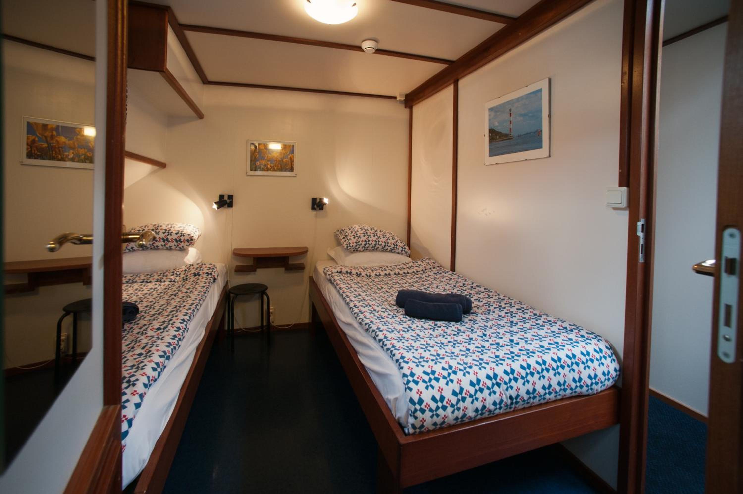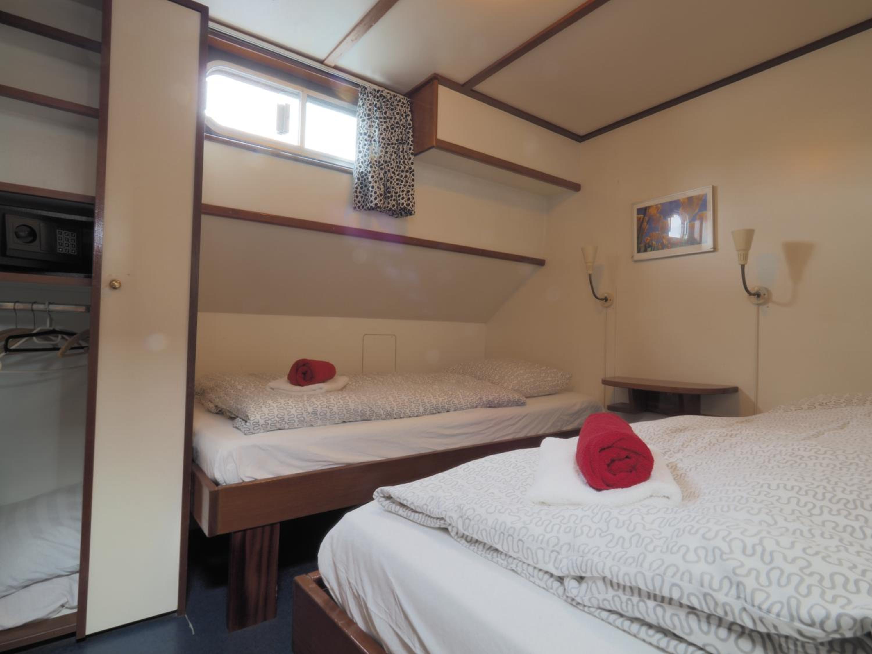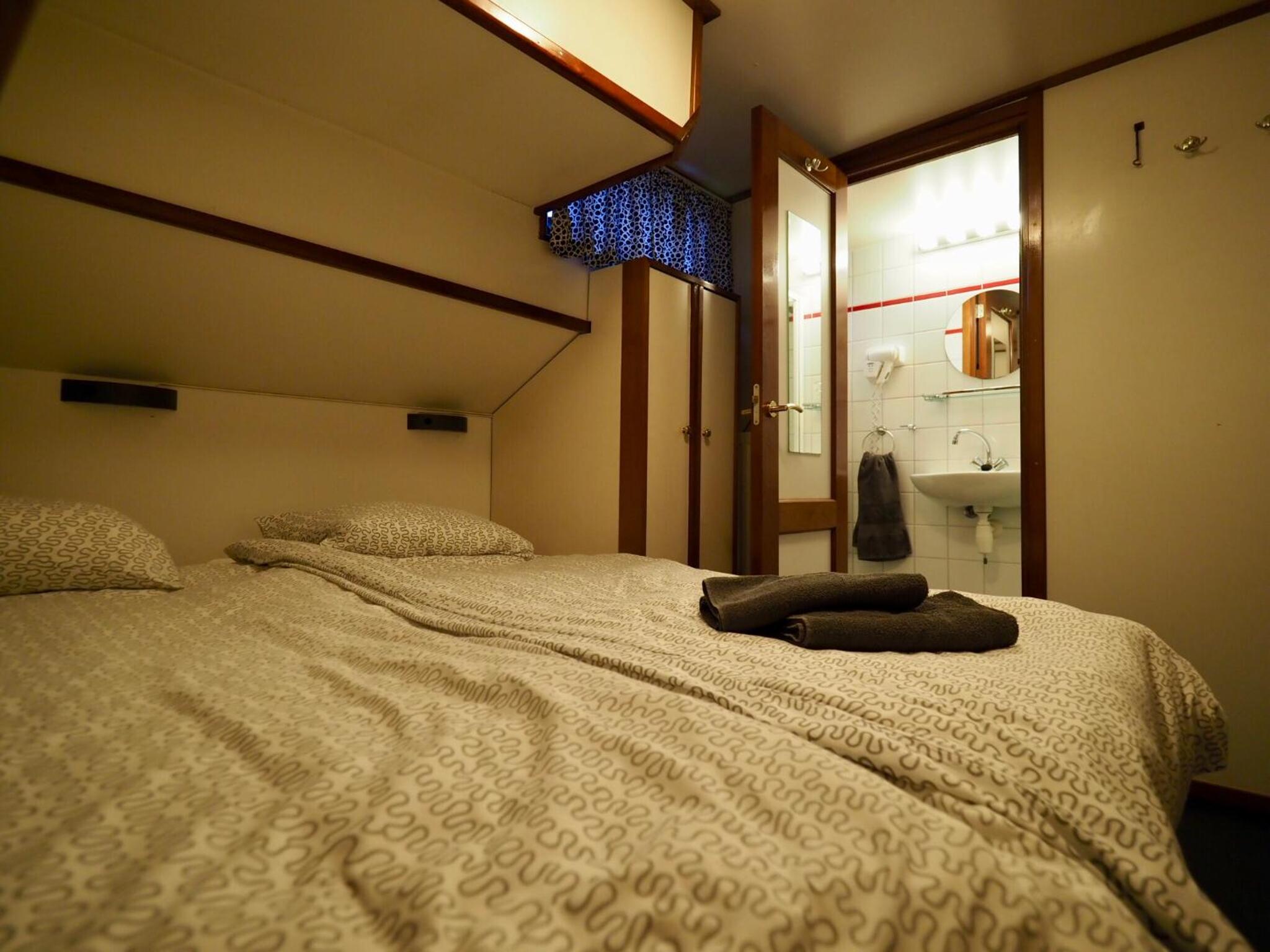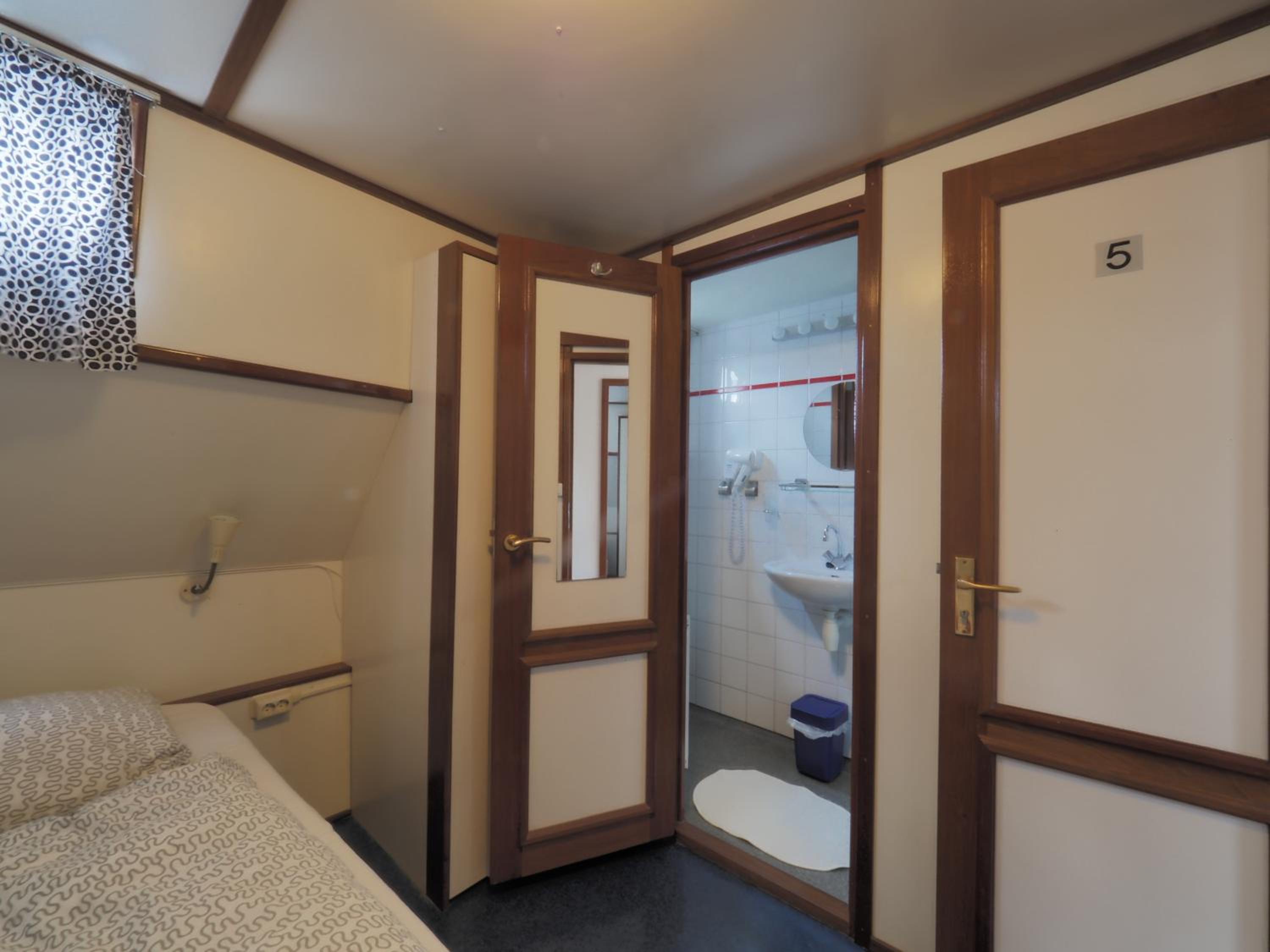 Experience Amsterdam from a unique perspective aboard Hotelboat Sarah. Enjoy picturesque views of the IJ-river from your room and relax on the terrace.