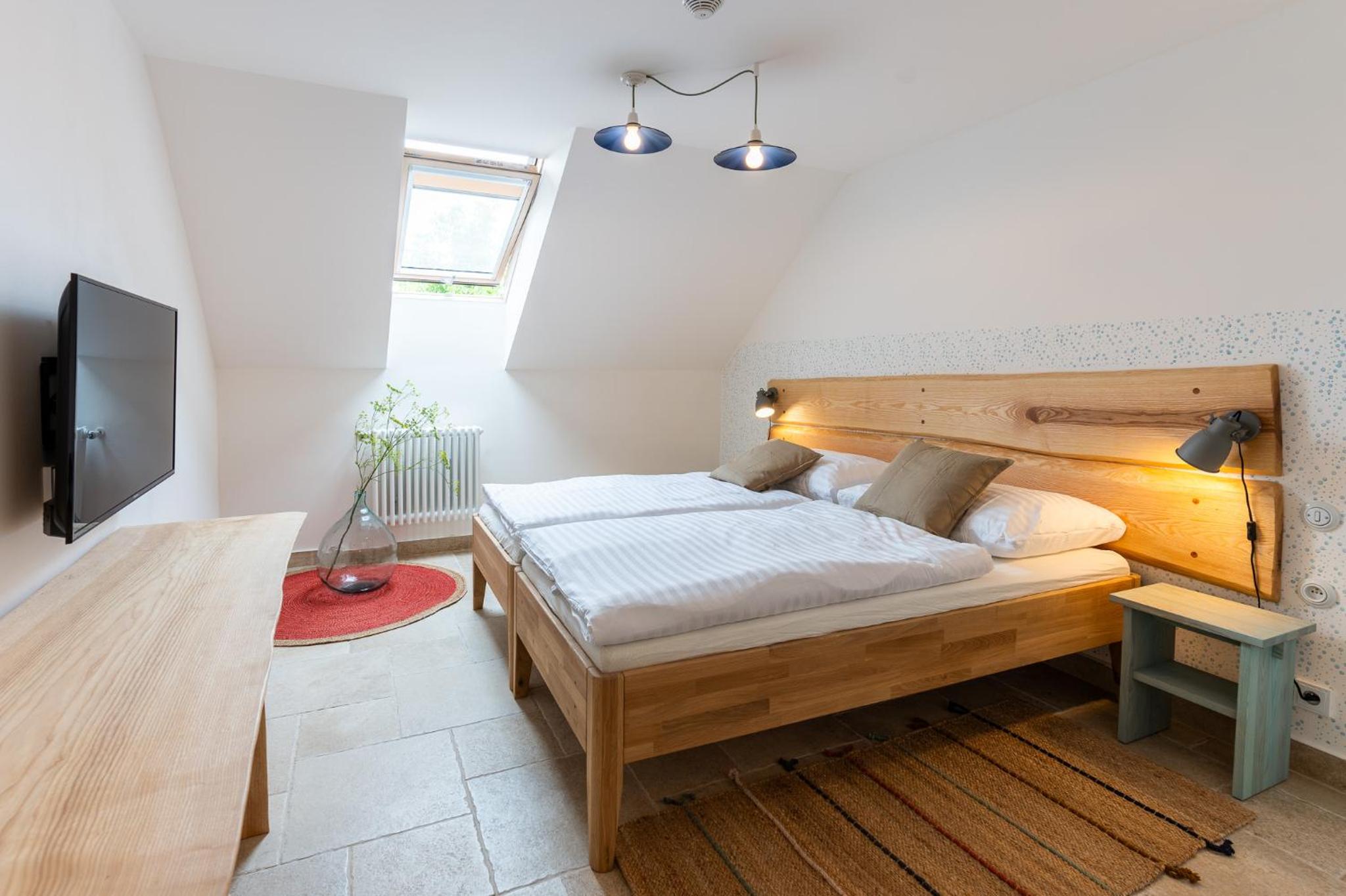 Bardzo wygodna lokalizacja w drodze na południe Europy, dużo fajniejsza niż oklepany Mikulov. Przestronny pokój, z dużą łazienką i fajnym widokiem. Duży zamykany parking dla gości hotelowych. Bardzo miła i pomocna obsługa. Mała spokojna miejscowość ze starym pałacem wraz z posiadłościami i kościołem. Poza hotelem i sklepem z winami chyba nic więcej w niej się nie dzieje, ale o to chodziło. Hotel przyjazny zwierzętom. Przed godziną checkin nikogo nie było w hotelu także należy się nastawić na punktualny przyjazd, inaczej poczekacie w samochodzie przed hotelem.