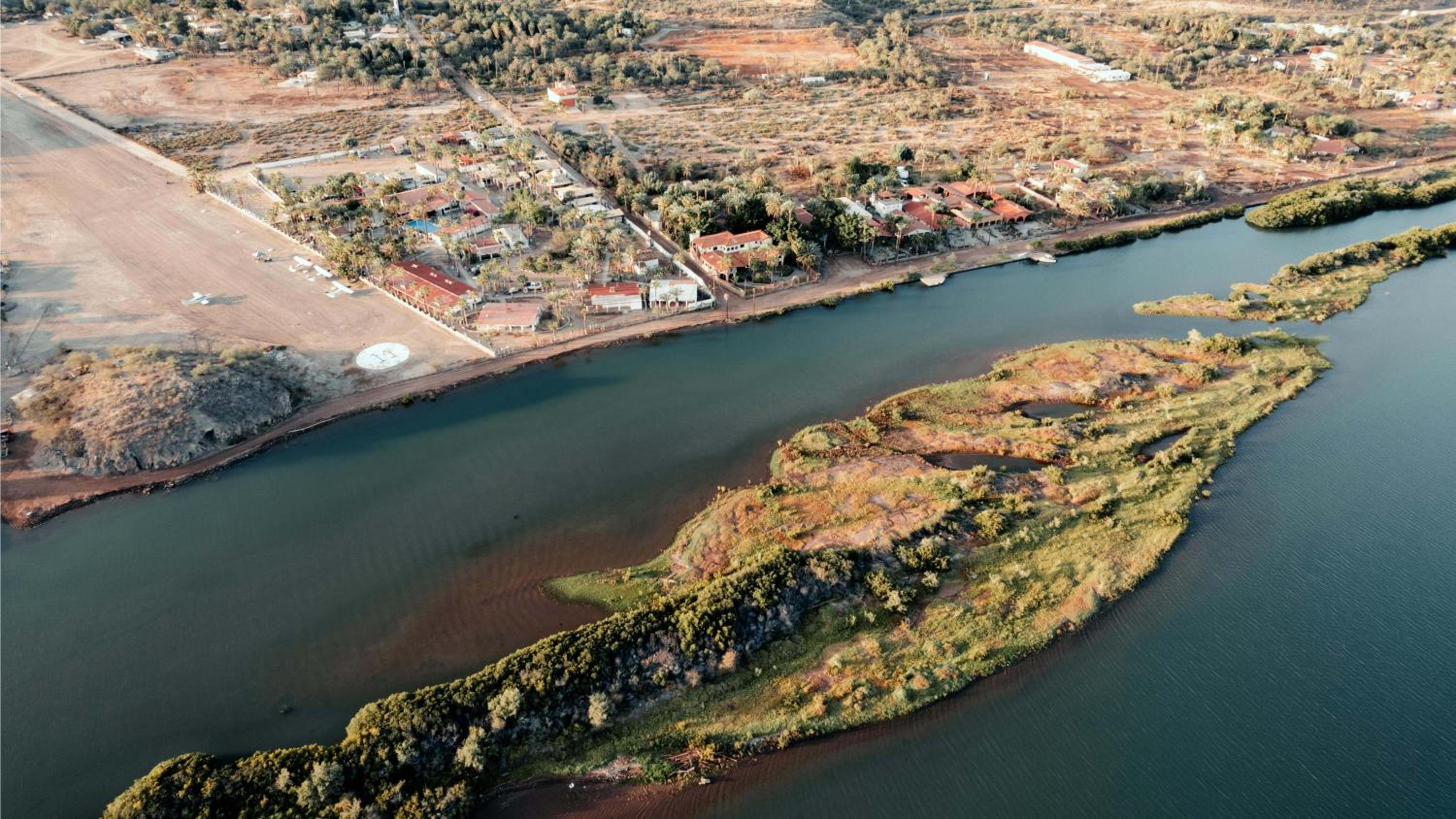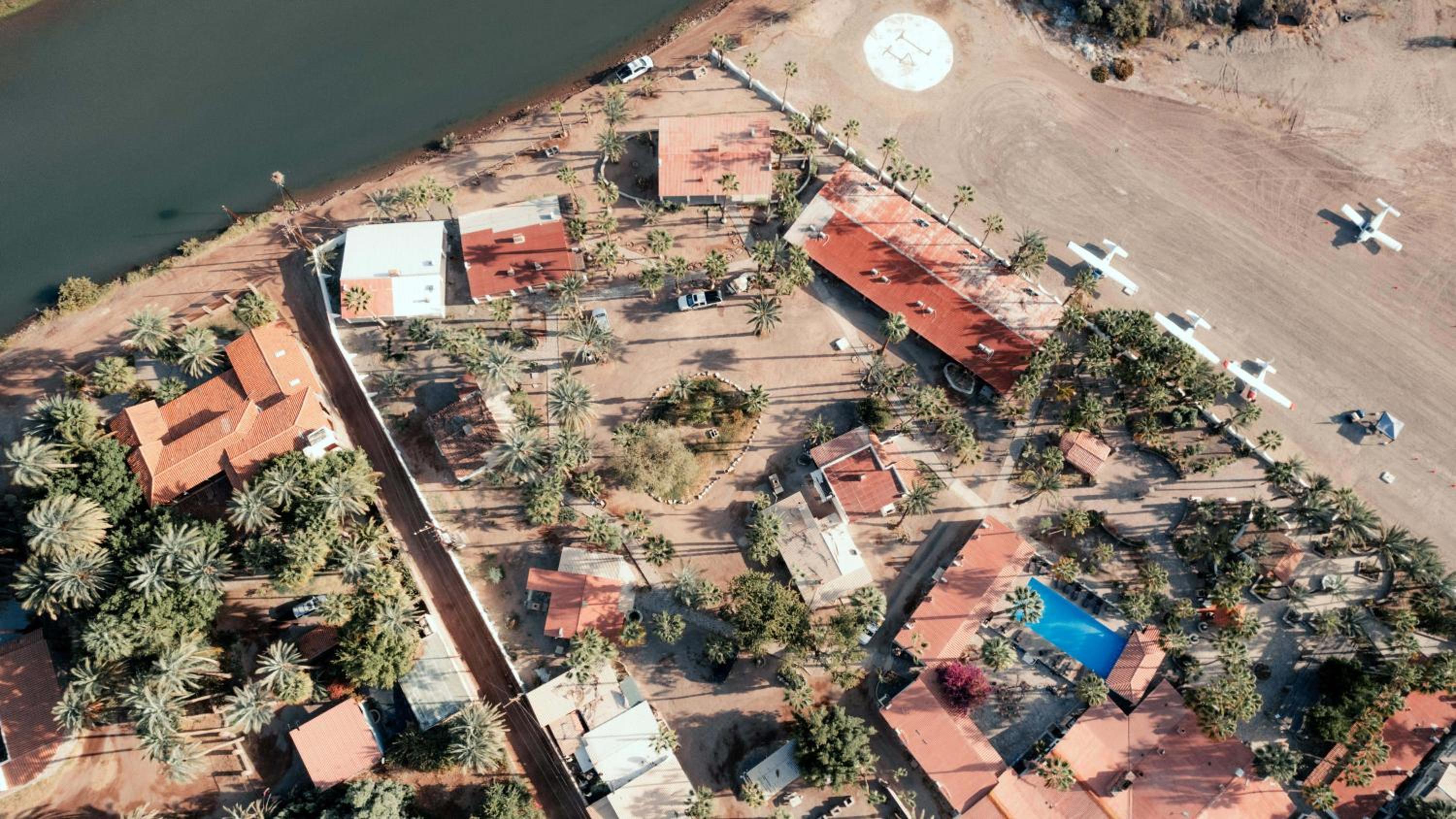 Older property along a river with palm trees. Has some history with John Wayne and Olivia Newton John having stayed there in the 70s.