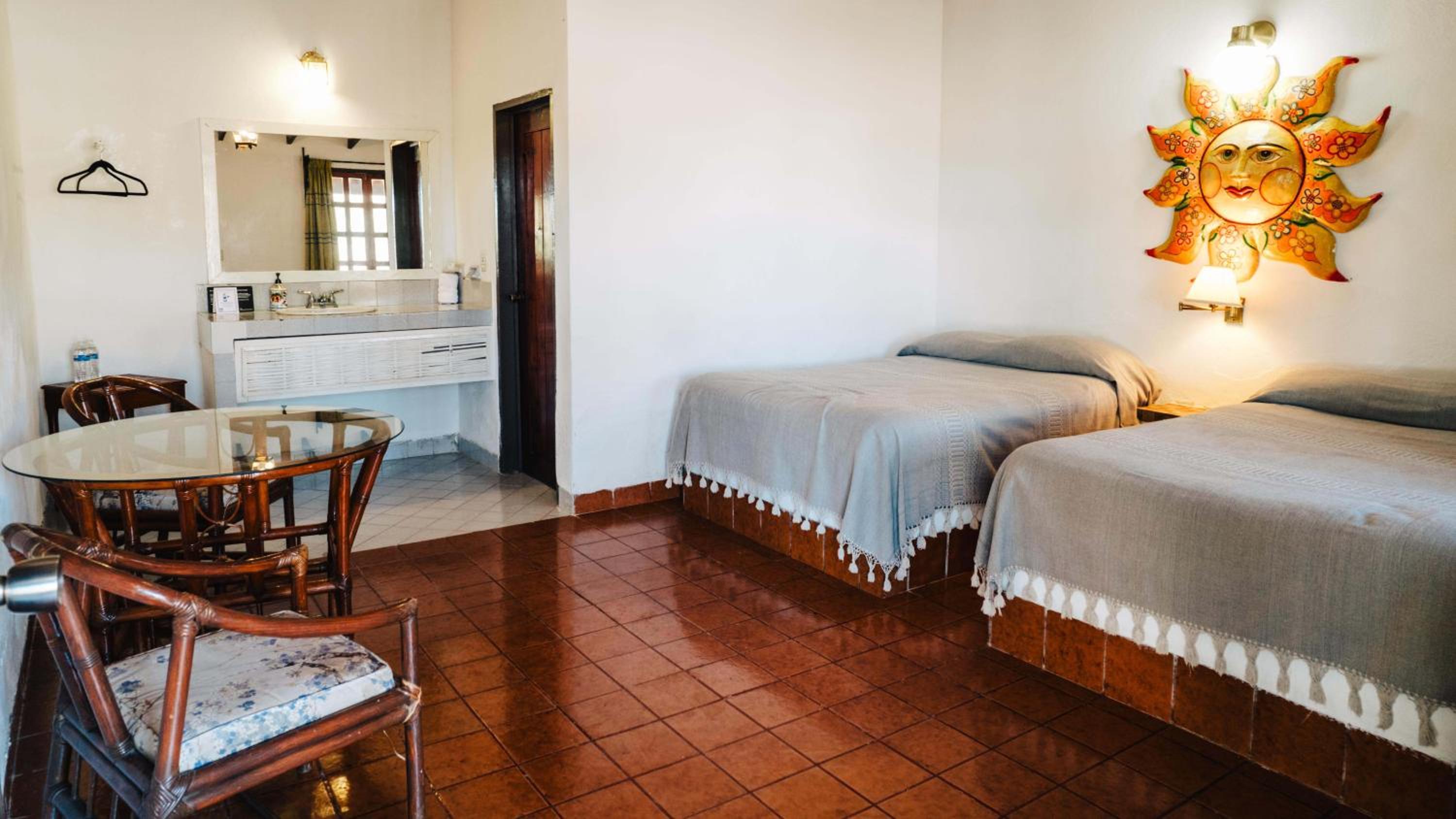 By any normal hotel standard, this place is poor. But, as far as Mulege is concerned, this place is one of the better ones. To begin with, the road to the hotel off the "highway" is not paved and is rough. The hotel is inside a walled area; but there are private residences in the area. Signage to the office is poor. I ended up walking into an elderly American's house by mistake. Luckily he didn't shoot me - LOL! He directed me to the hotel office. Rooms are concrete bungalows with beds on concrete slabs. No electric outlets, except one in the bathroom. No closets to hang clothes. A nail on the wall is a make-shift hanger. No WIFI in rooms, only in the lobby and restaurant area, which worked well. Breakfast not included. MXN 40 for a cup of coffee, unless you have breakfast at the hotel. Daily maid service, which is good. Quick & plentiful hot water in bathroom. Mirror in bathroom not above sink. Parking near room. Took a nasty fall by tripping over a low-rise concrete barrier walking to the swimming pool area because there were no warning markings to watch my step. It's a ripoff to charge what I was charged for two nights at this place. I'm just glad I only stayed at this hotel for two nights and was able to walk out