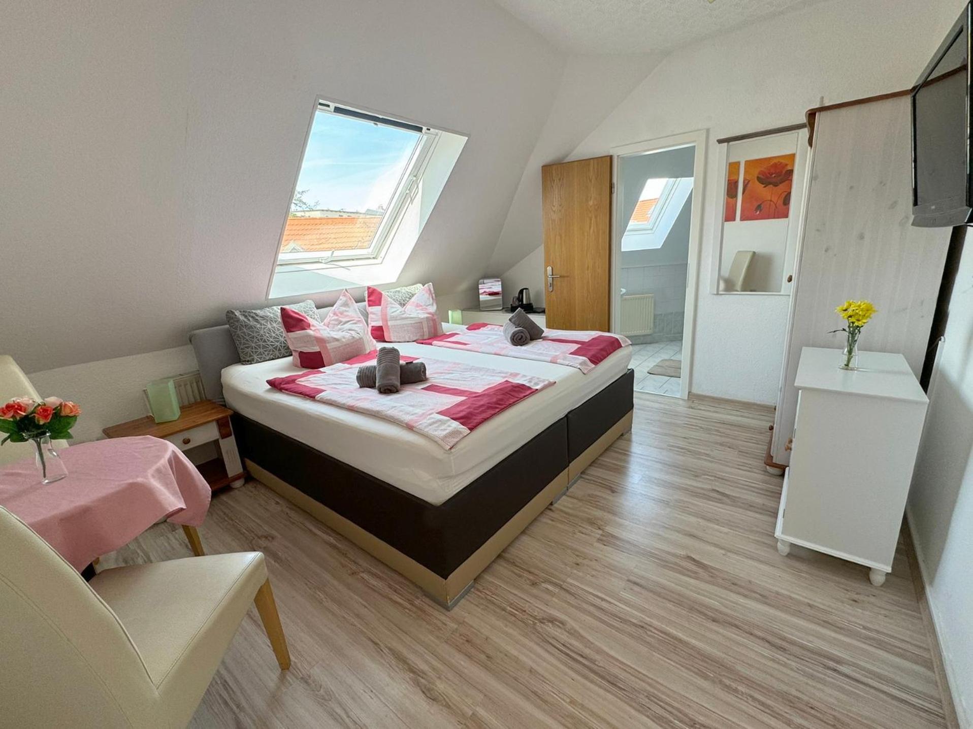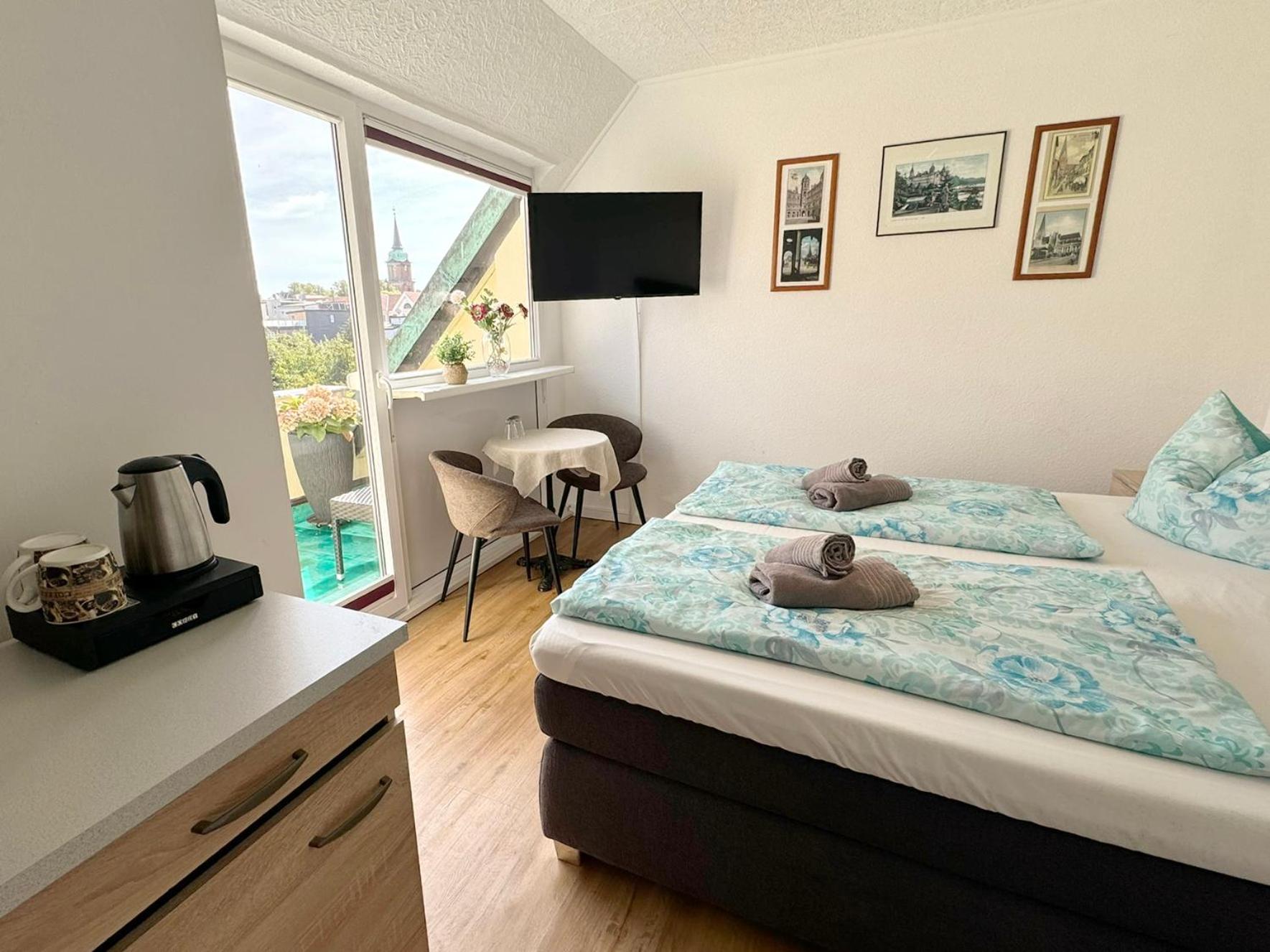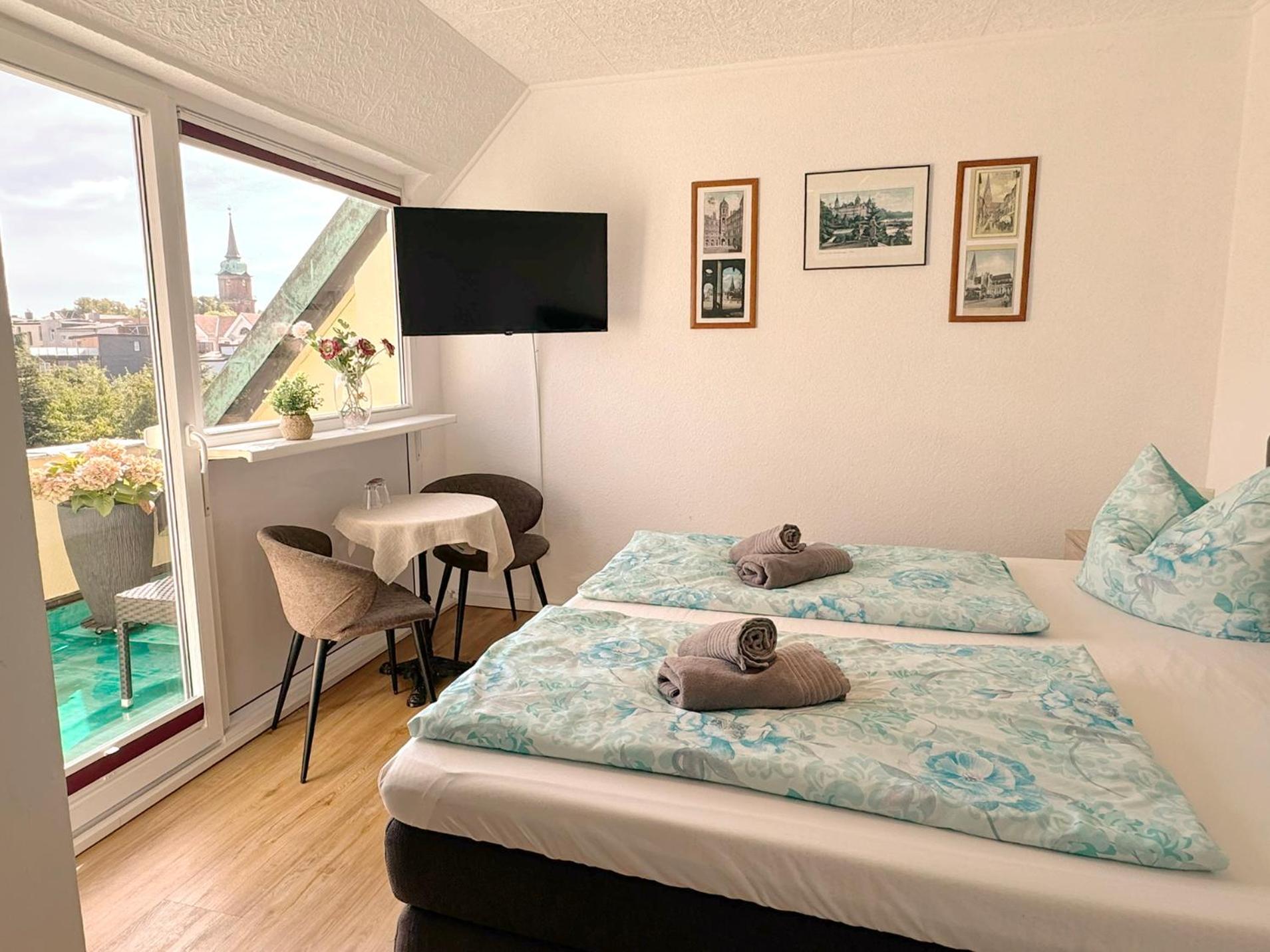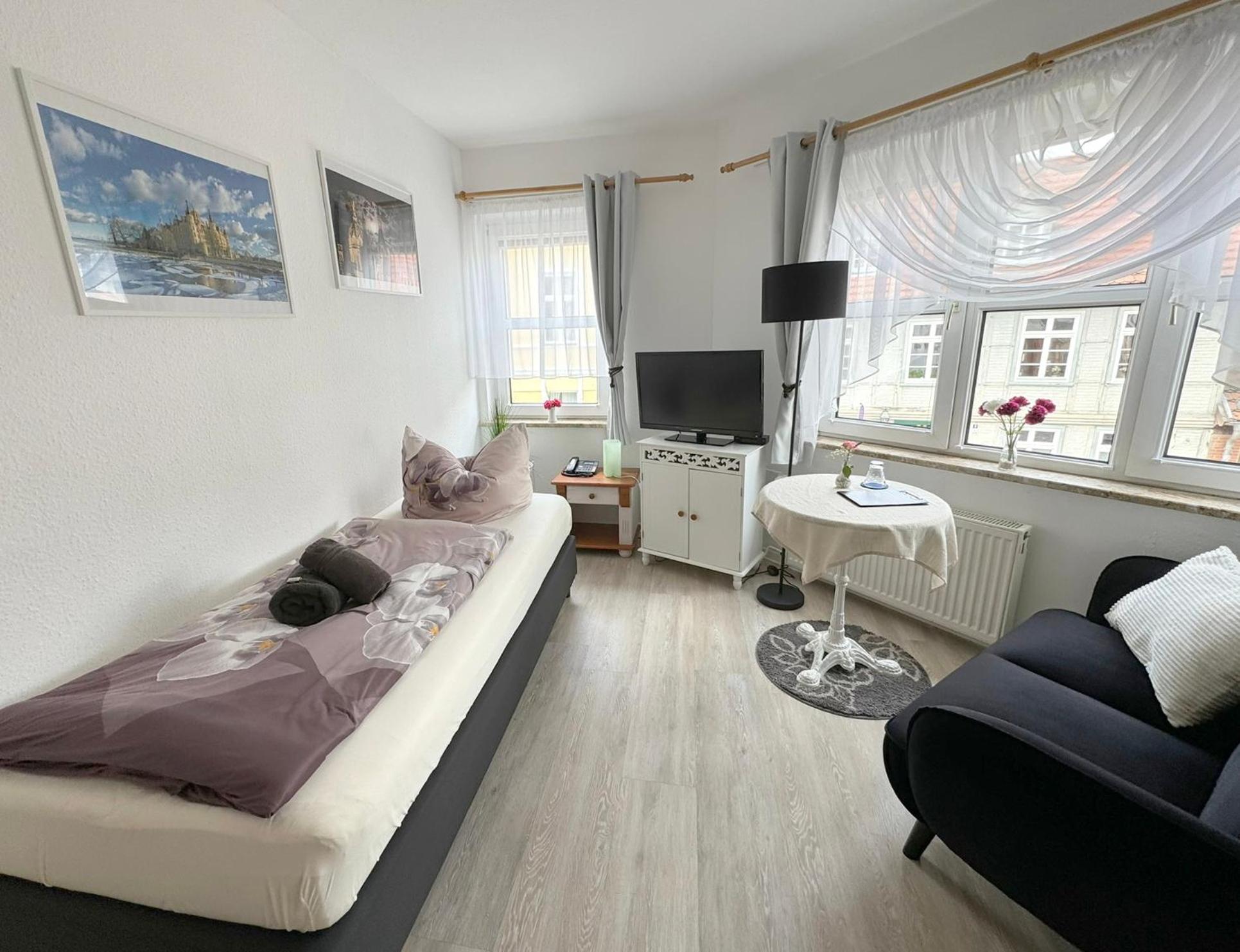 Die herzliche Atmosphäre in dem kleinen familiären Hotel hat uns sehr gefallen. Unser Zimmer ging zur ruhigen Straße mit schönem Blick auf die Fachwerkhäuser der Schelfstadt.