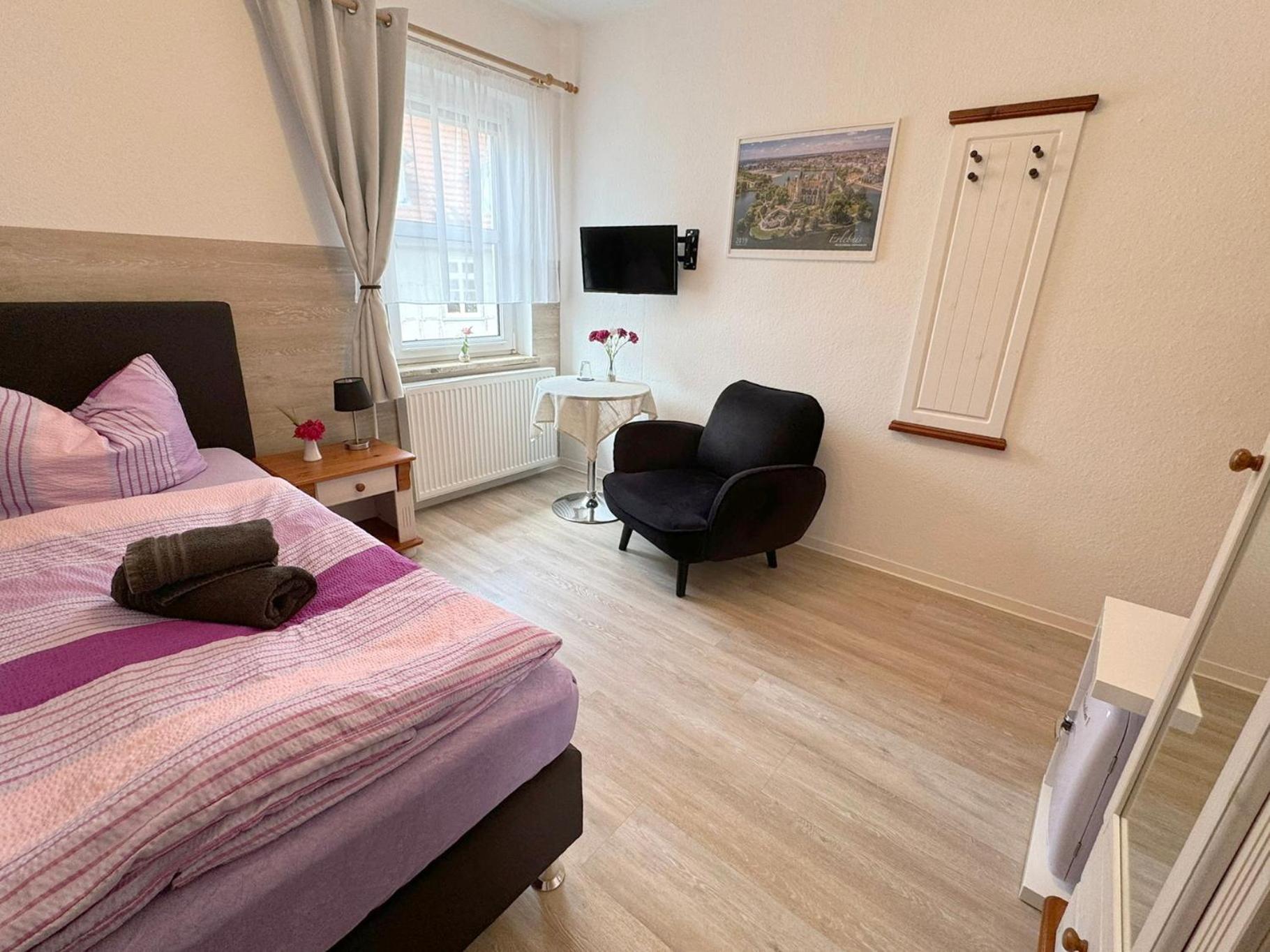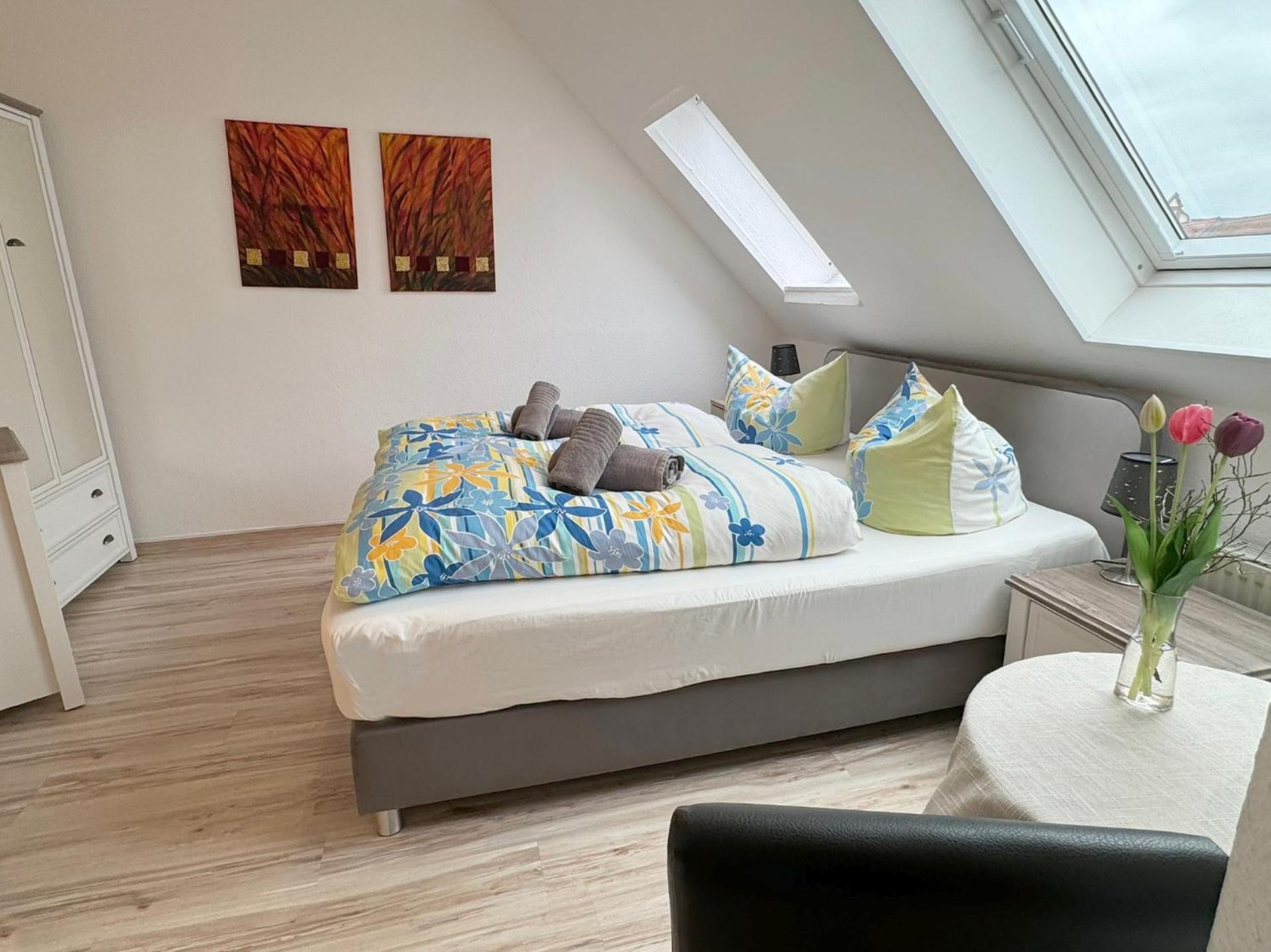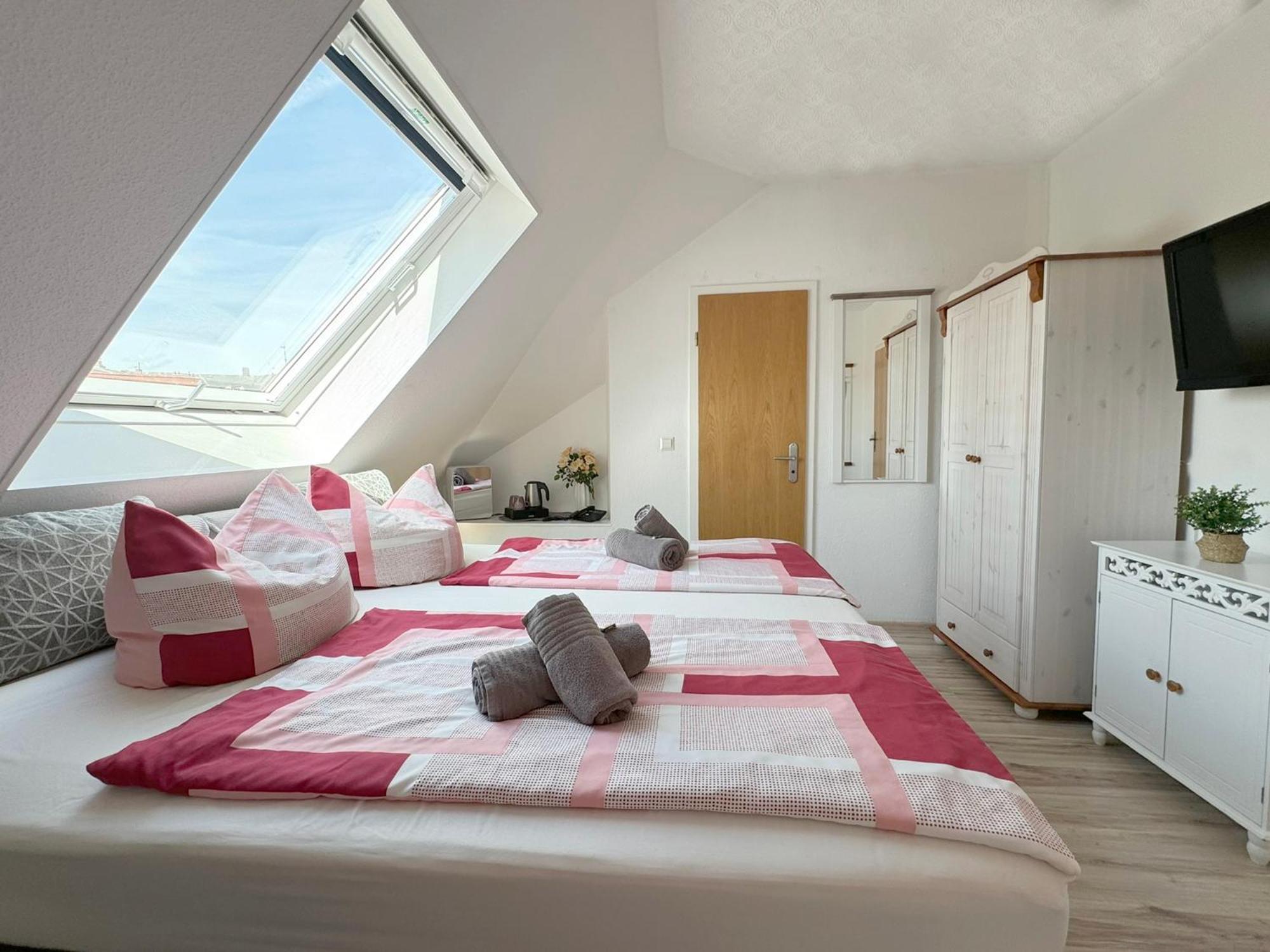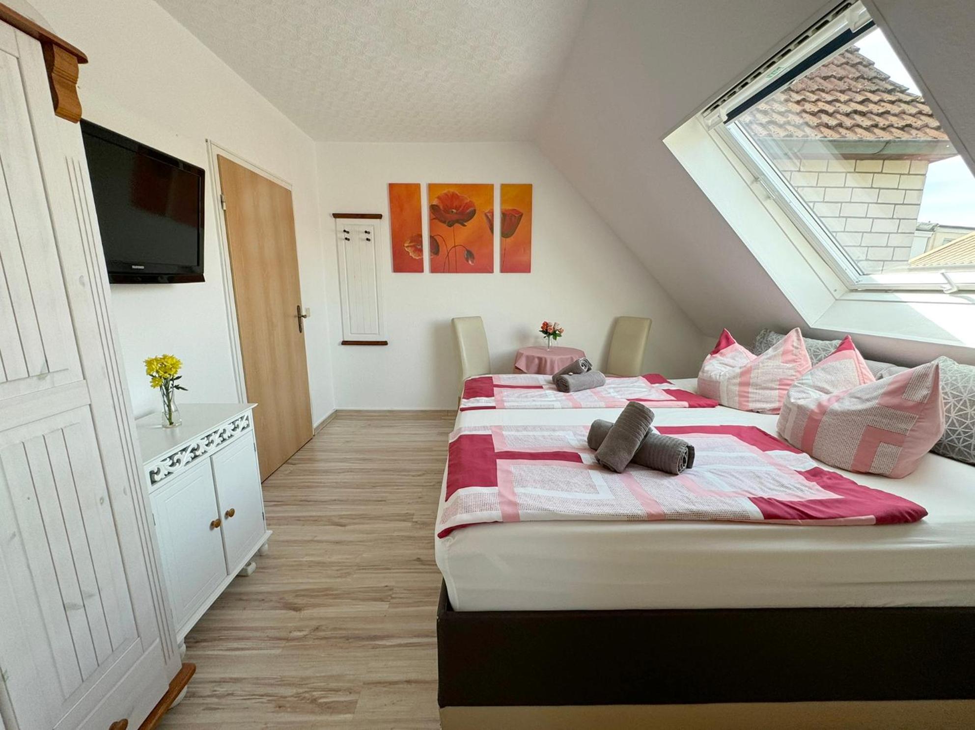 Die herzliche Atmosphäre in dem kleinen familiären Hotel hat uns sehr gefallen. Unser Zimmer ging zur ruhigen Straße mit schönem Blick auf die Fachwerkhäuser der Schelfstadt.