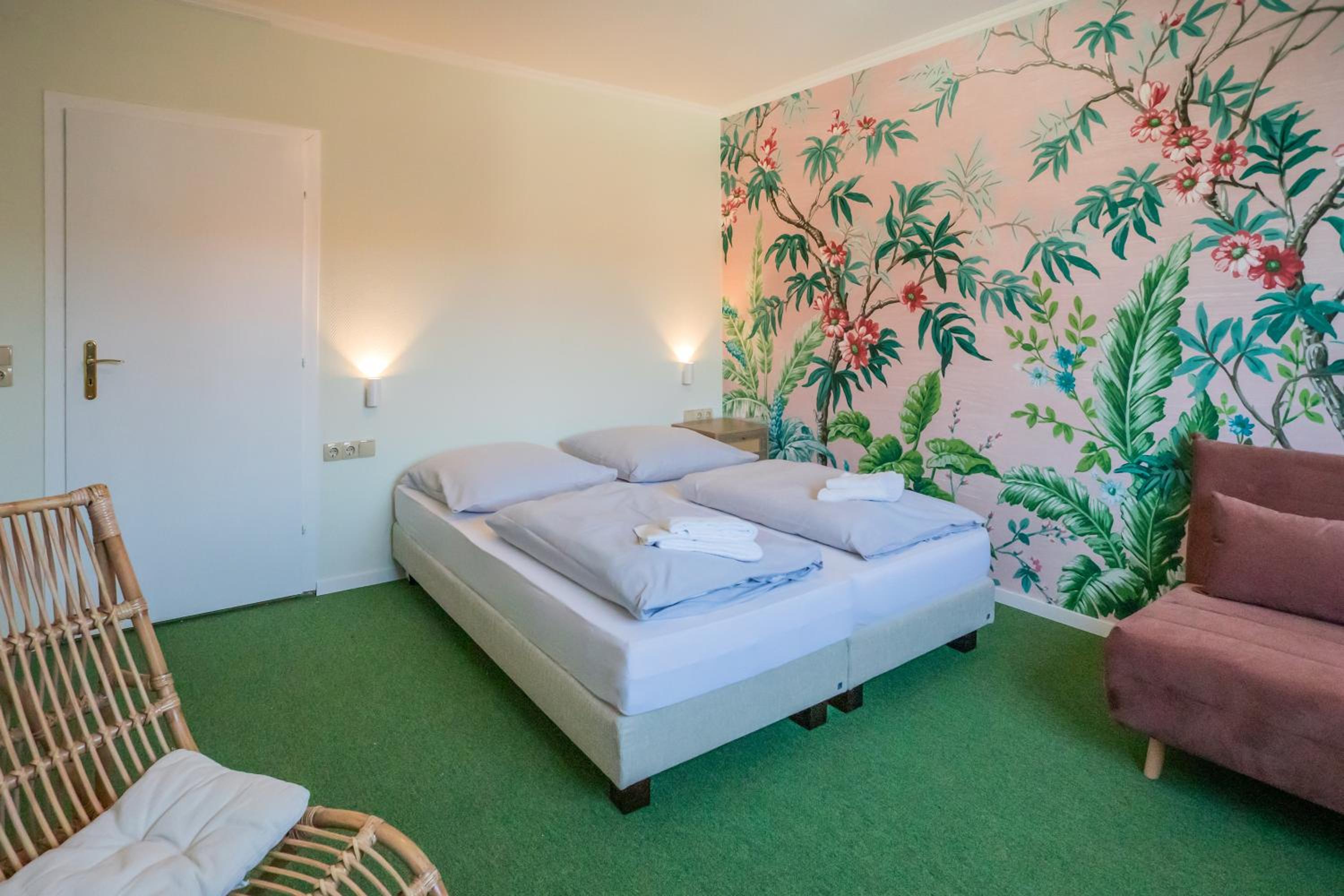 Die Lage ist sehr gut und die Zimmer sind sauber und gemütlich . Parkplatz direkt vor dem Hotel . Personal super freundlich . Alles bestens .