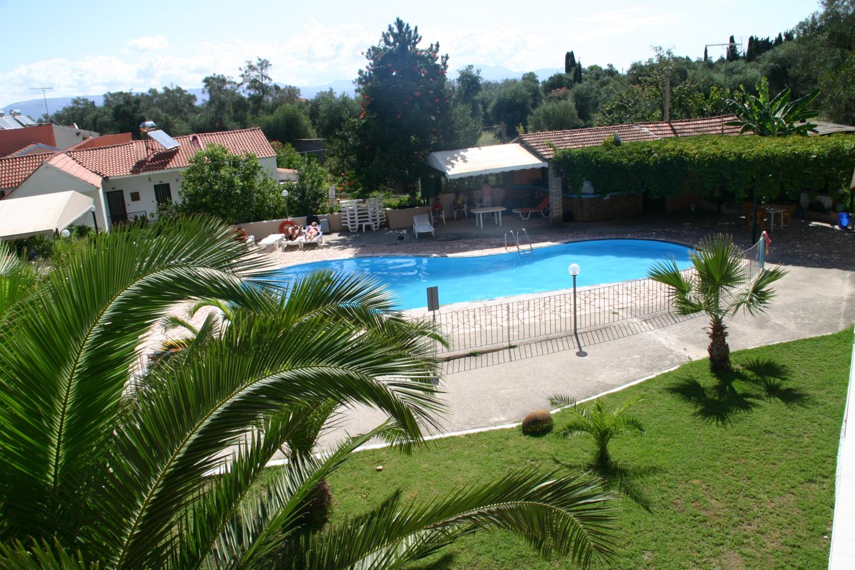 Experience breathtaking pool and garden views from your private balcony at Palmyra Studios. The picturesque mountain scenery adds to the charm of this beachfront property.