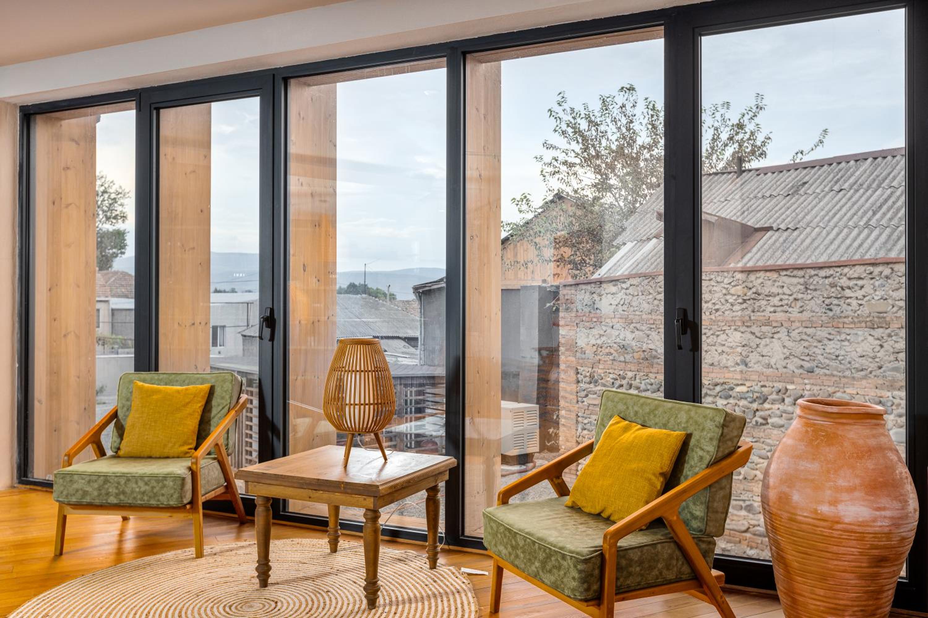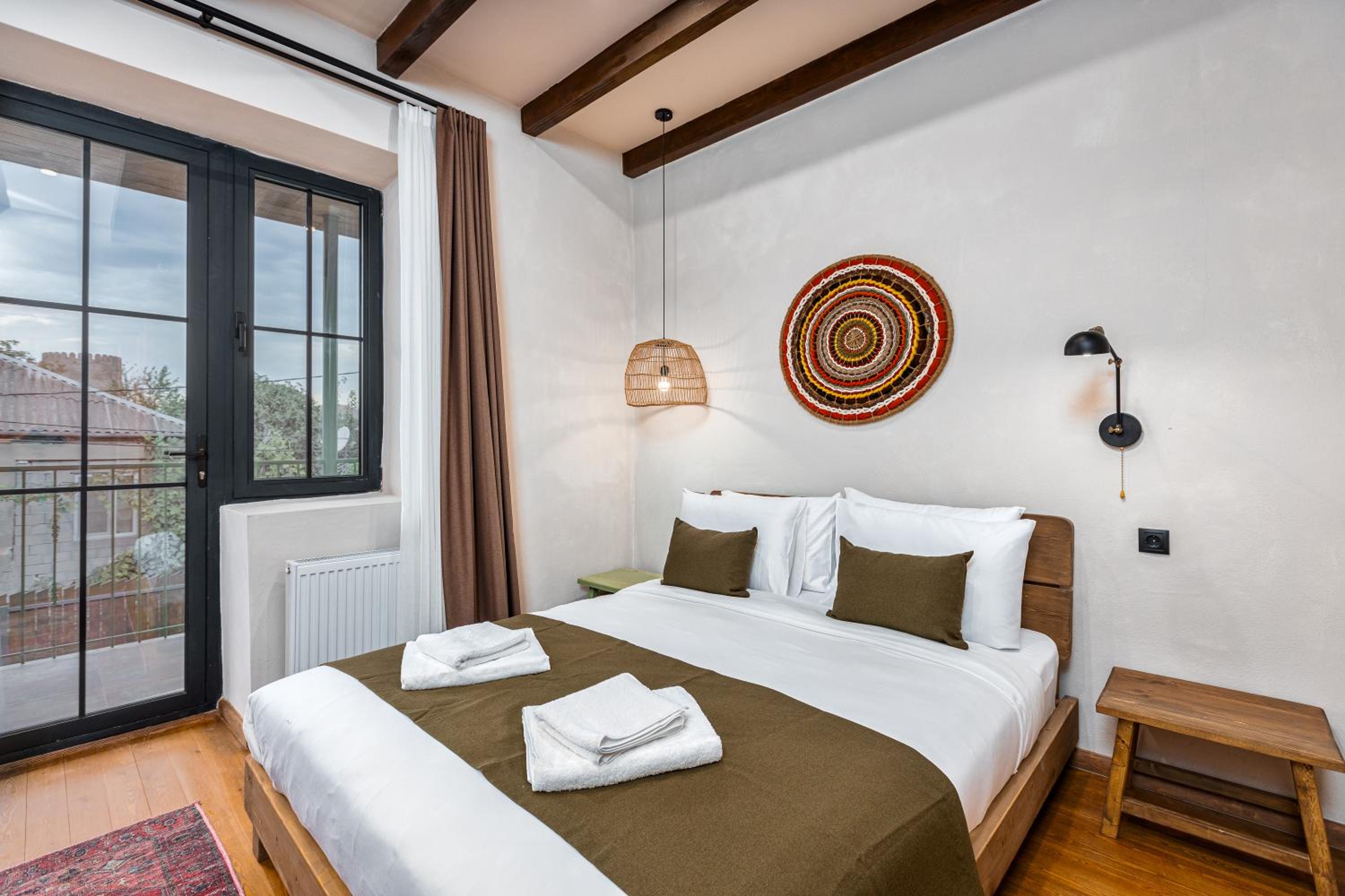 1. Modern Amenities: Hameau Mukhrani offers air-conditioned rooms with private bathrooms, ensuring a comfortable stay. Enjoy city views from your own balcony and relax in a cozy seating area.