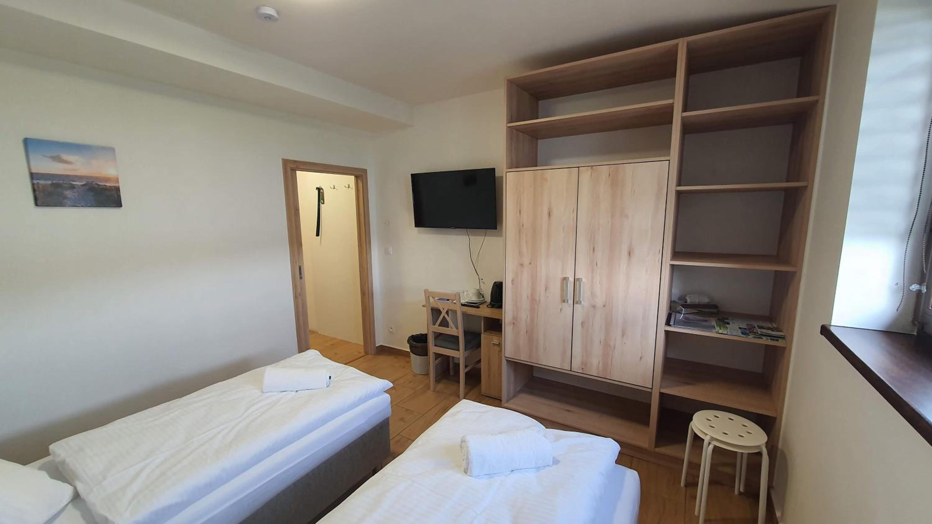 Malutki pokój, brak chociażby suszarki, czajnik niby jest ale żadnych kubków, restauracja przyhotelowa a nawet jednego talerza nie można dostać na pokój, obsługa niby miła ale jak już coś się od nich chce to problem.