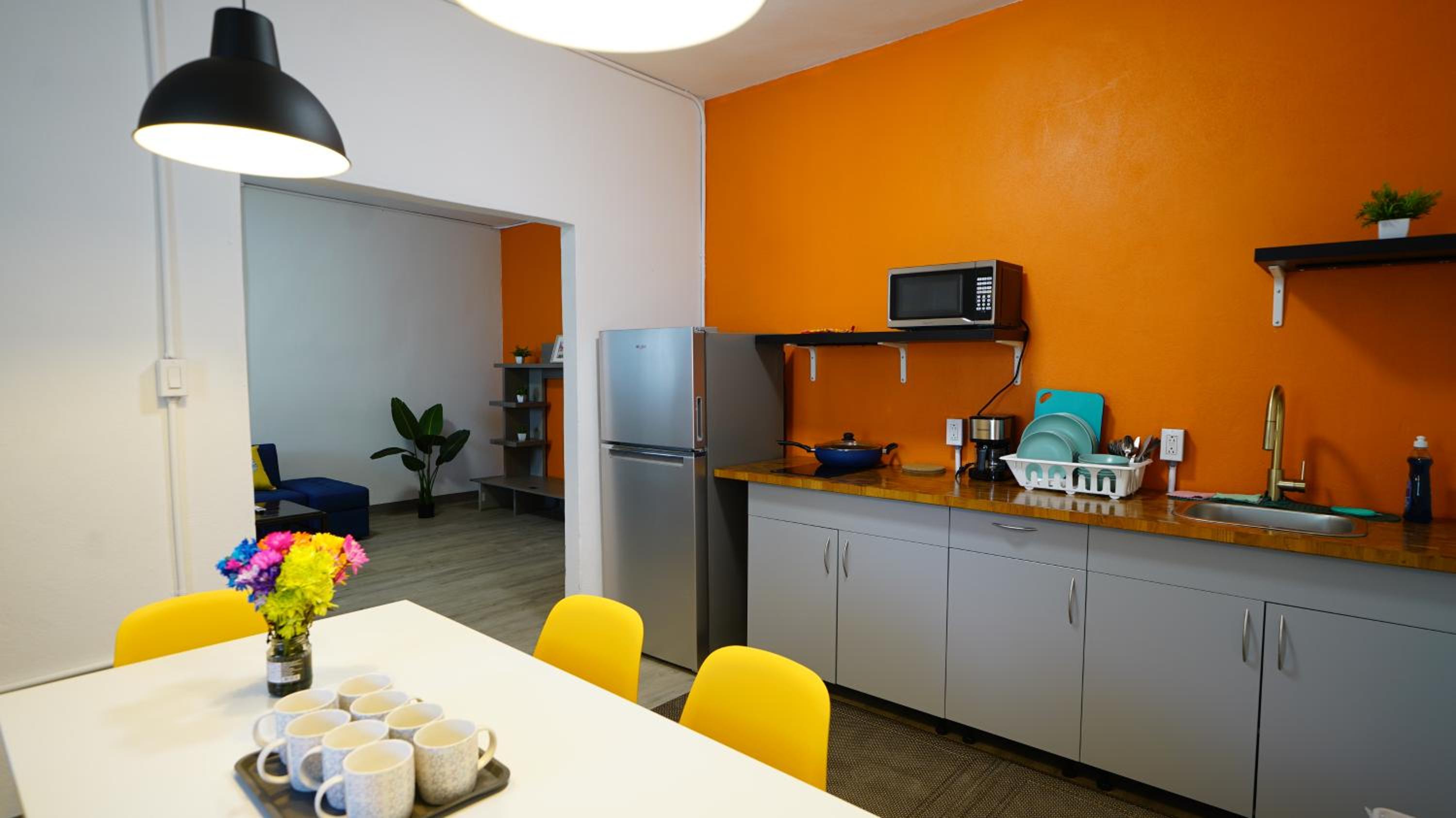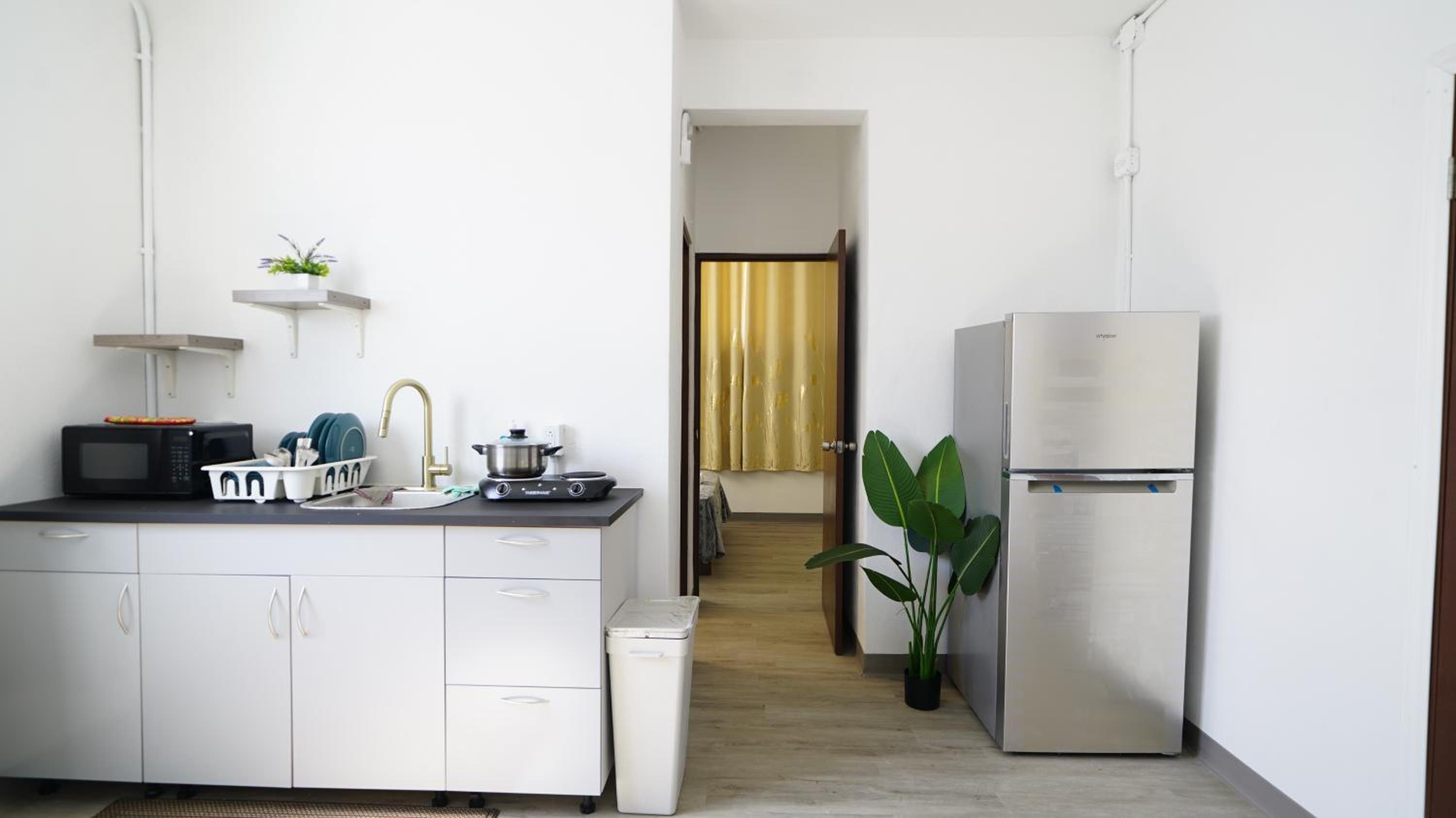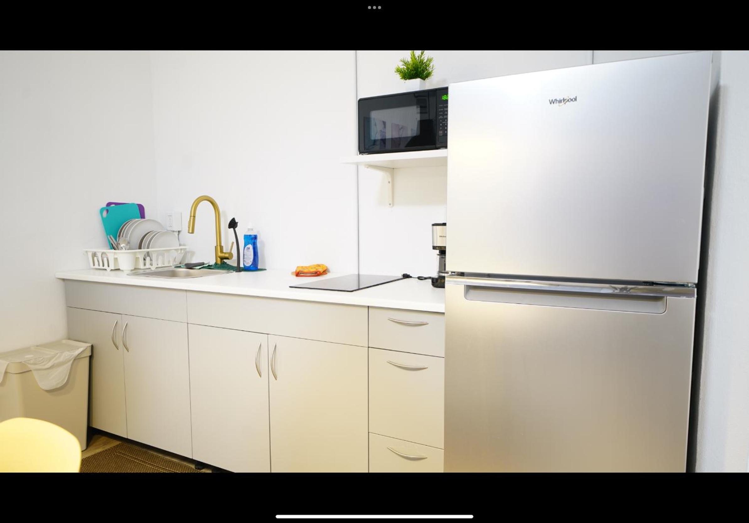 Good price if you’re prepared to climb 3 flights of stairs with your luggage. The kitchenette , with full sized fridge, was clean & had enough cooking supplies if needed. Right down the street was a bakery/cafe (Vistamar). Further east was a grocery store. Both businesses are in walking distance. This Abnb style hotel is about 10 minutes from SJU airport.