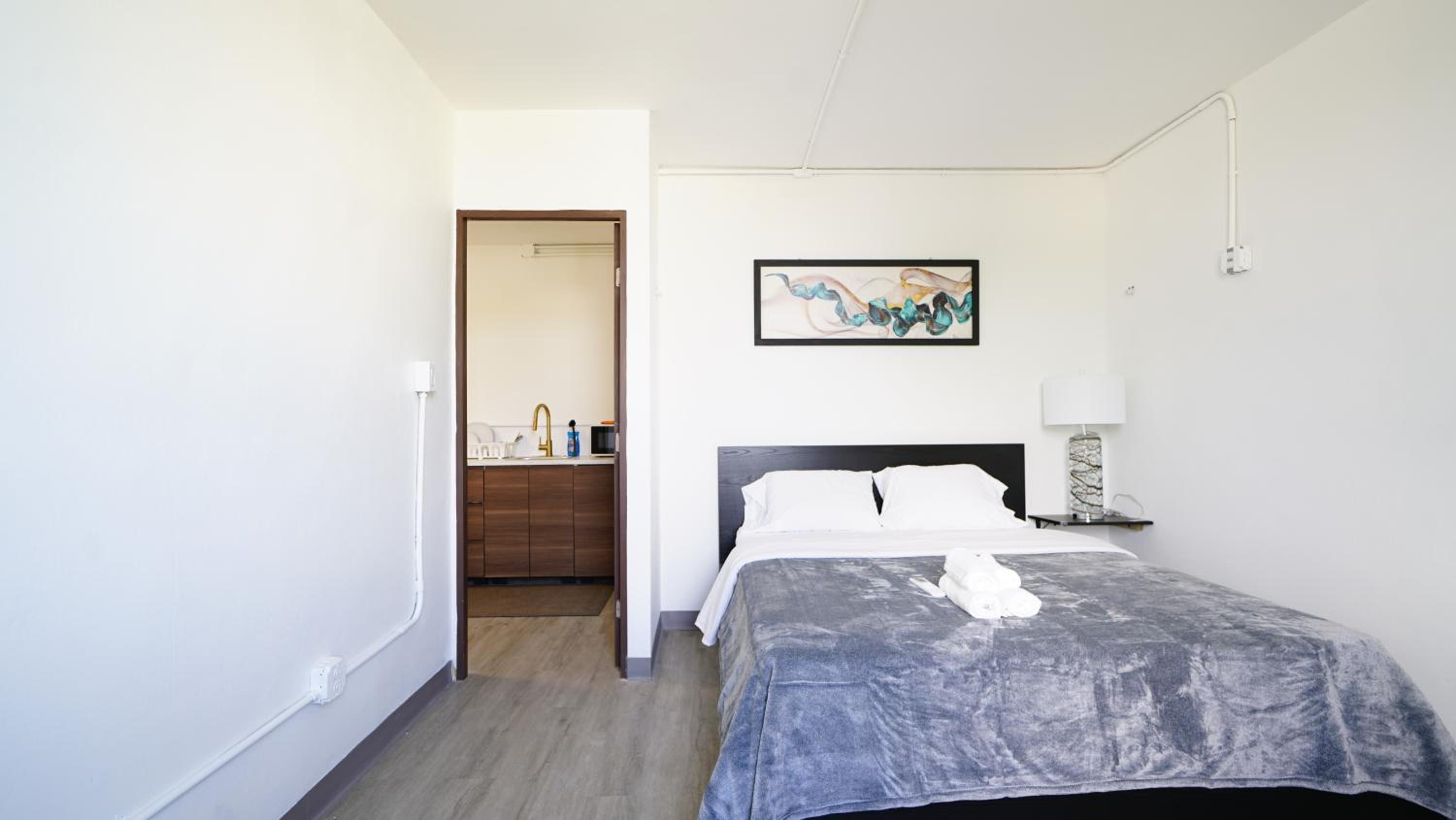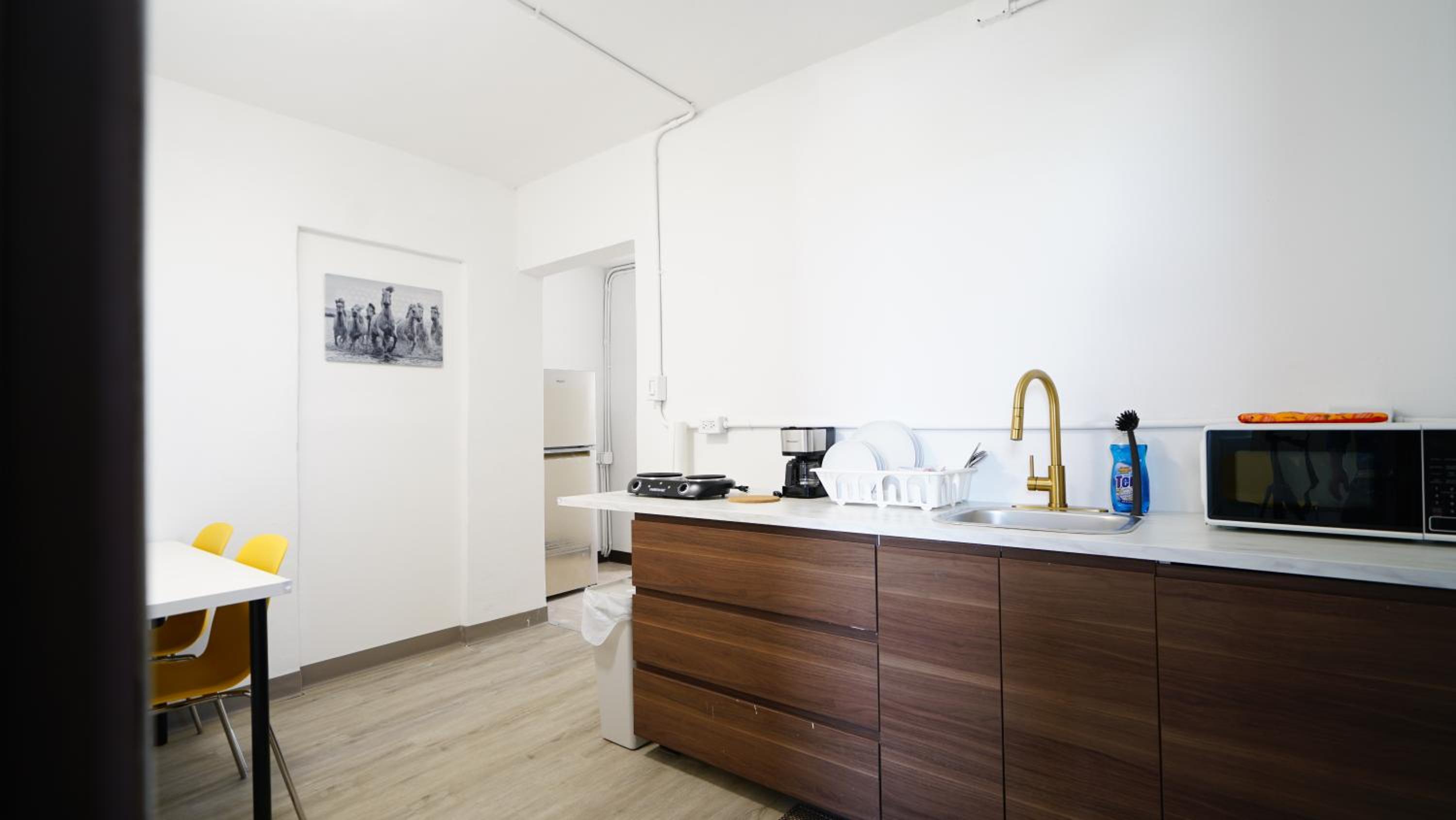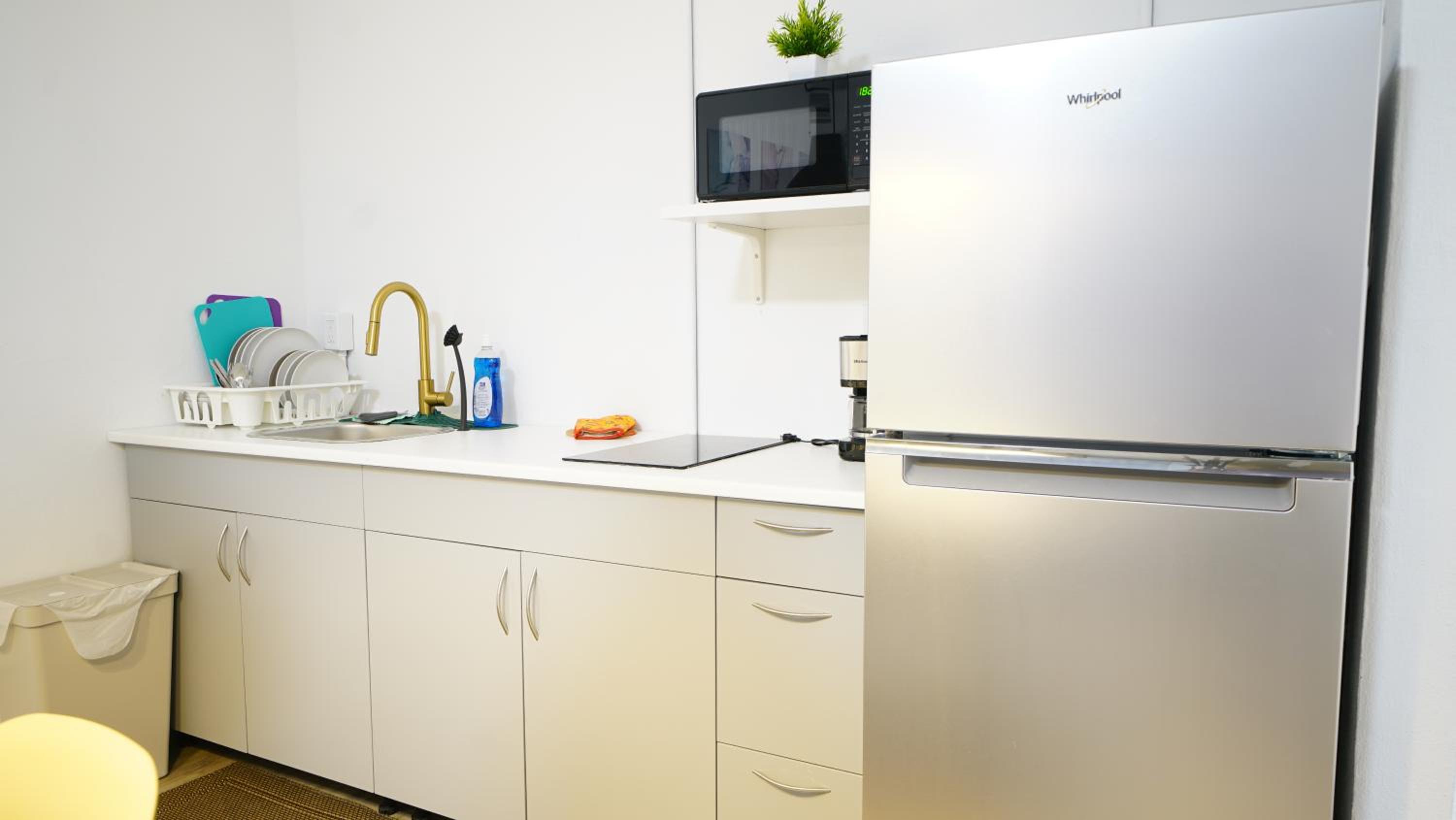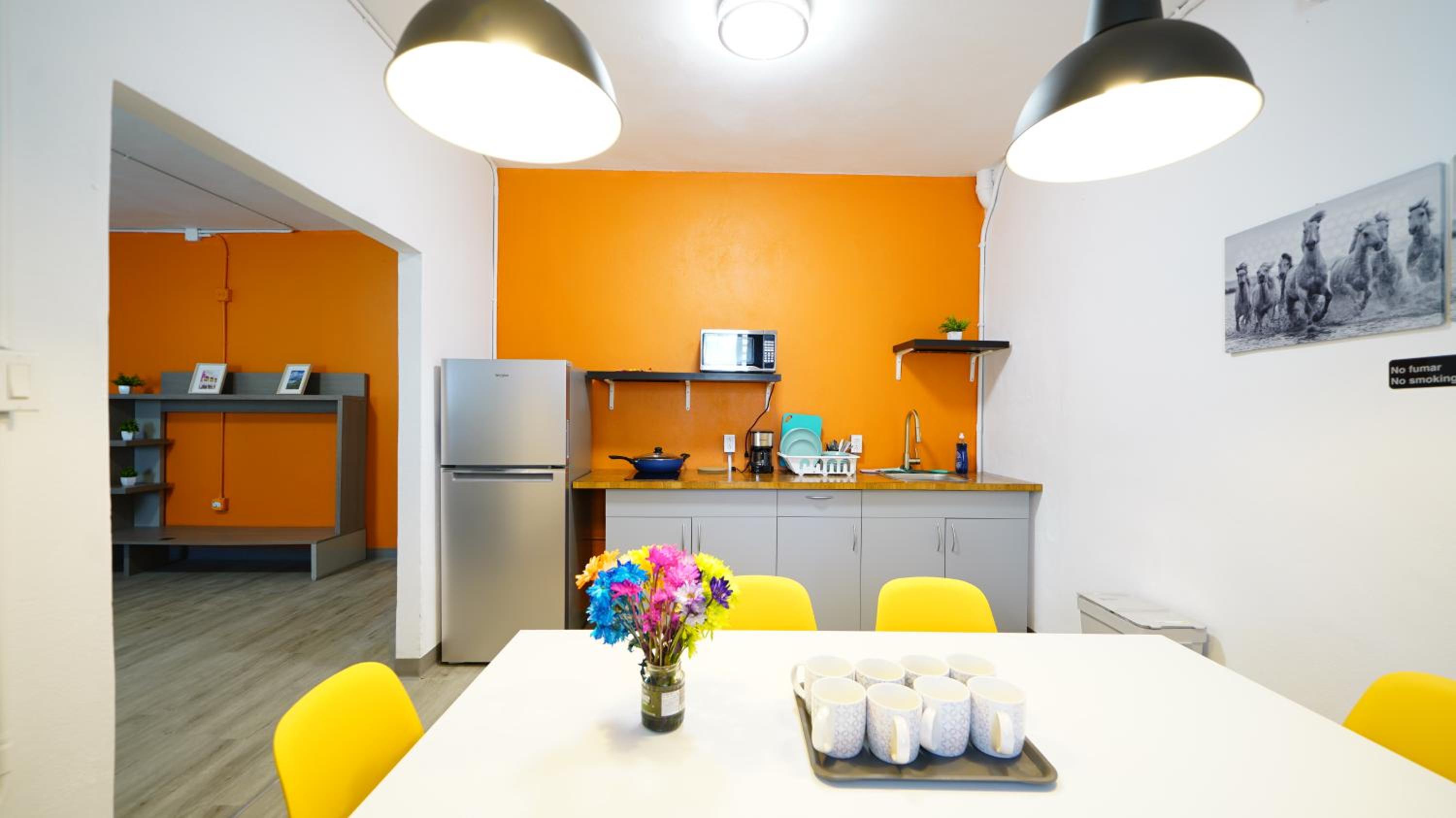 Good price if you’re prepared to climb 3 flights of stairs with your luggage. The kitchenette , with full sized fridge, was clean & had enough cooking supplies if needed. Right down the street was a bakery/cafe (Vistamar). Further east was a grocery store. Both businesses are in walking distance. This Abnb style hotel is about 10 minutes from SJU airport.