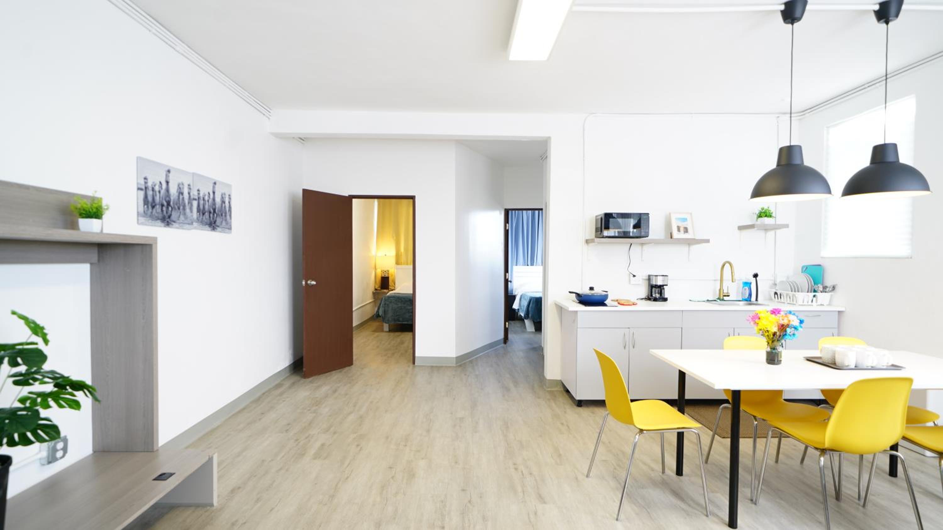 The traffic noise was loud and the blinds did not block out external lights, especially in the bedroom on the nonstreet side. Ear plugs were provided in each bedroom to help mitigate the street noise.