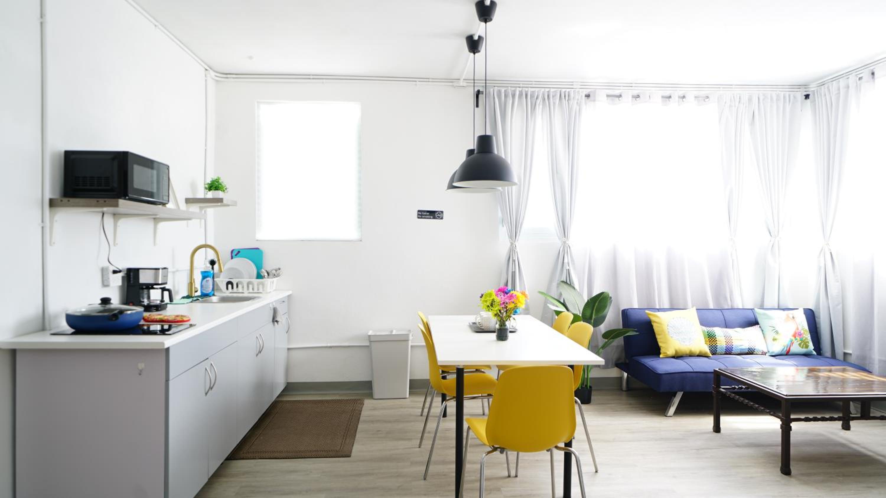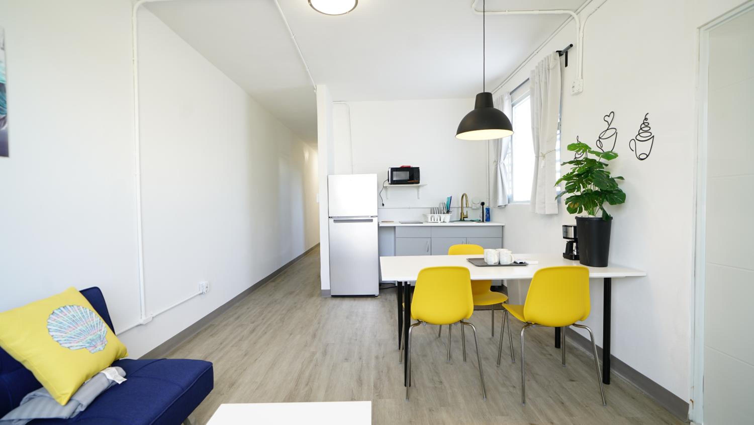Enjoy the convenience of free private parking, full-day security, and complimentary WiFi during your stay. Each air-conditioned unit boasts a fully equipped kitchen, perfect for preparing your own meals.