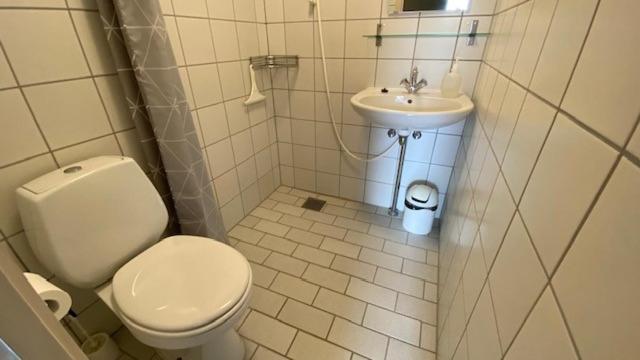 Badeværelset kunne godt trænge til en rengøring, men ellers var det fint