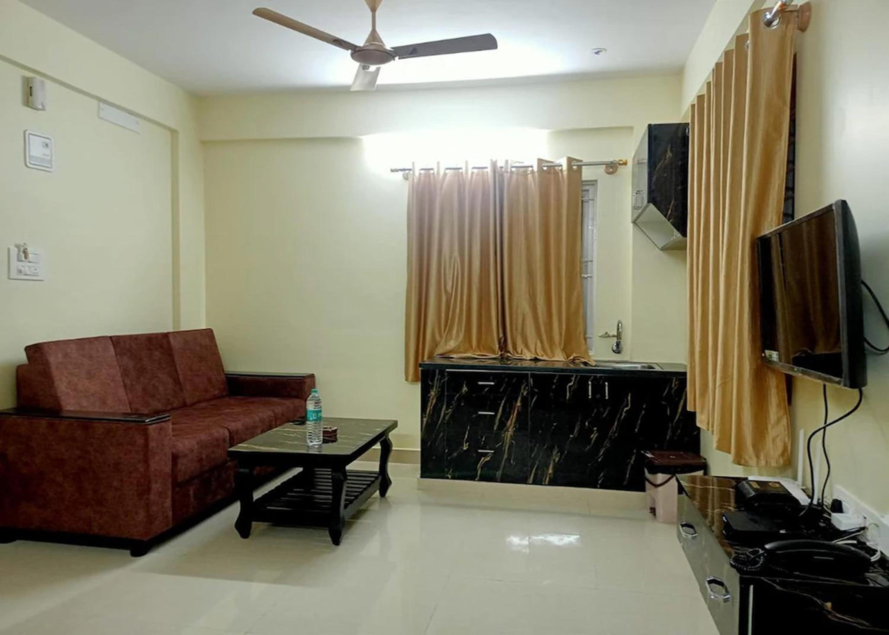The wi-fi worked intermittently during the first couple of days but the problem was rectified and from then on it worked smoothly. Unfortunately, there is no refrigerator in the room but this could be rectified easily as there is a power outlet next to the kitchen bench and the room (#102) has enough space for a mid sized refrigerator to fit.