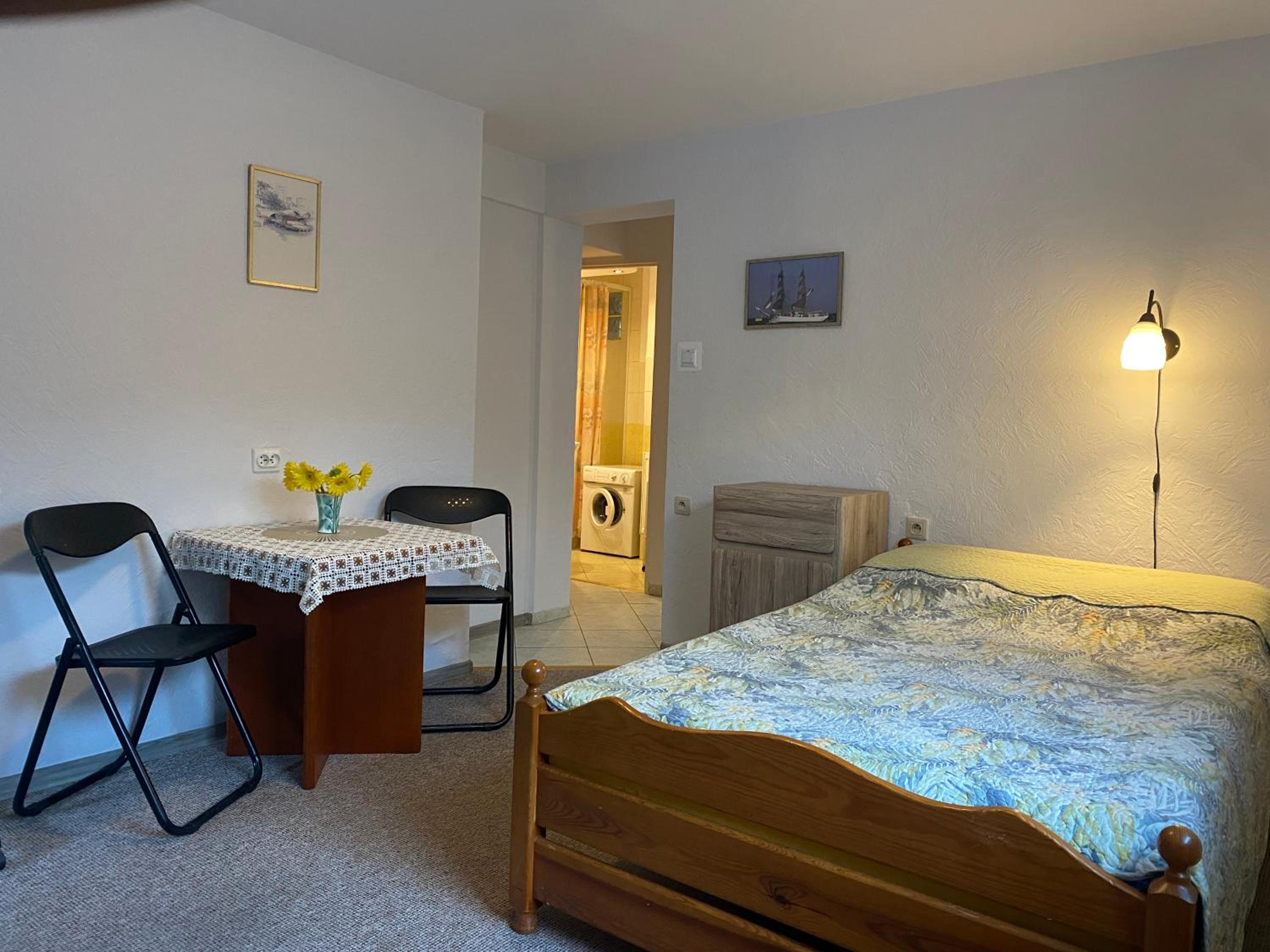 Very small bathroom, showering corner 50x50cm without closing doors = water was everywhere. Old kitchen without microwave own. Beds with old matraces. The owner doesnt speak English.