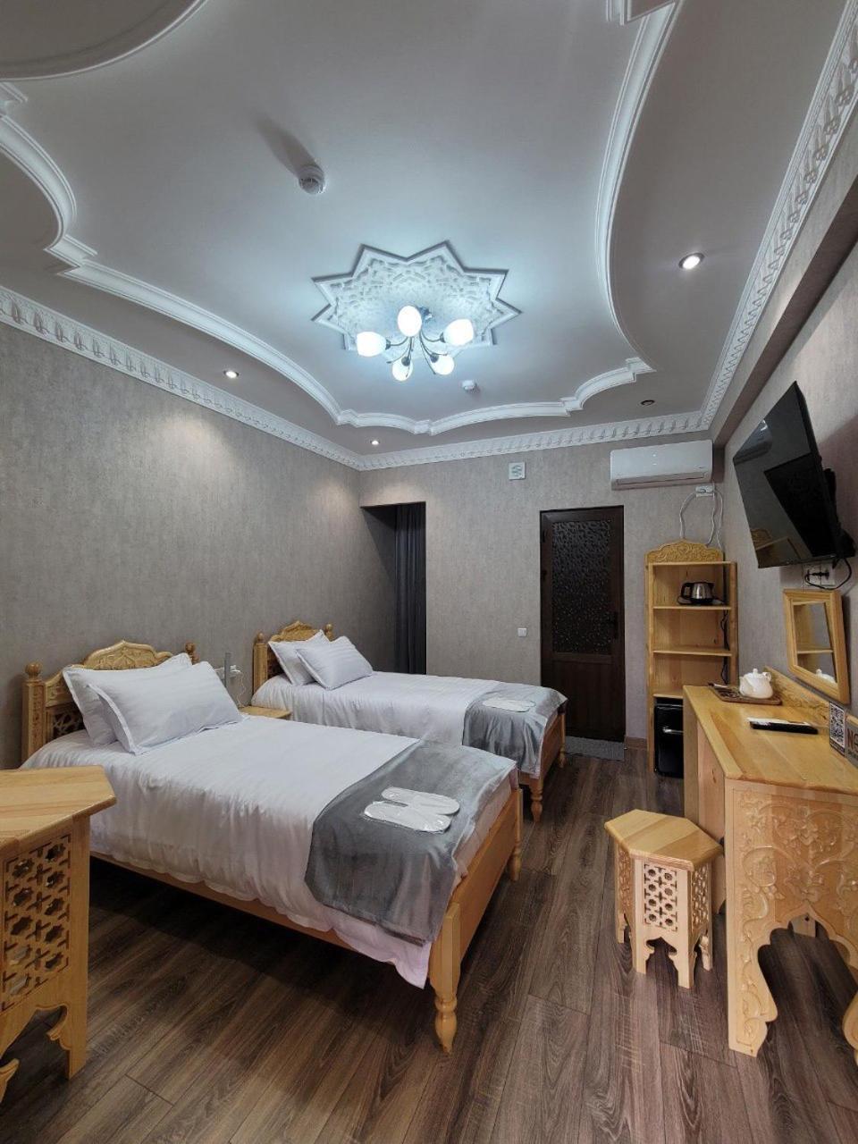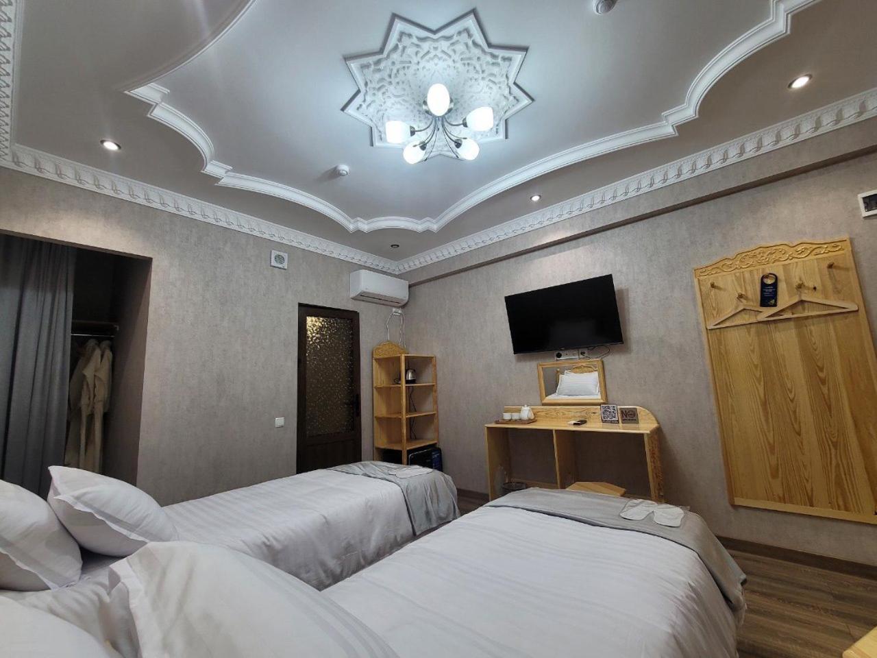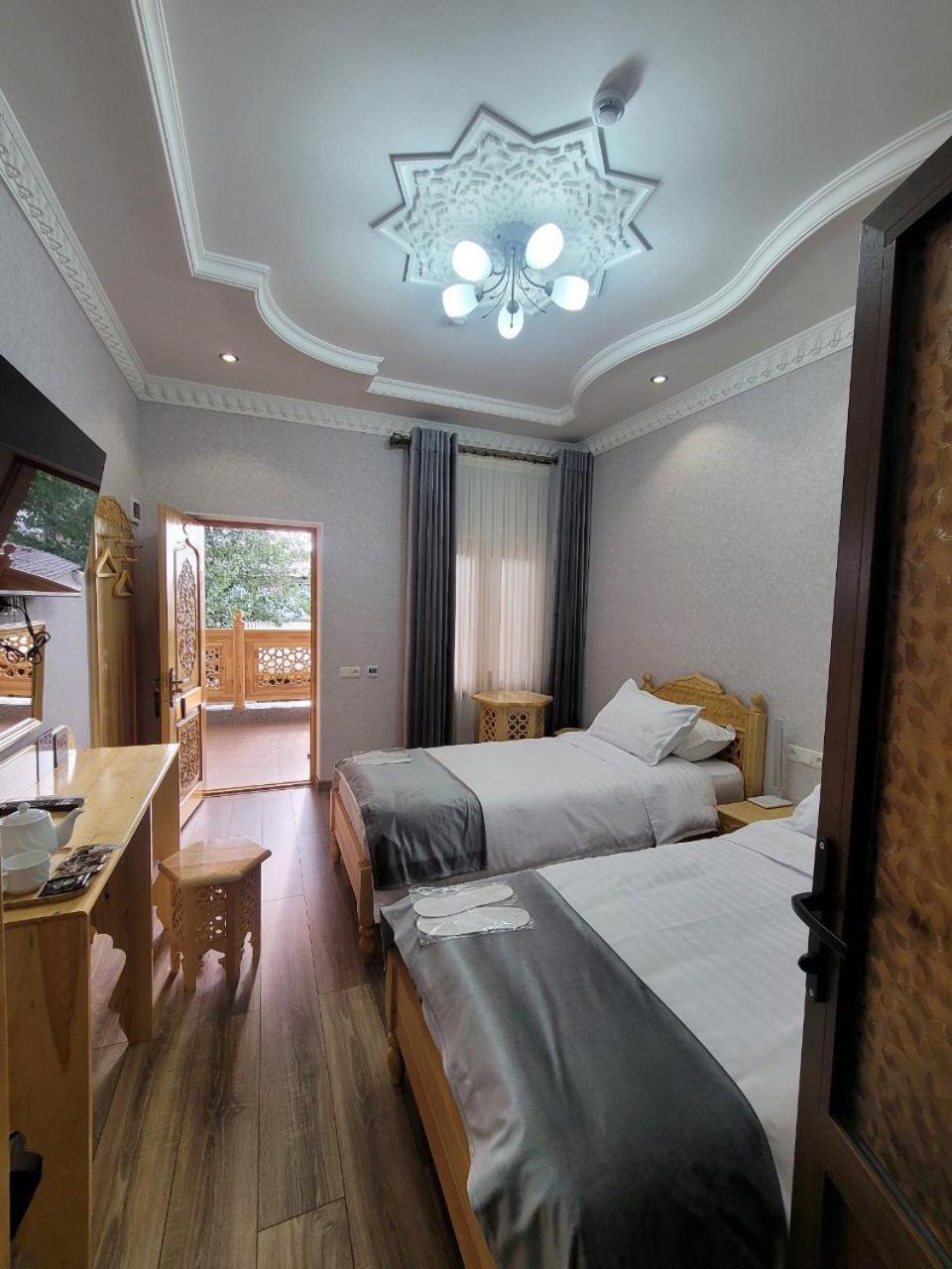 Sehr freundliches und hilfsbereites Personal. Hotel liegt einen kurzen Spaziergang vom Registan entfernt in einer ruhigen Seitenstraße. Wunderschöner Innenhof