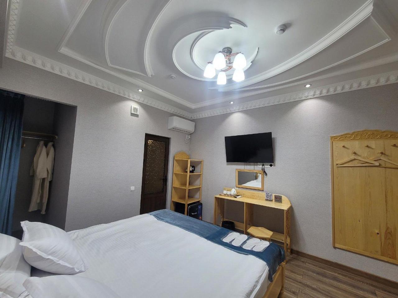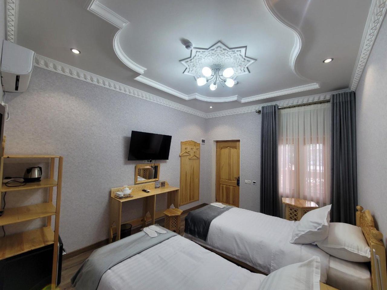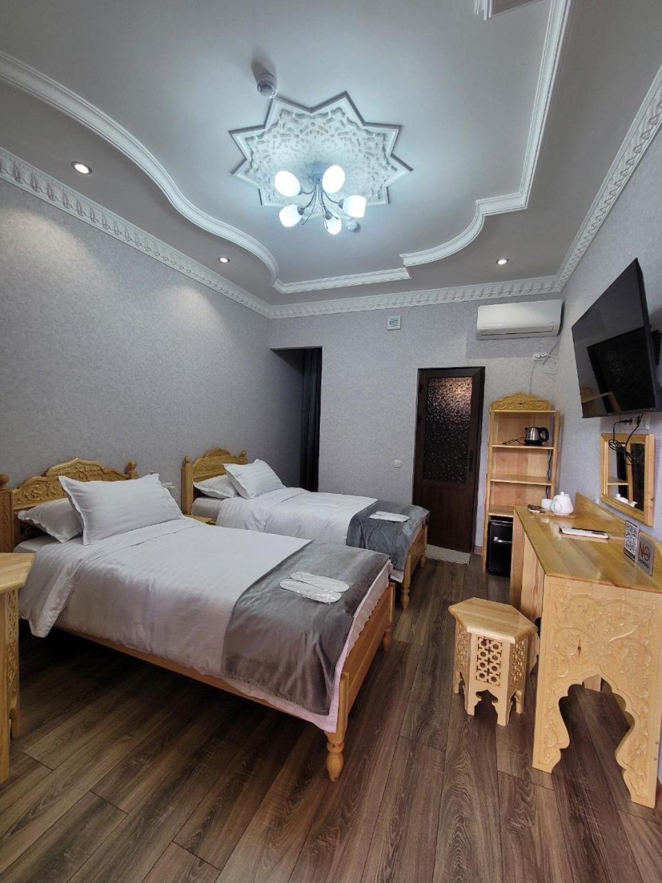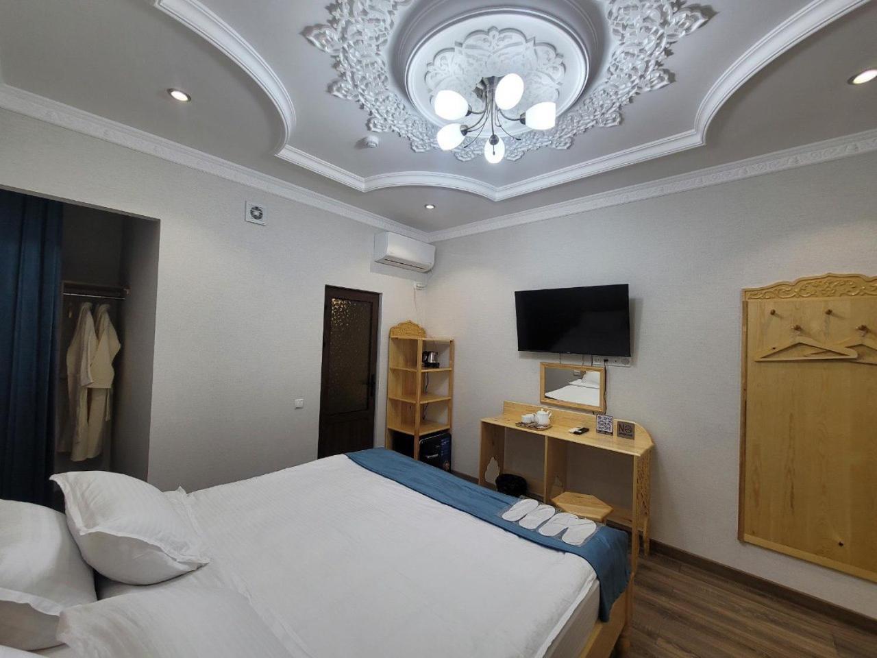 Sehr freundliches und hilfsbereites Personal. Hotel liegt einen kurzen Spaziergang vom Registan entfernt in einer ruhigen Seitenstraße. Wunderschöner Innenhof