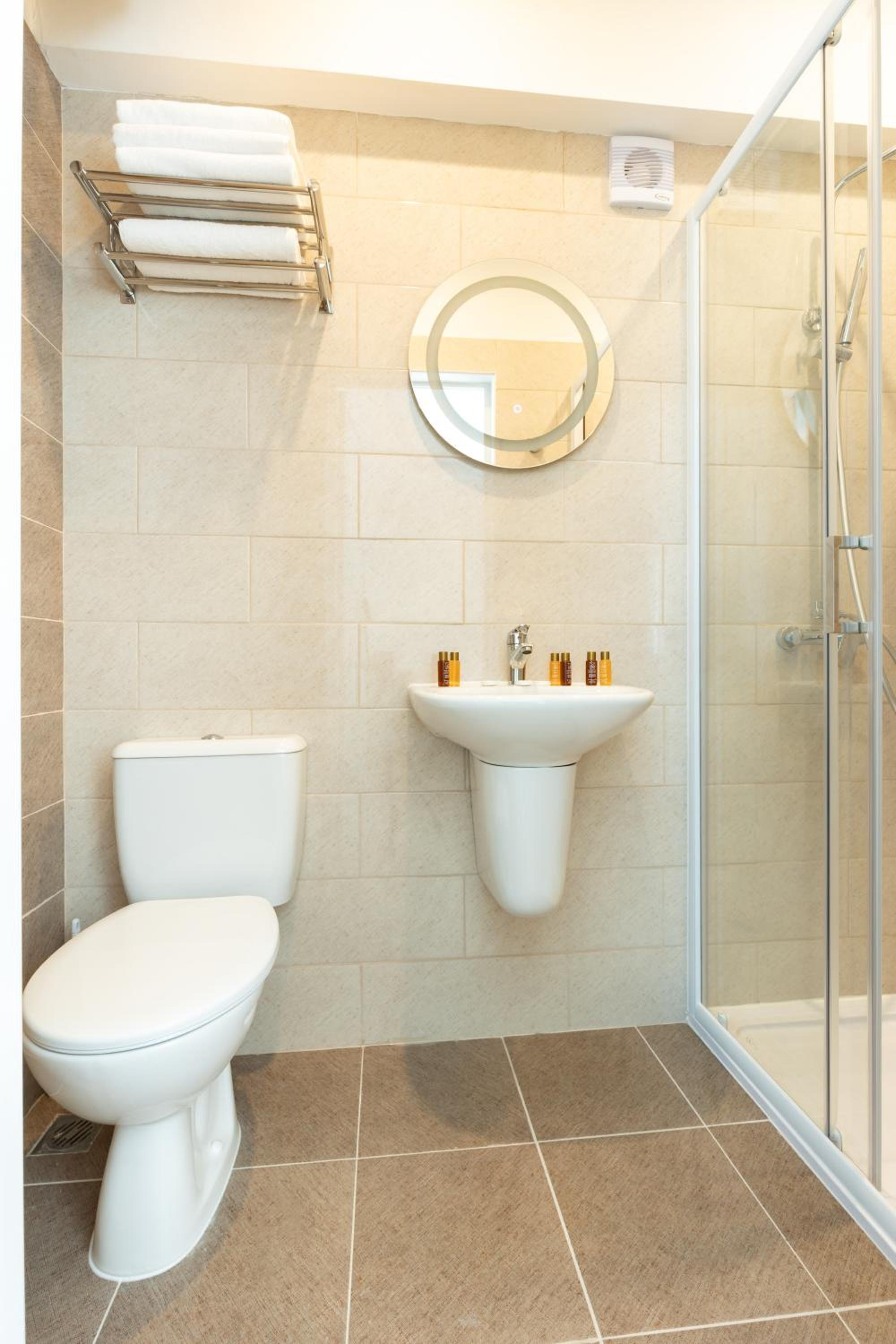 Shower needs a good scrub to remove yellow stains in the corners