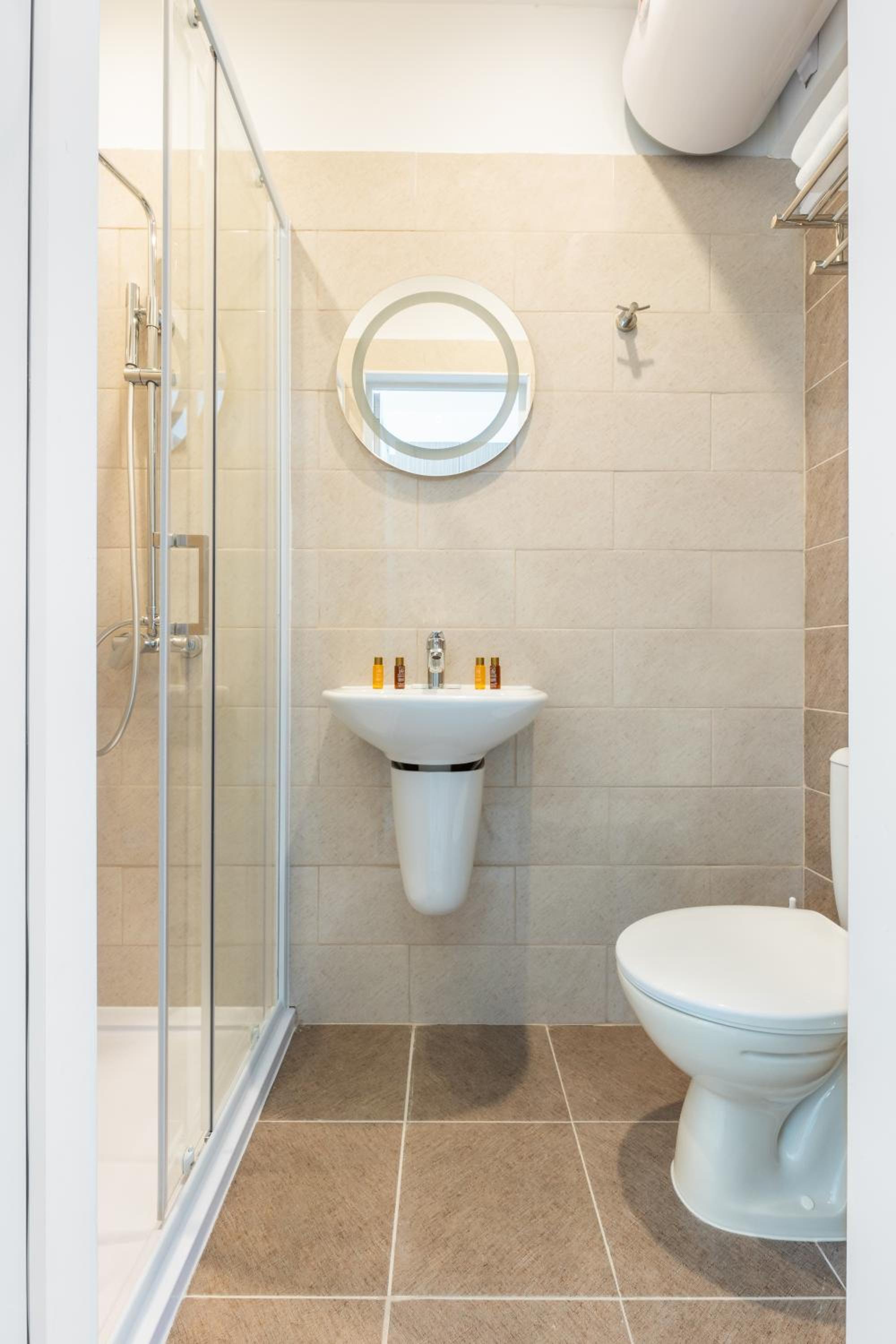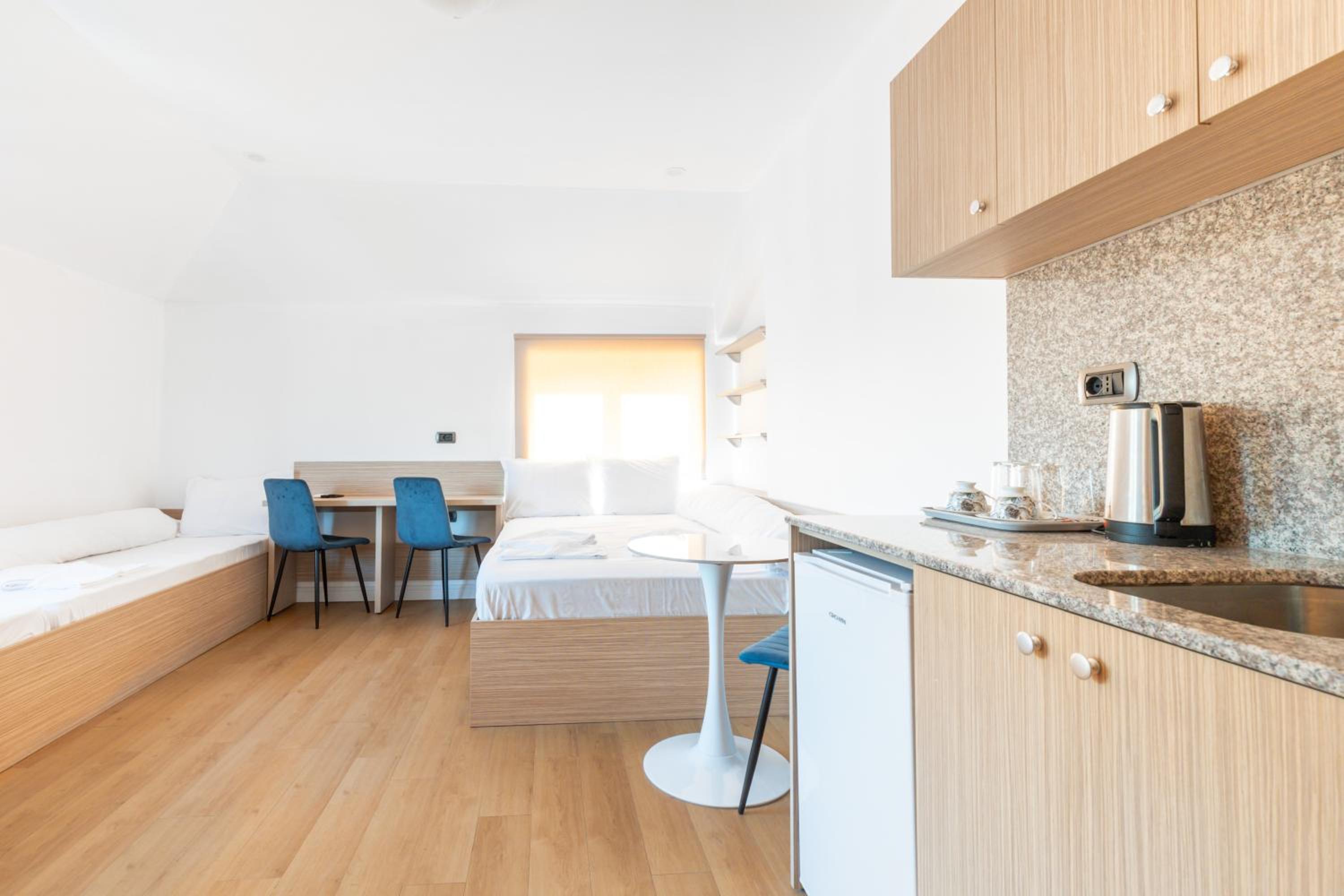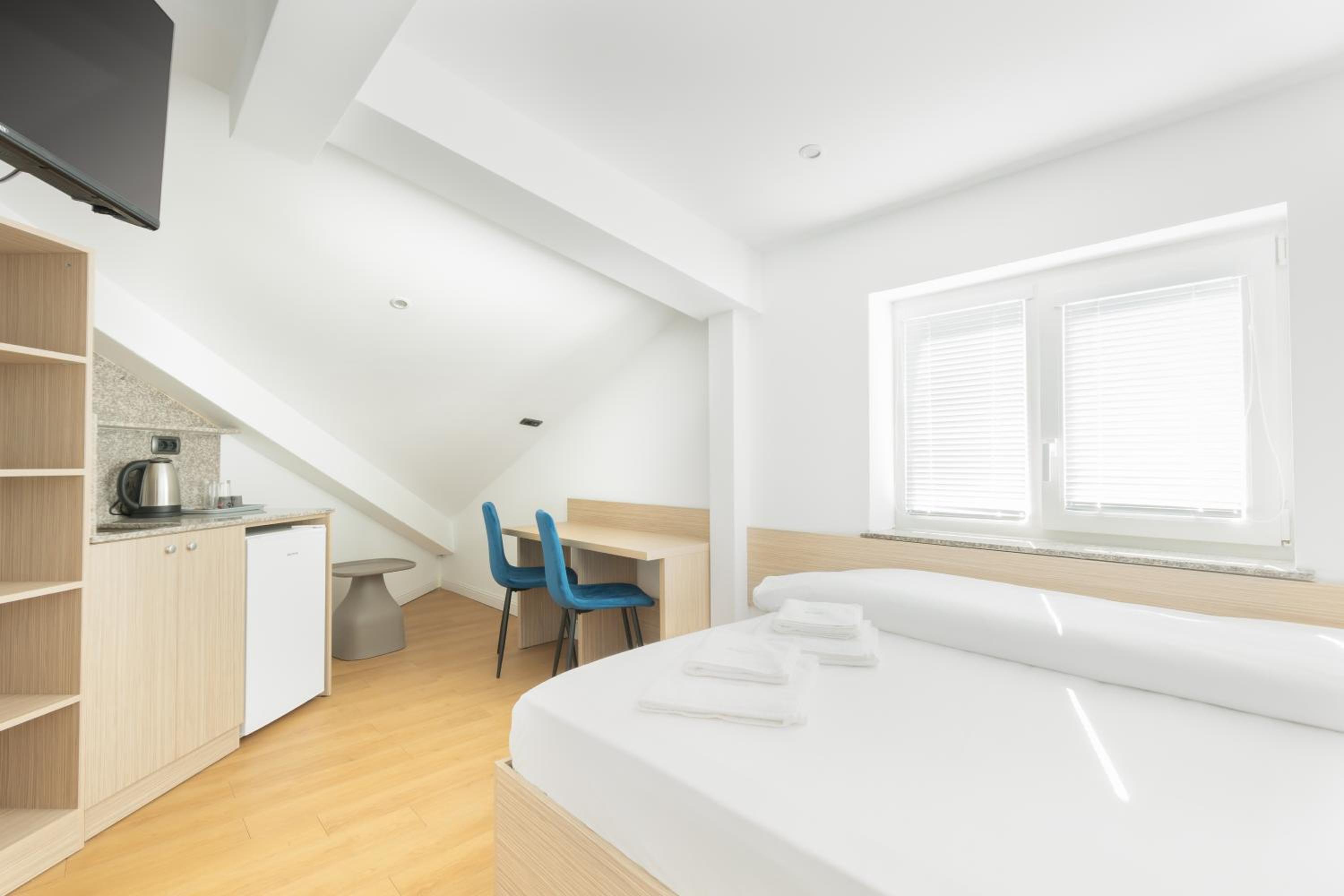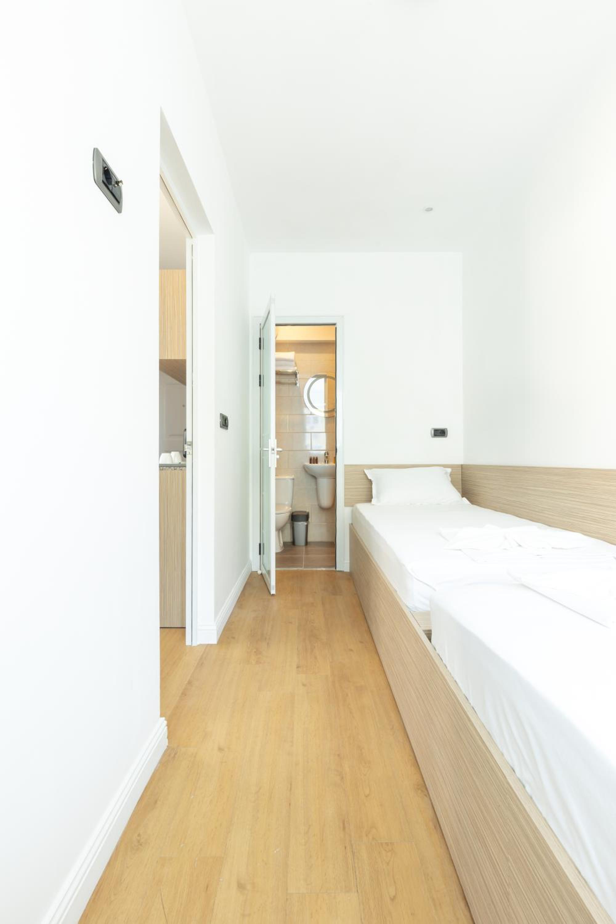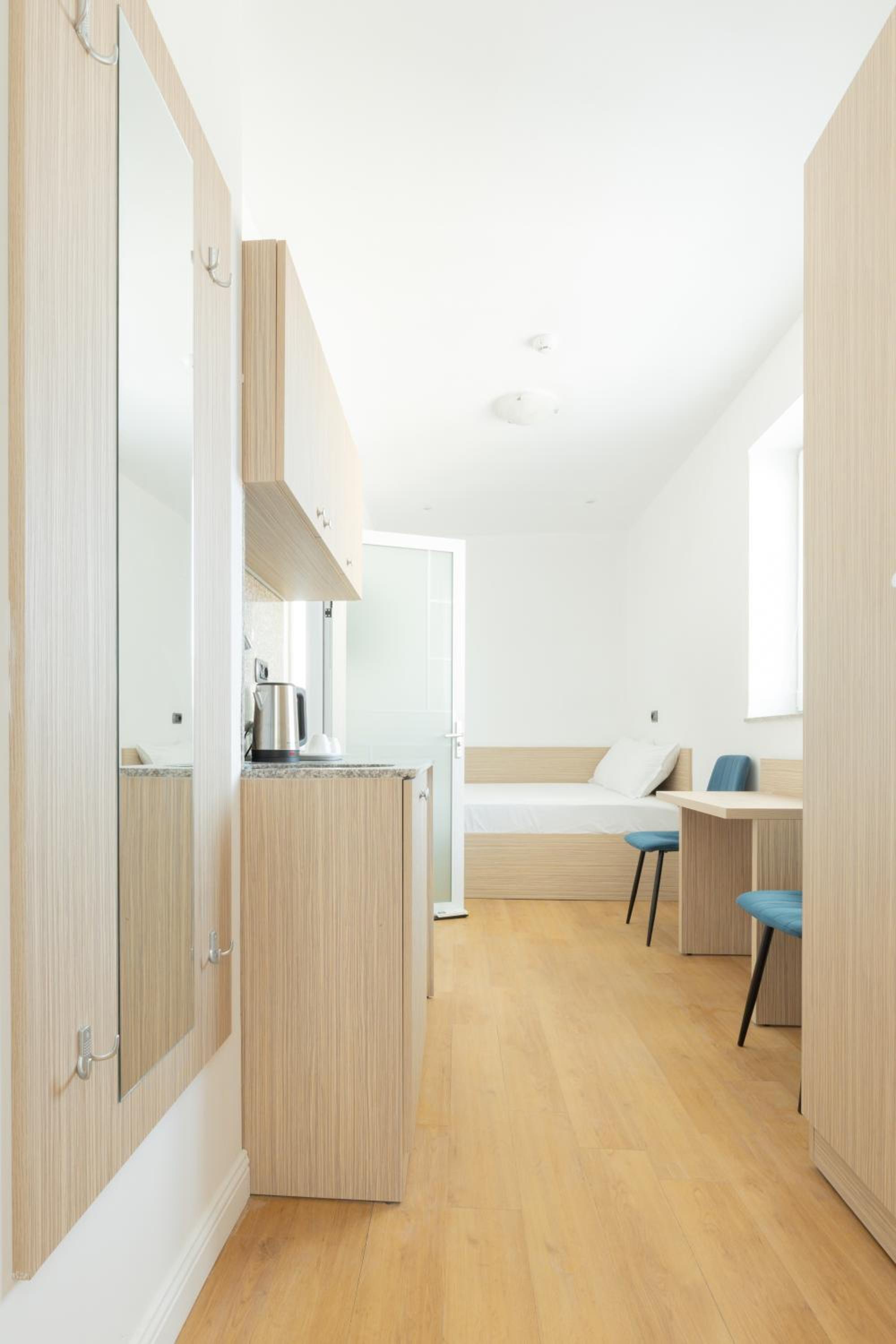 Unfortunately that was one of the worst accommodations that I've ever had. Tiny room( you don't have place for storage and 2 people don't fit comfortably) not true to pictures. No hot water, no heating. There is a boiler that provides just a tiny bit of warm water.