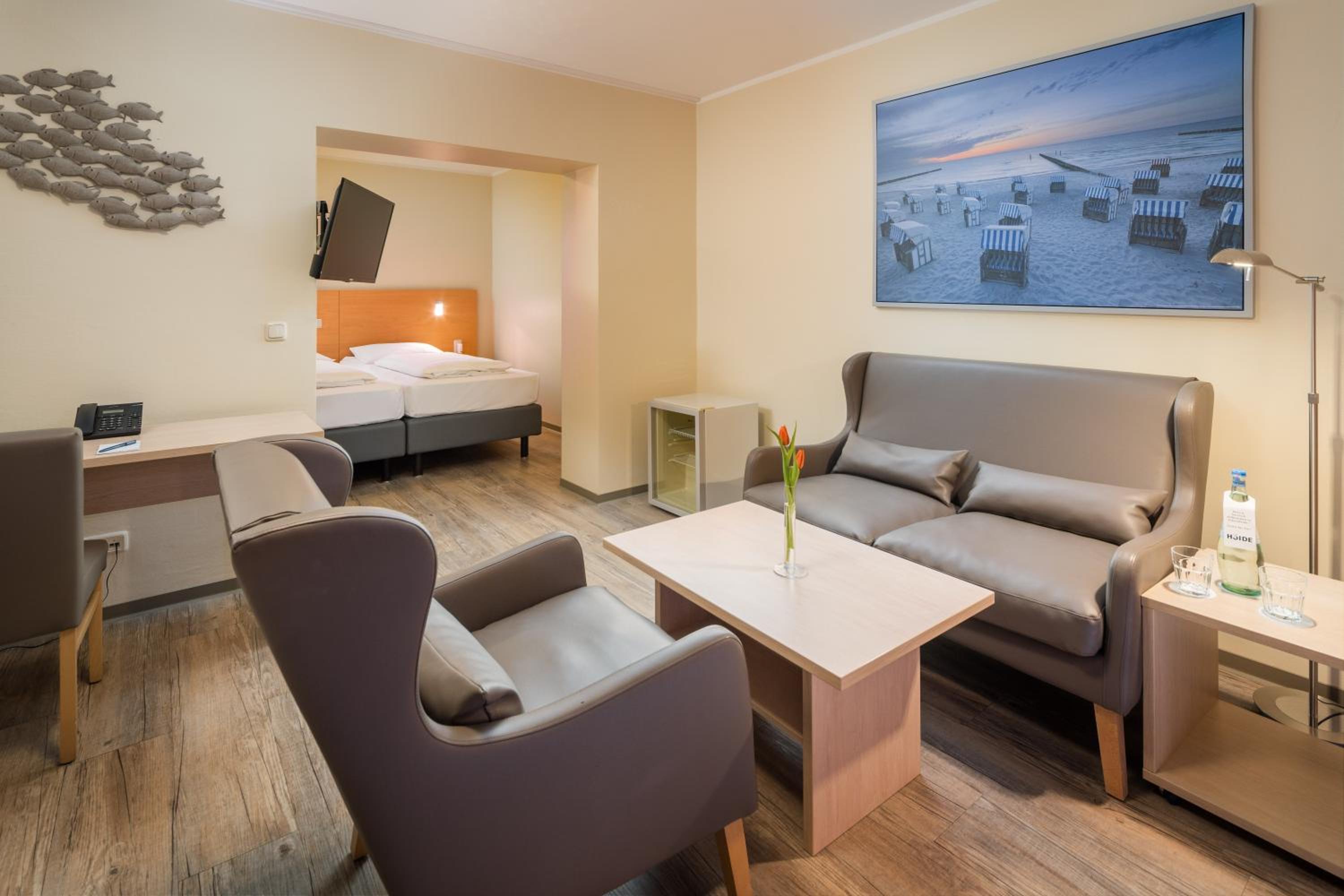 Wir waren schon zum zweiten Mal hier und fanden es wieder sehr schön. Zimmer im alten Teil des Hotel. Erdgeschoss mit kleiner Terrasse. Über diese laufen allerdings die Gäste der anderen Zimmer. Die Betten waren sehr bequem, das Sofa allerdings nicht so. Am Hotel läuft die Bahnstrecke, aber die ist sehr leise, sodass sie uns nicht gestört hat.