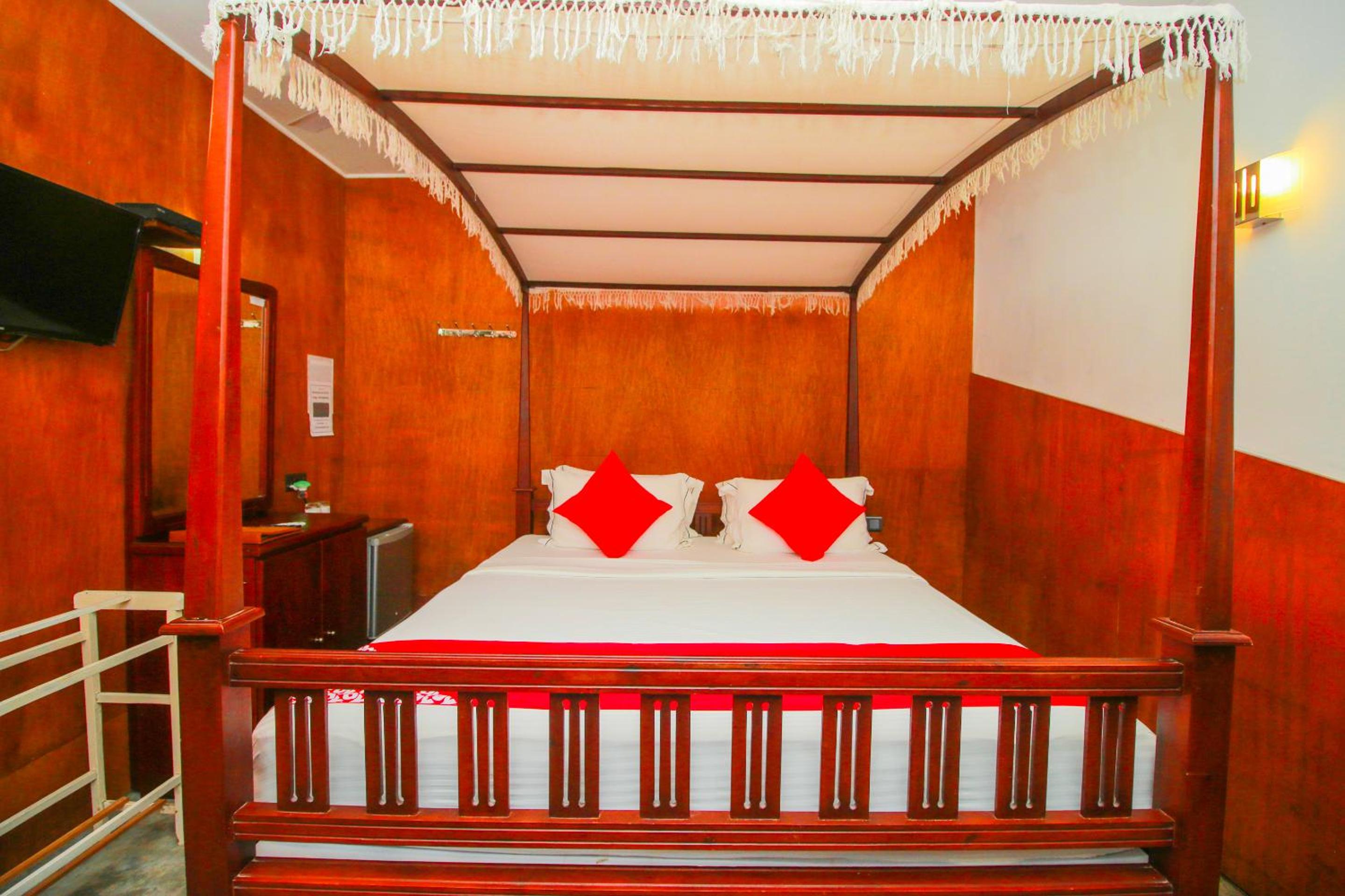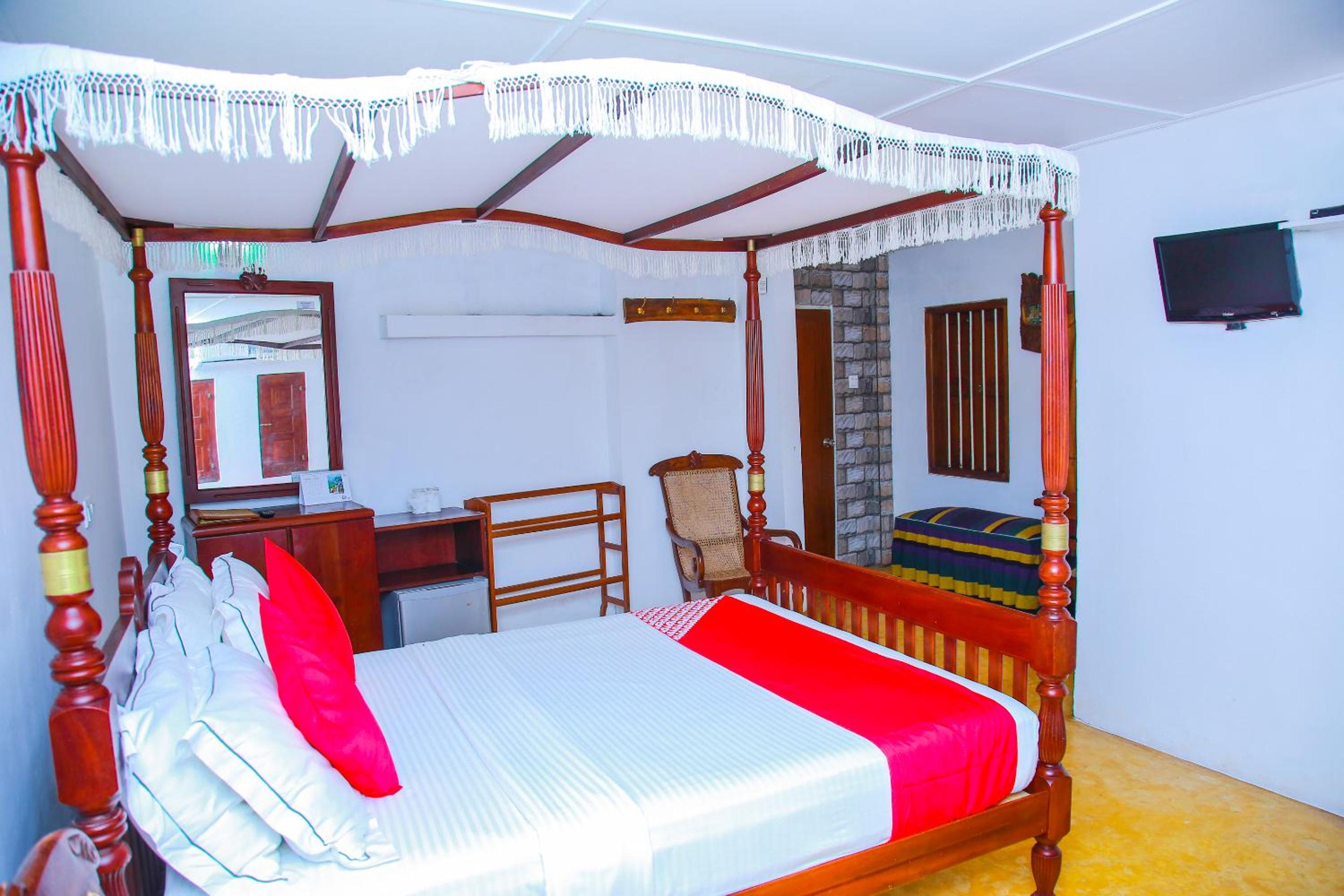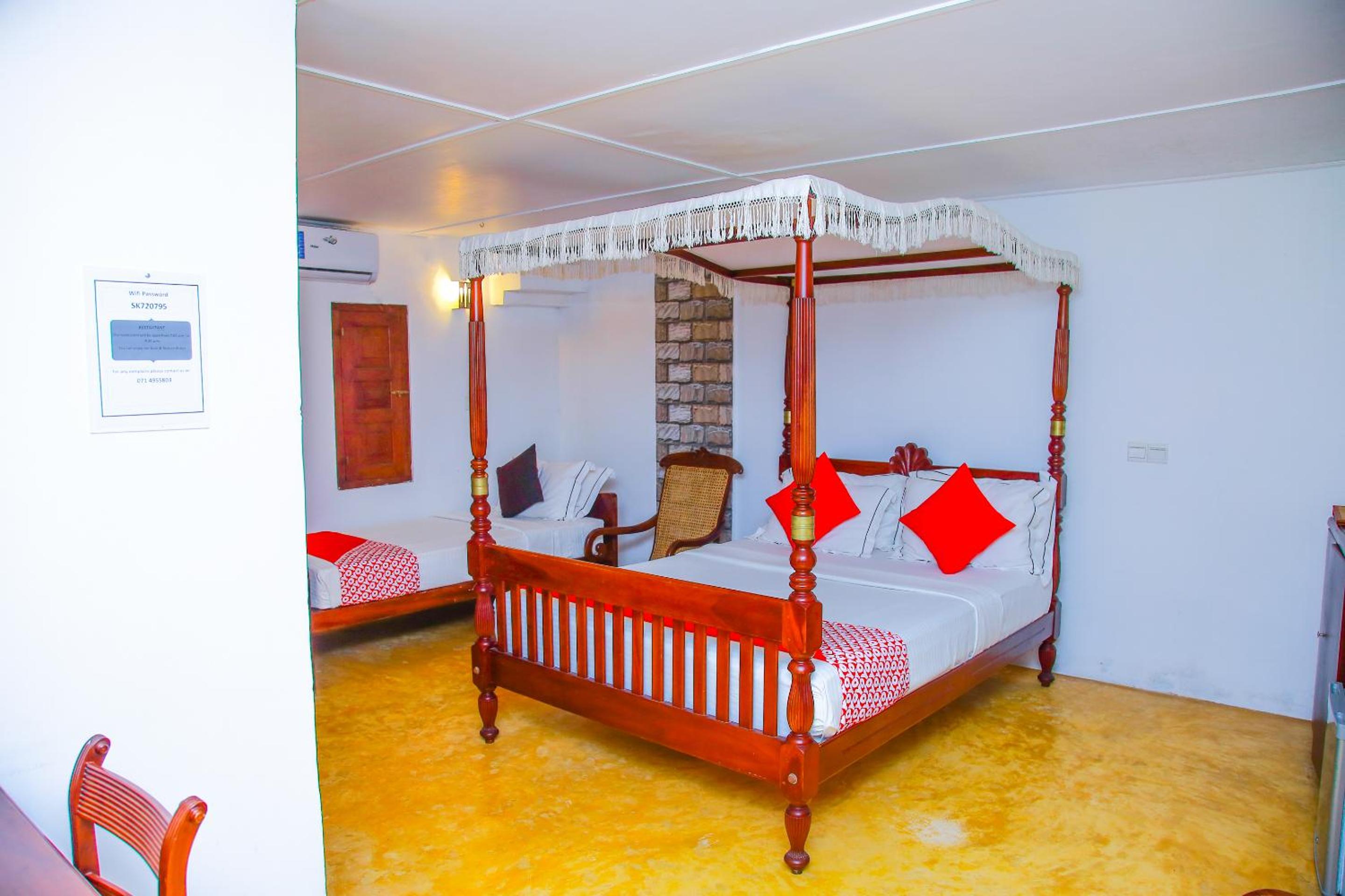 Guests can relax by the outdoor swimming pool or savor local Sri Lankan and Continental dishes at the hotel's restaurant. The property also offers modern amenities such as a flat-screen satellite TV, free Wi-Fi in common areas, and a tour desk for a seamless stay experience.