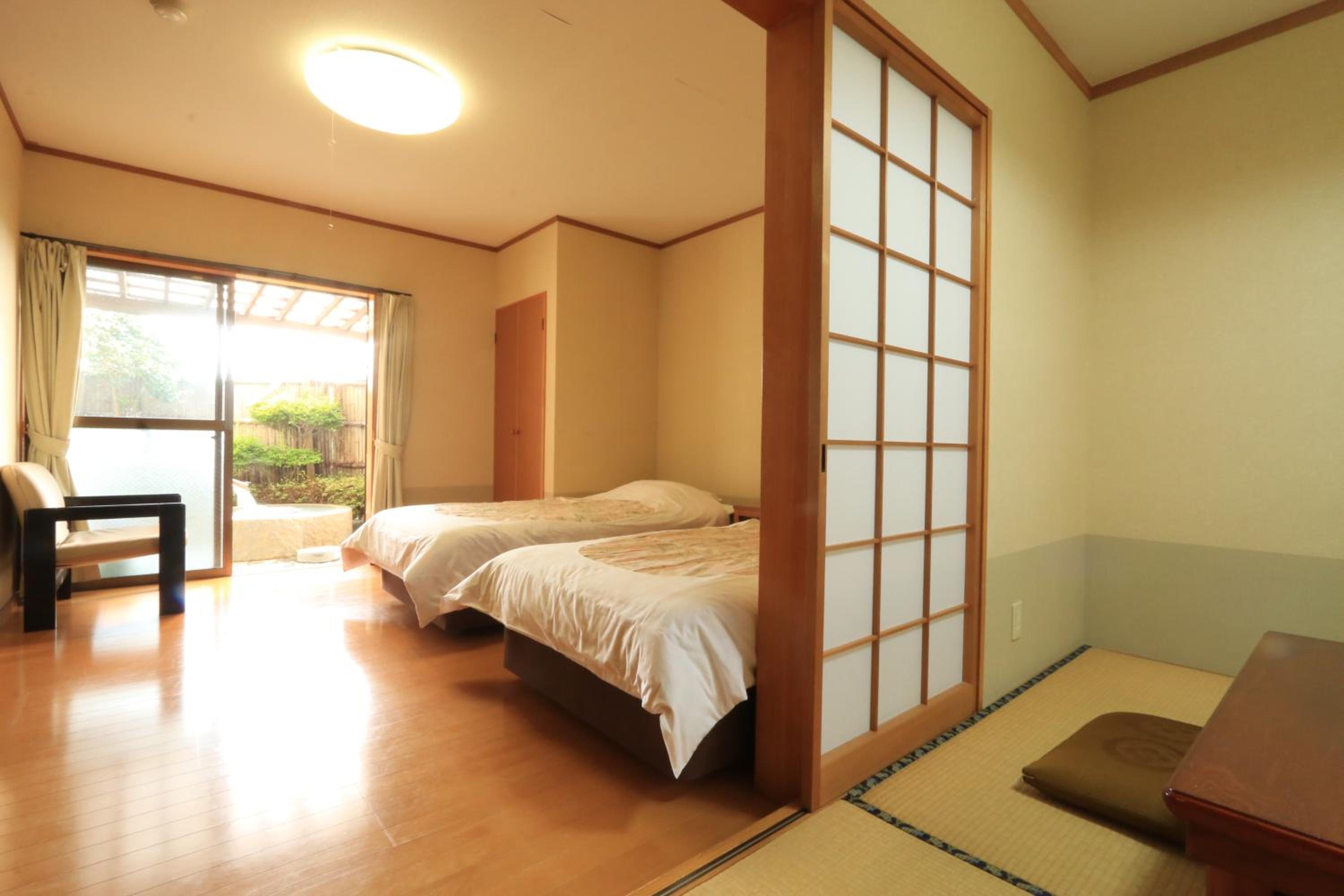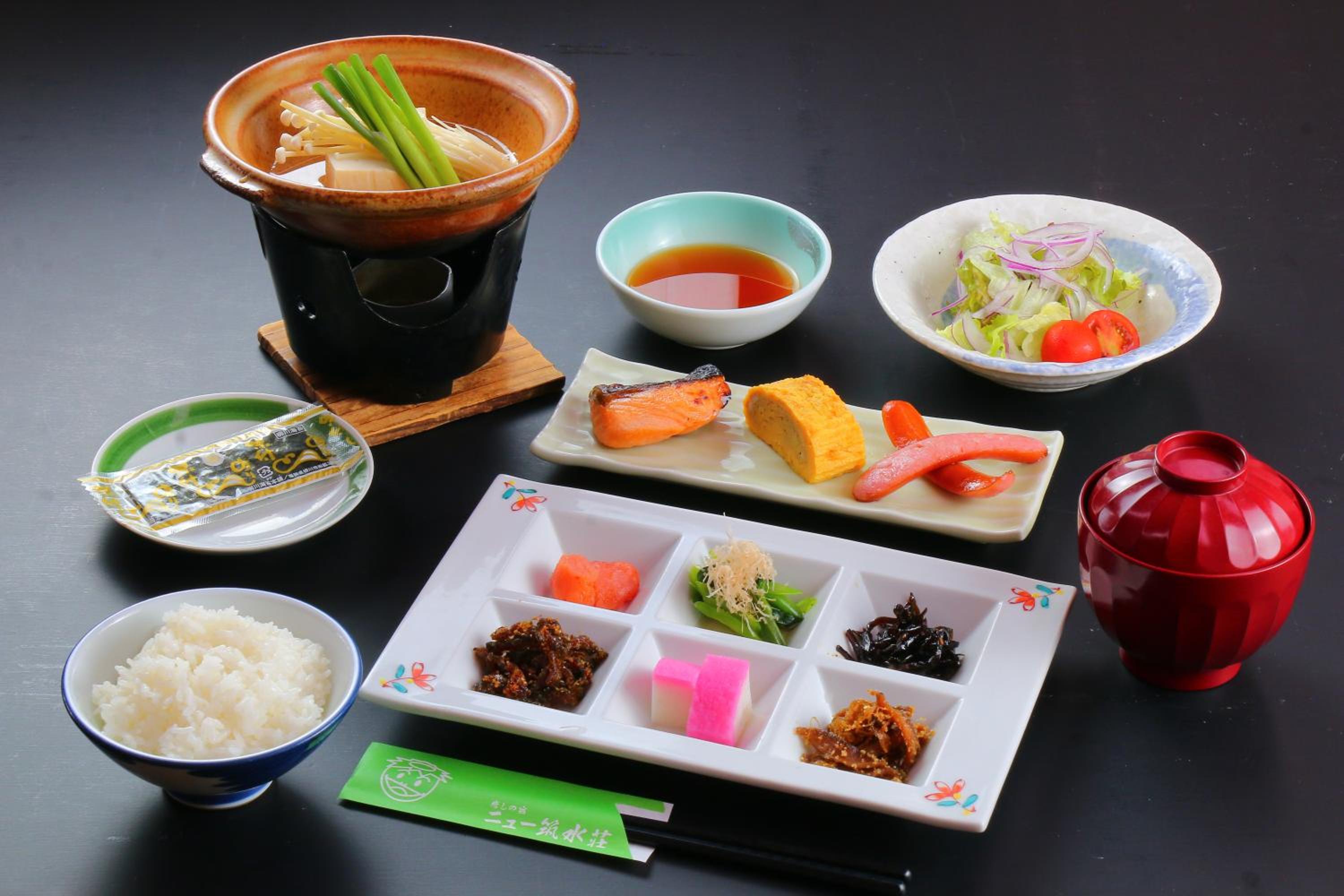 Guests can start their day with a tasty Asian breakfast at New Chikusuisou, ensuring a fulfilling and enjoyable stay in Ukiha.