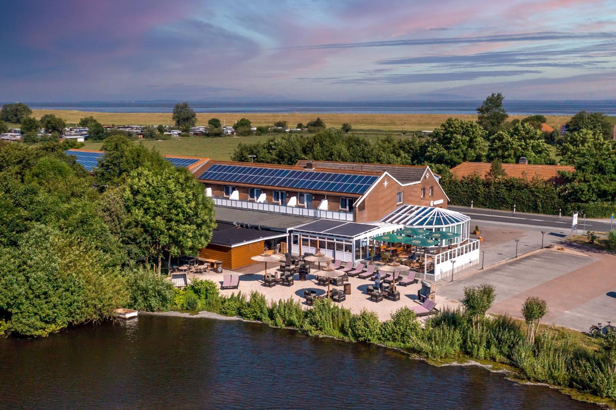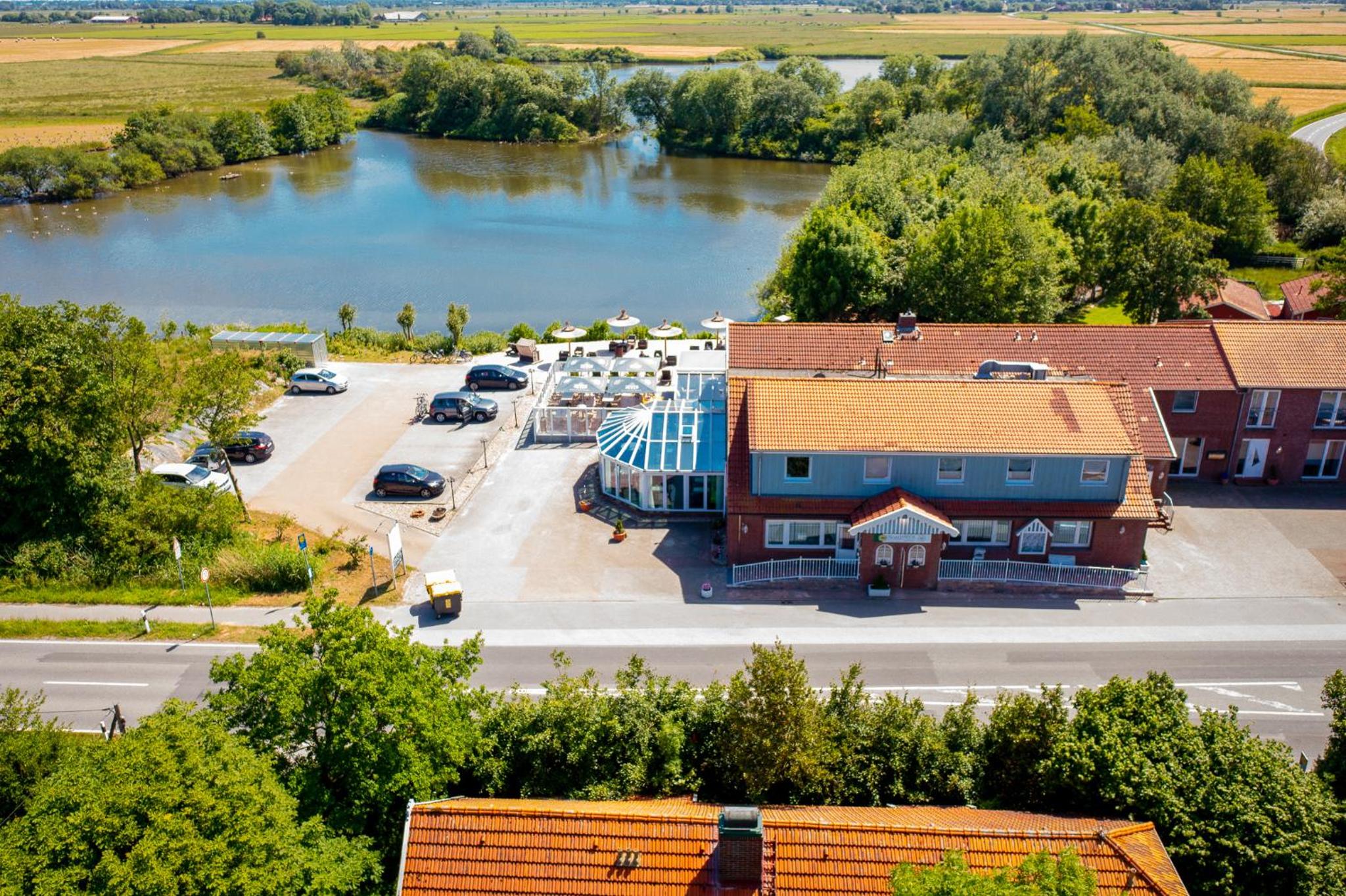 Lage des Hotels gut, 5 Minuten zu Fuß bis zum Deich, Fahrradwege gut ausgebaut, kleiner See am Hotel lädt im Sommer zum Baden ein