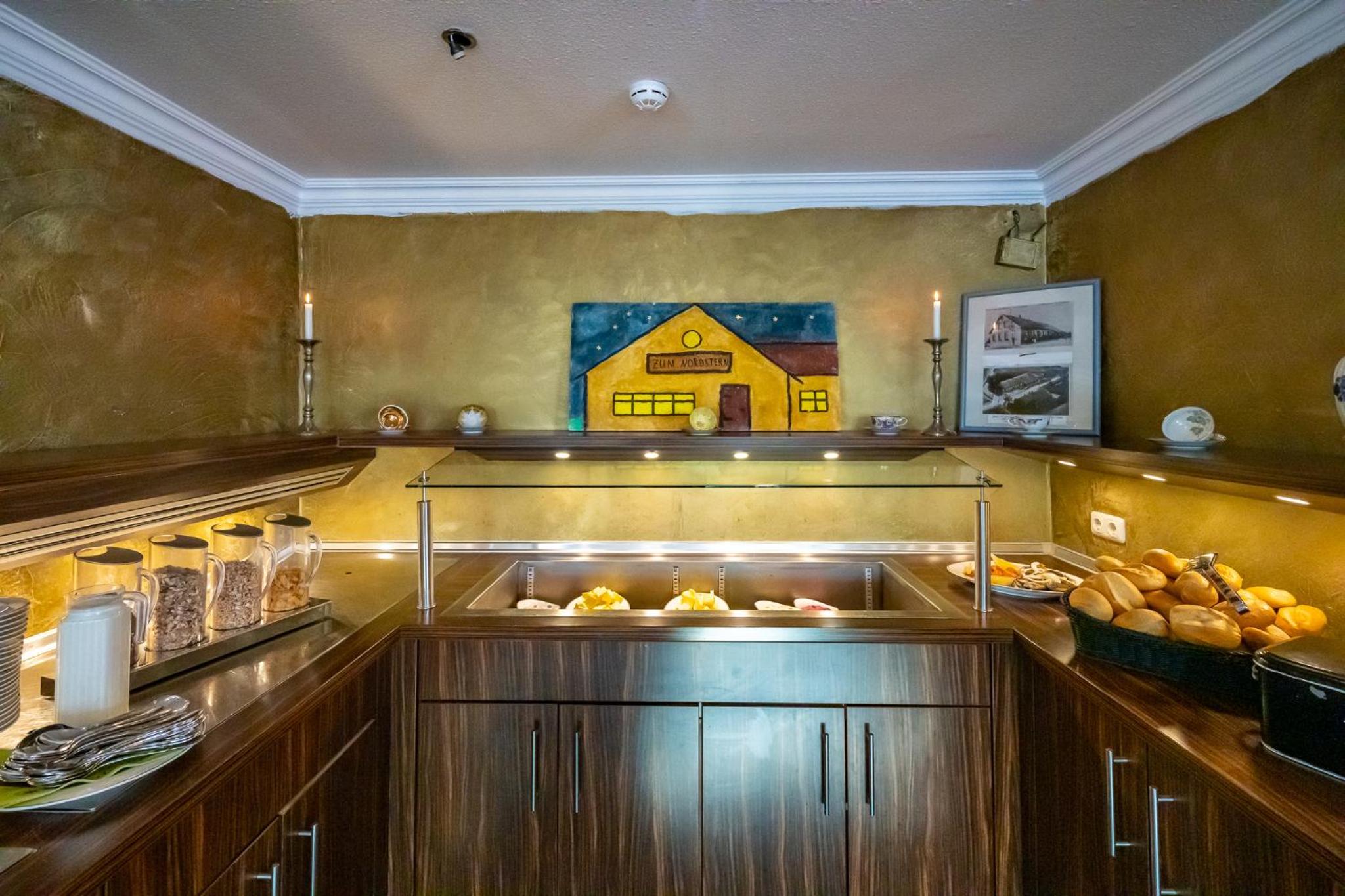 Indulge in the rich breakfast buffet offered daily at Hotel Nordstern, providing a delightful start to your mornings. Additionally, savor the taste of seafood and local dishes at the on-site restaurant, showcasing the best regional flavors for a memorable dining experience.