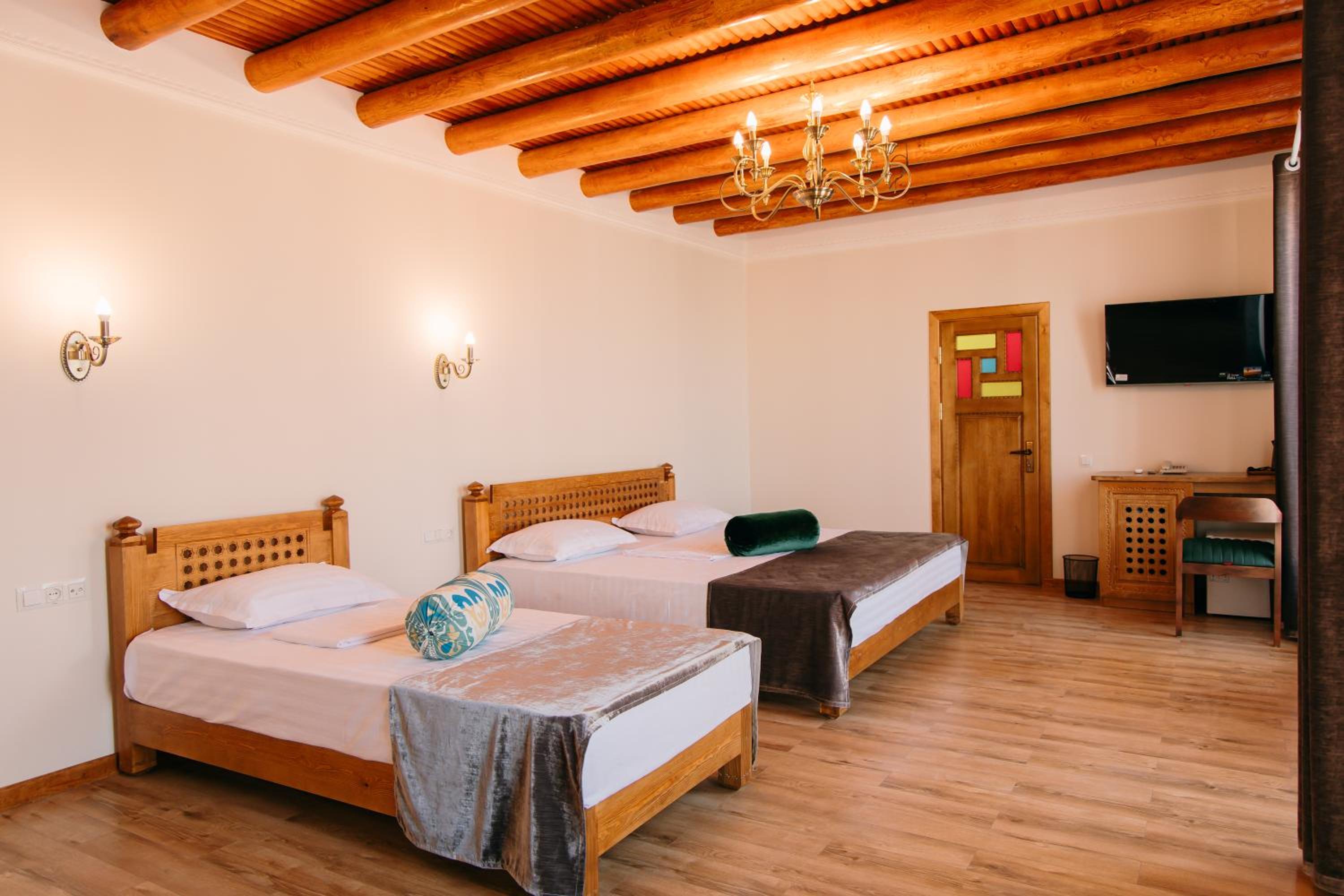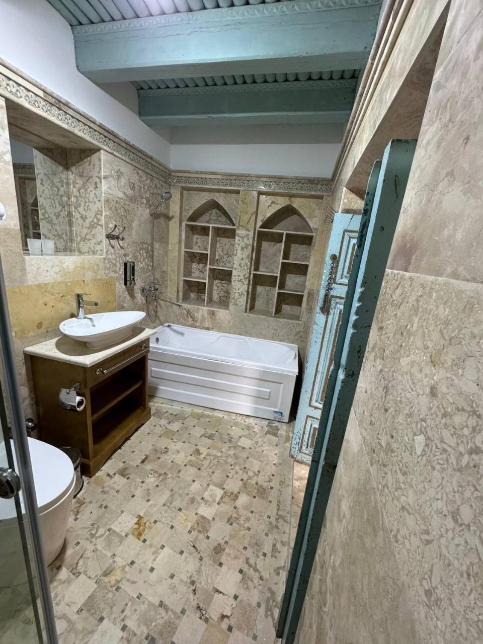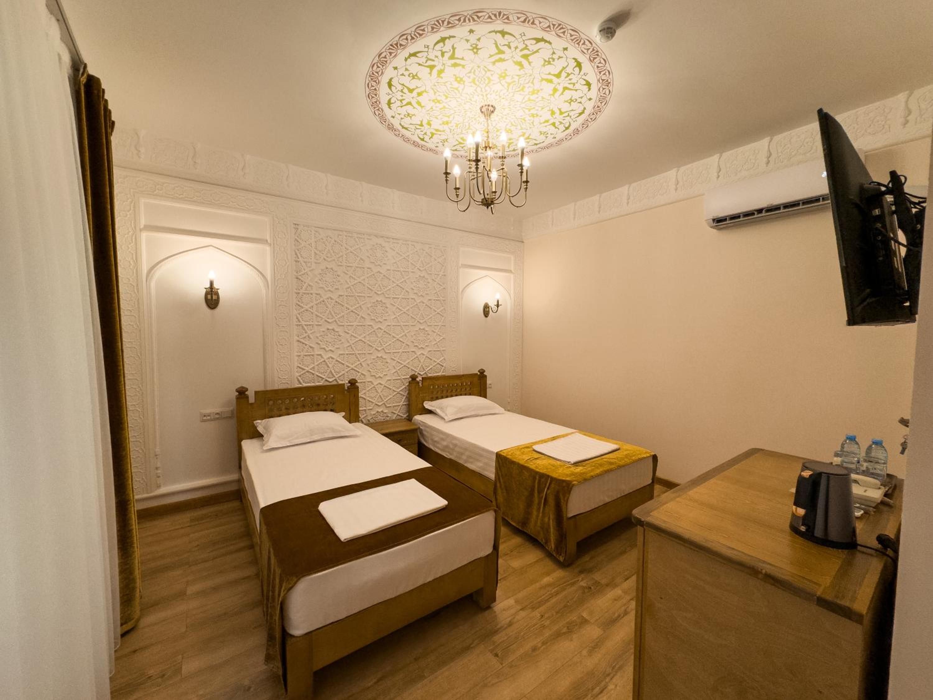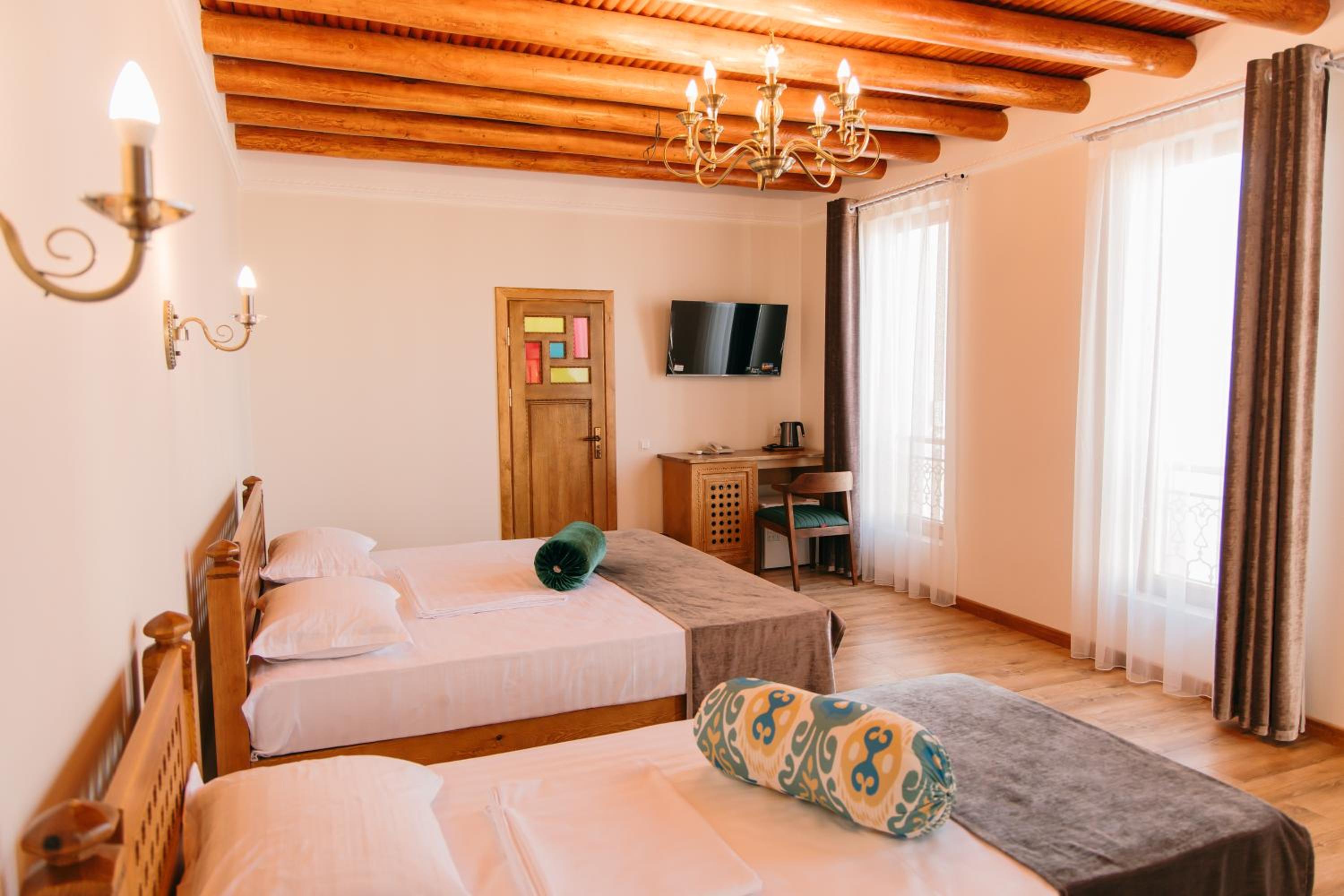 Супер расположение - рядом с достопримечательностями, очень аутентичный номер, кто-то писал про холодно в ванной - абсолютно тепло, в 301 номере по крайней мере. Очень приятный хозяин и ребята на ресепшене. Гостиница - восстановленное здание начала века с сохранившимися несколькими комнатами, которые показывают. Предлагали мастер класс по приготовлению плова во дворе ресторана. Учли все наши пожелания, указанные при бронировании. Друзей буду направлять к ним. И сам бы вернулся.
