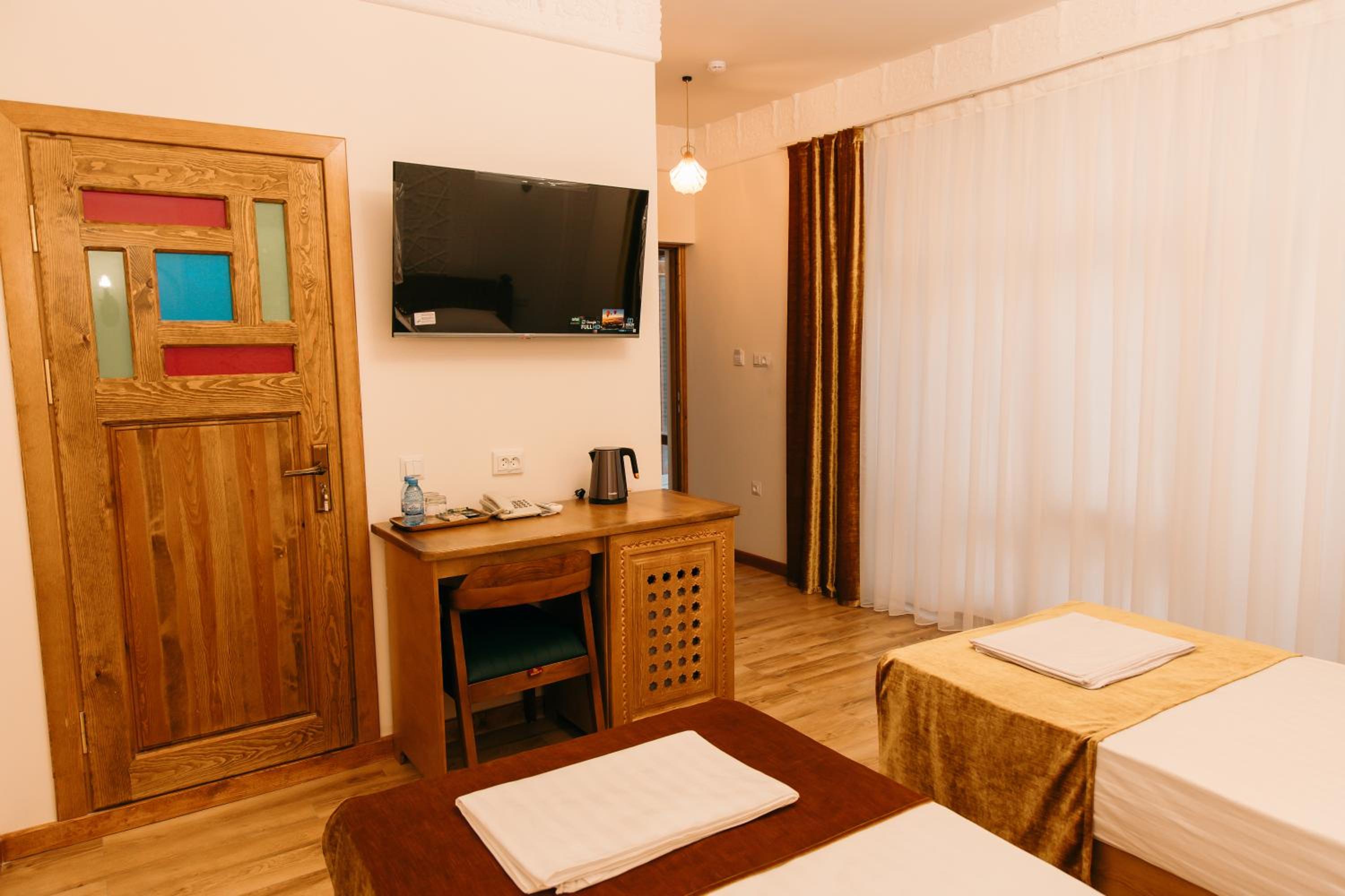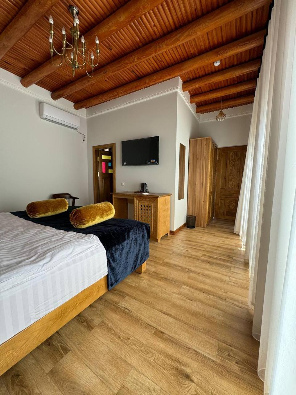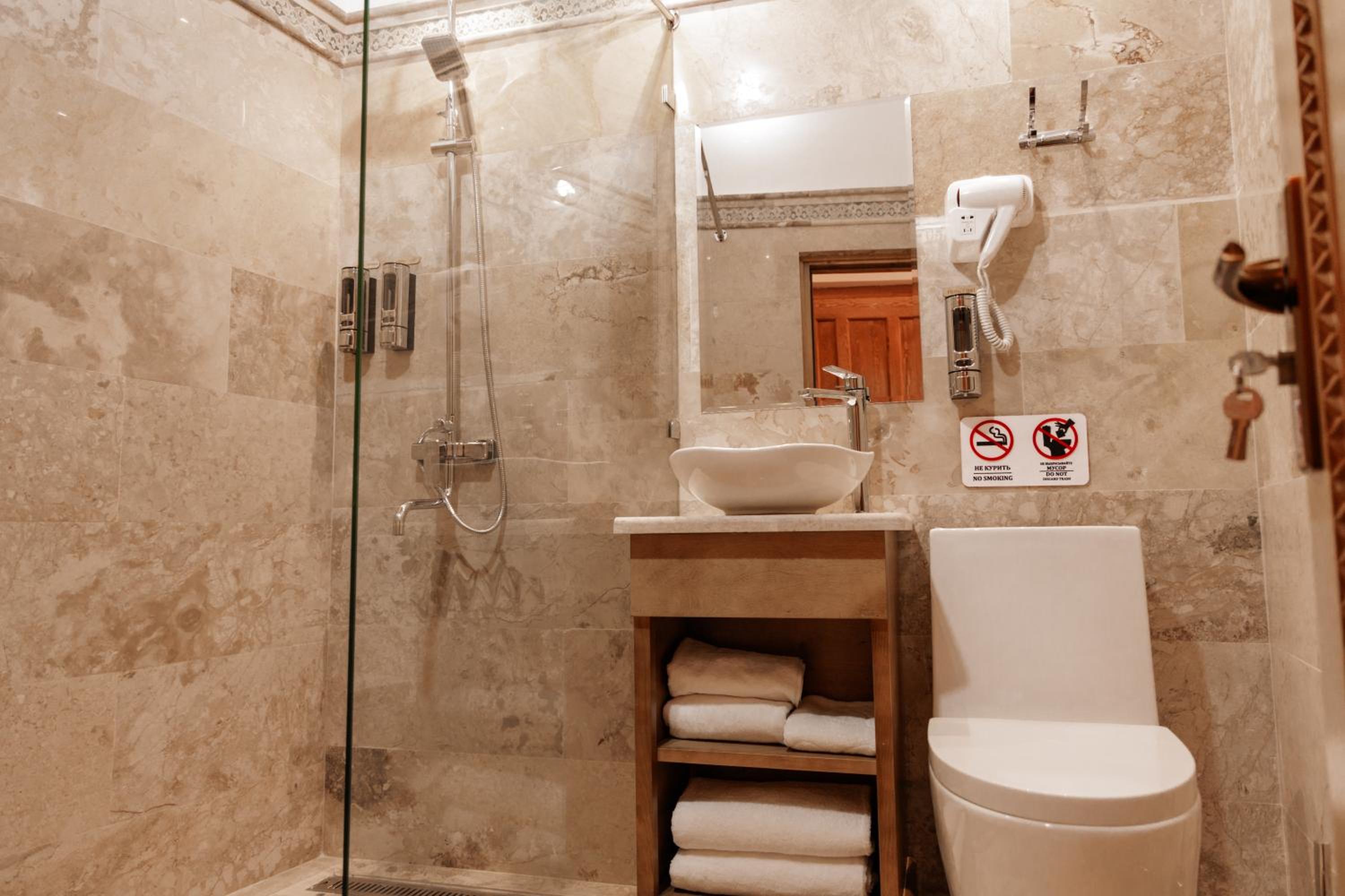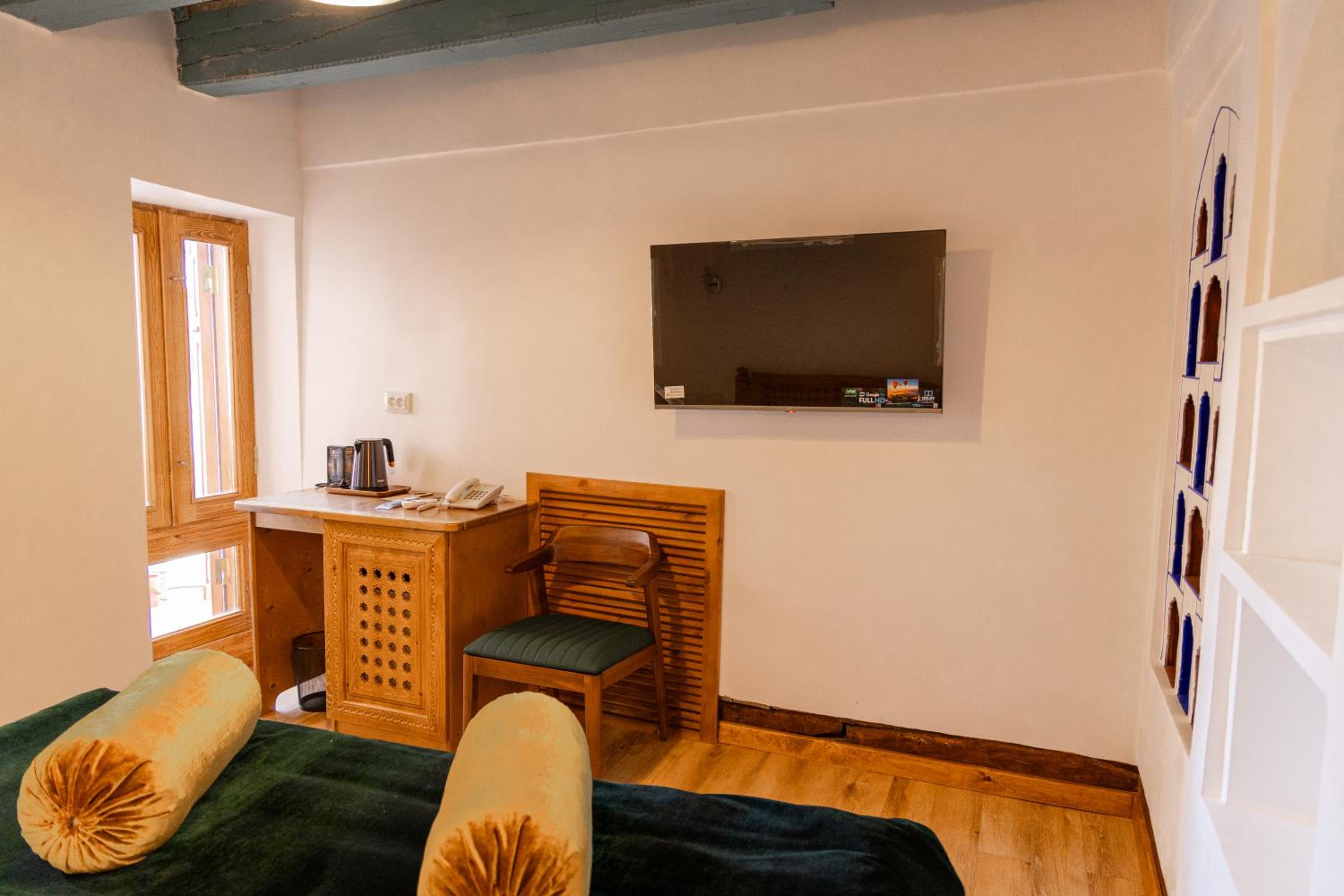 Супер расположение - рядом с достопримечательностями, очень аутентичный номер, кто-то писал про холодно в ванной - абсолютно тепло, в 301 номере по крайней мере. Очень приятный хозяин и ребята на ресепшене. Гостиница - восстановленное здание начала века с сохранившимися несколькими комнатами, которые показывают. Предлагали мастер класс по приготовлению плова во дворе ресторана. Учли все наши пожелания, указанные при бронировании. Друзей буду направлять к ним. И сам бы вернулся.