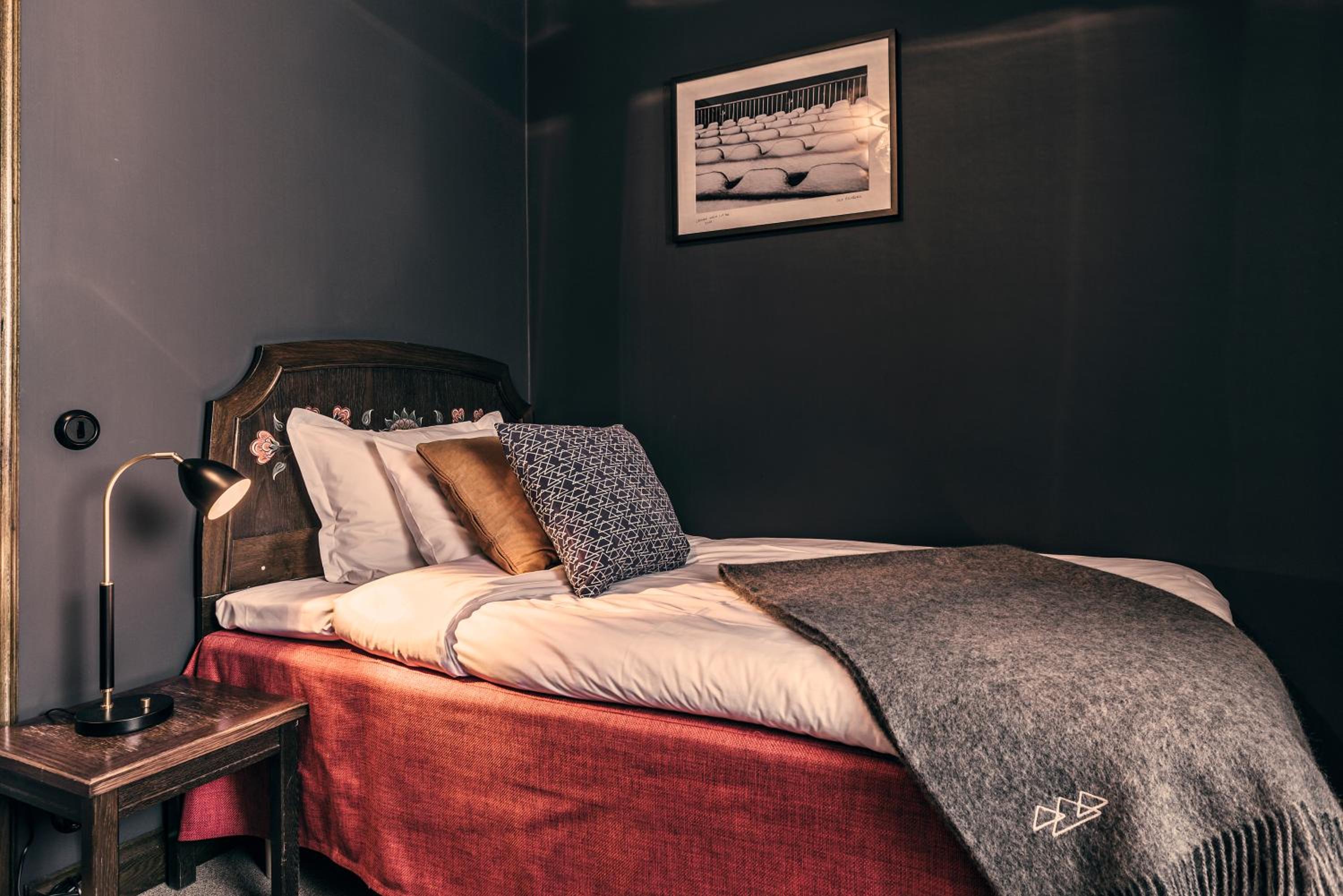 The modern guest rooms at Hotel Åregården seamlessly blend contemporary comfort with traditional Jämtland design, offering a cozy retreat after a day of outdoor adventures.