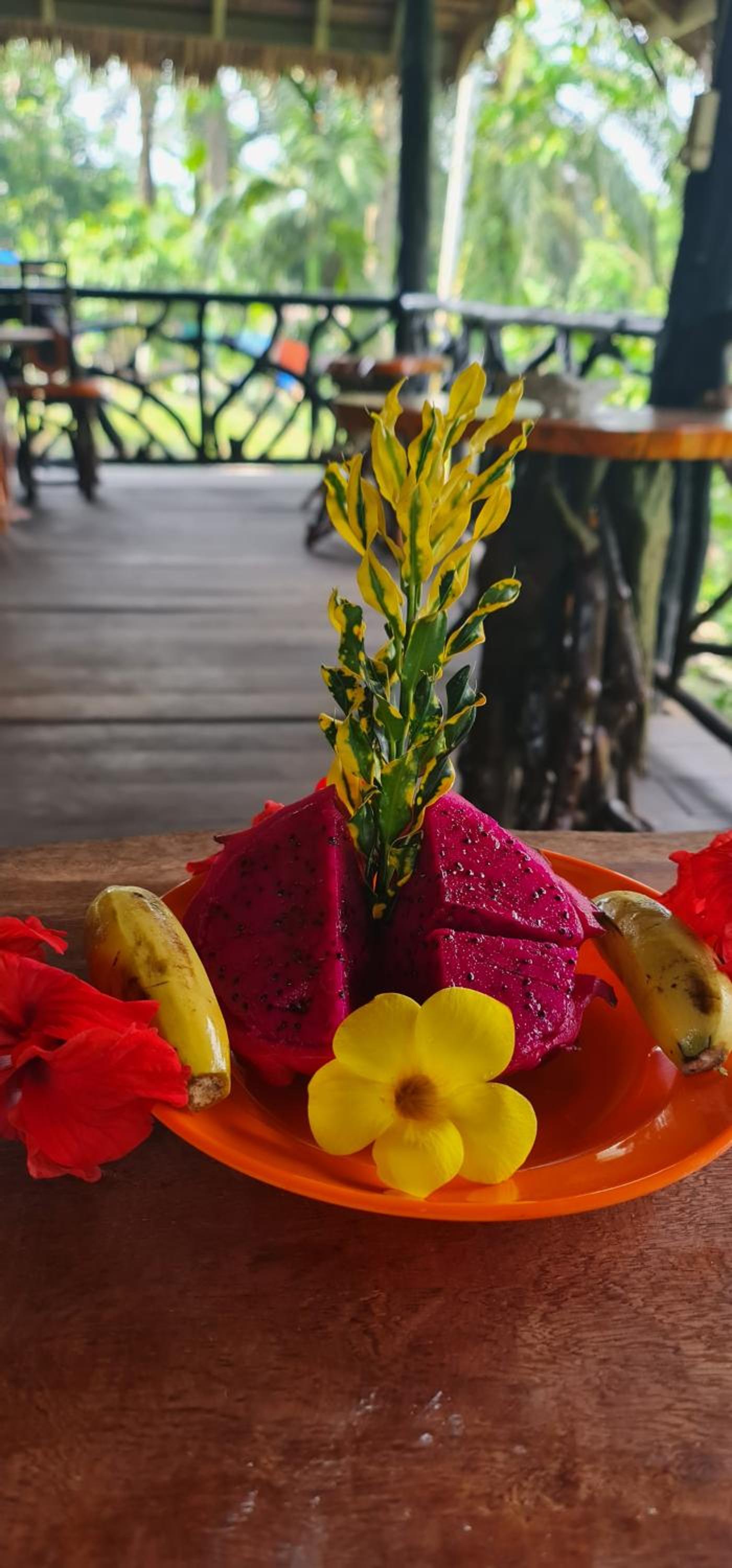 Floating Dreams is not in the center of Tangkahan. This place is a heaven to people who wants to stay next to nature and enjoy amazing hospitality and peace. Lady named Nita cooked as my wish a vegetarian omelette for breakfast in mornings I stayed + she brought fresh fruits and coffee. Owners Jola and Raja were really friendly and welcoming as well, also well for example Putra. They carried my big luggage up and down stairs as stairs would have been a risky walk to me with a big luggage. They got used to doing that.
