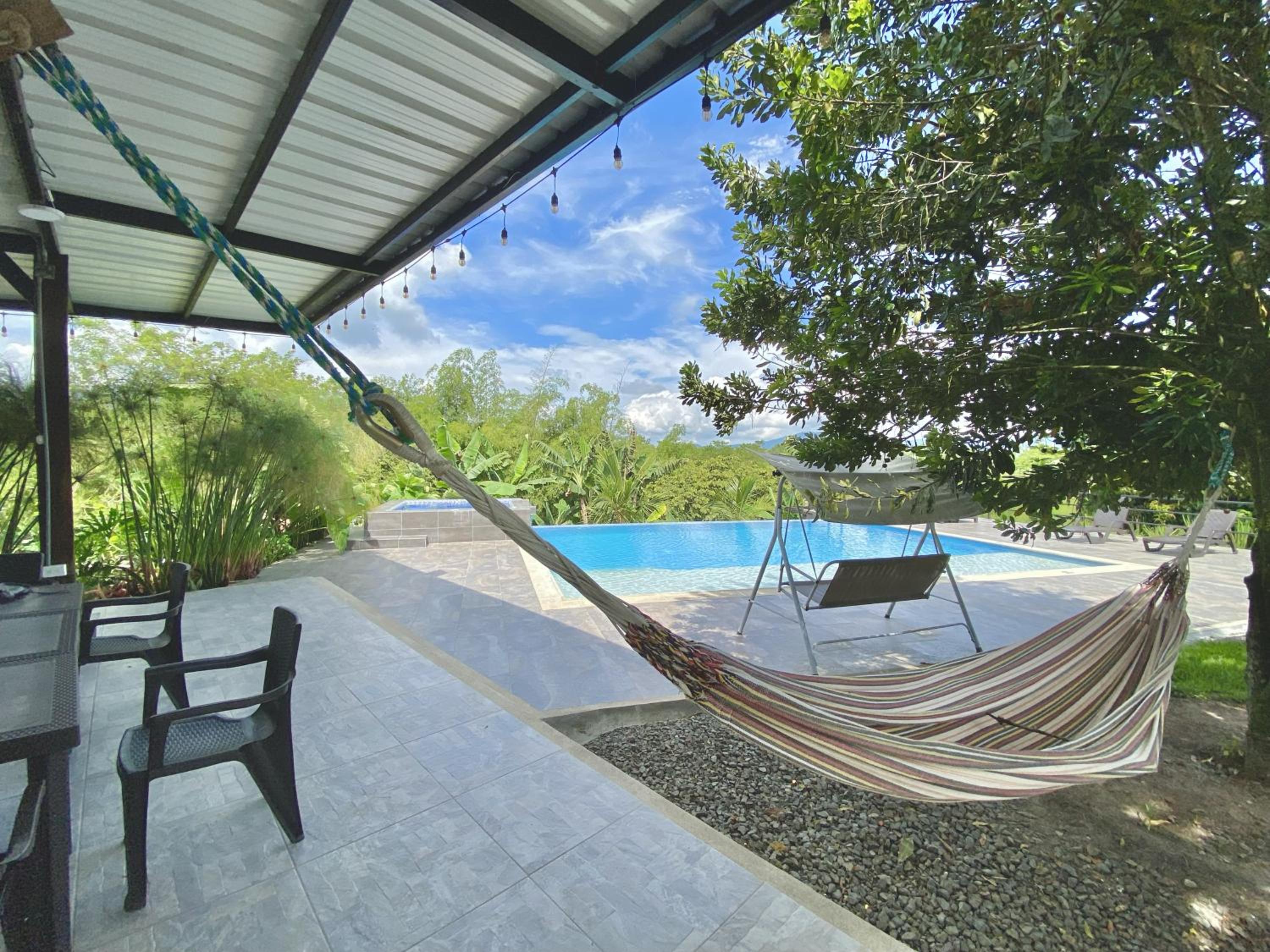 Guests can unwind in the hot tub or enjoy an American breakfast before exploring nearby sites like National Coffee Park and Hernan Ramirez Villegas Stadium.